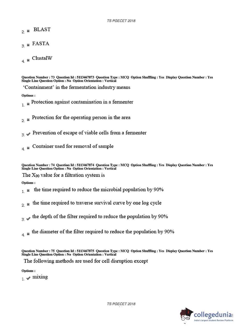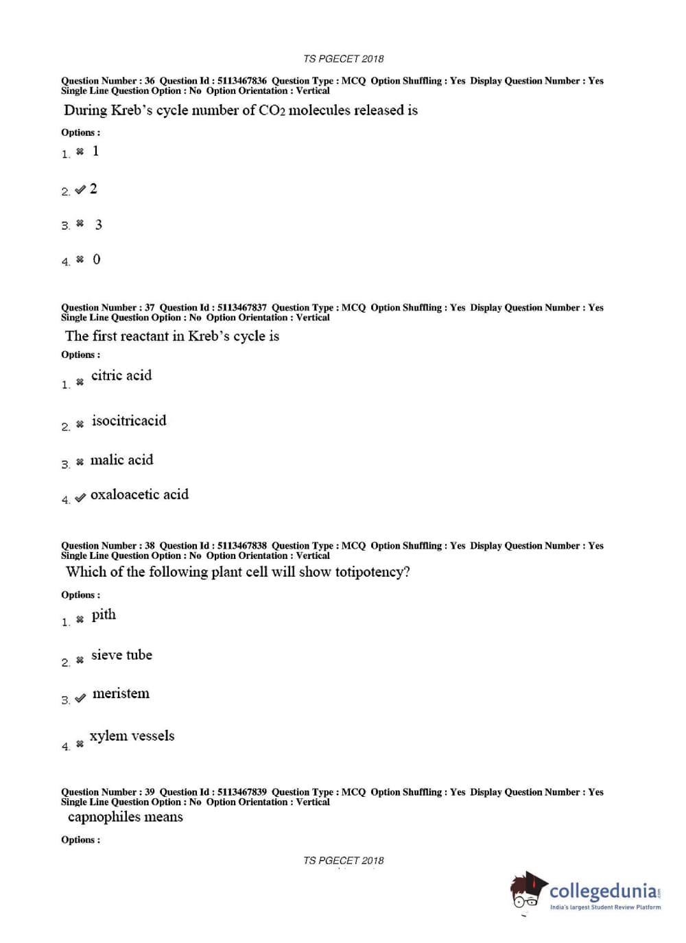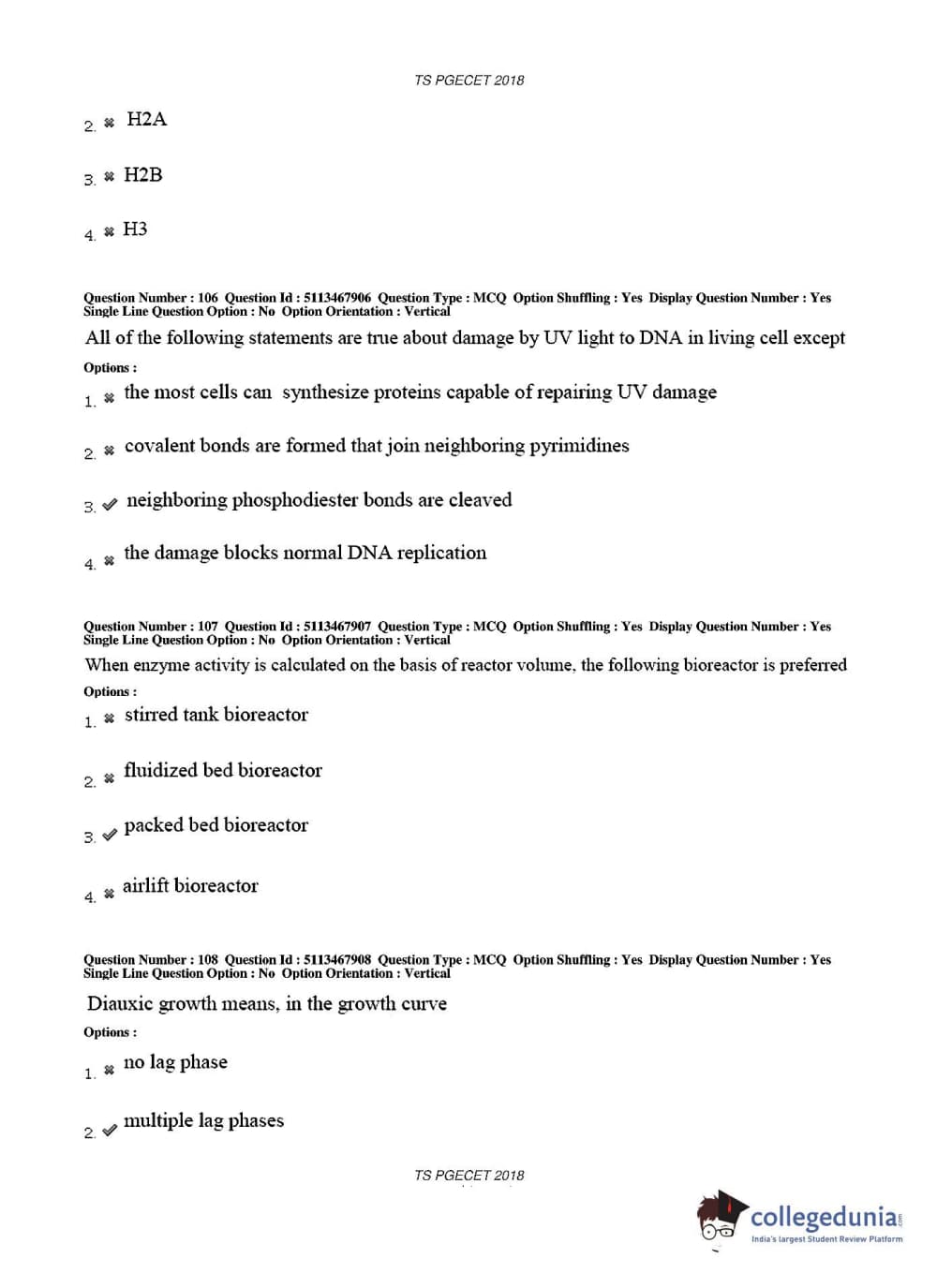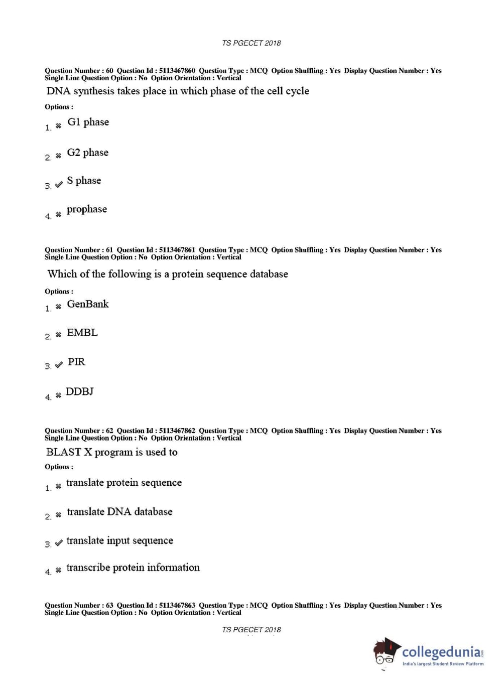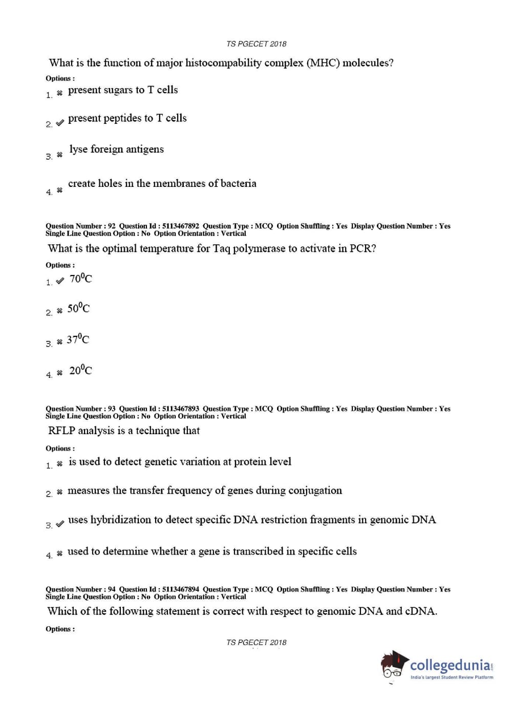 TS PGECET 2018 Biotechnology Question Paper with Answer Key PDFs for Forenoon Session