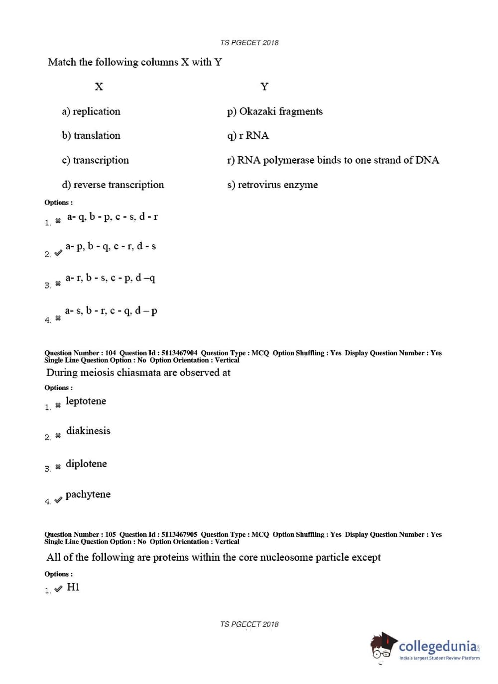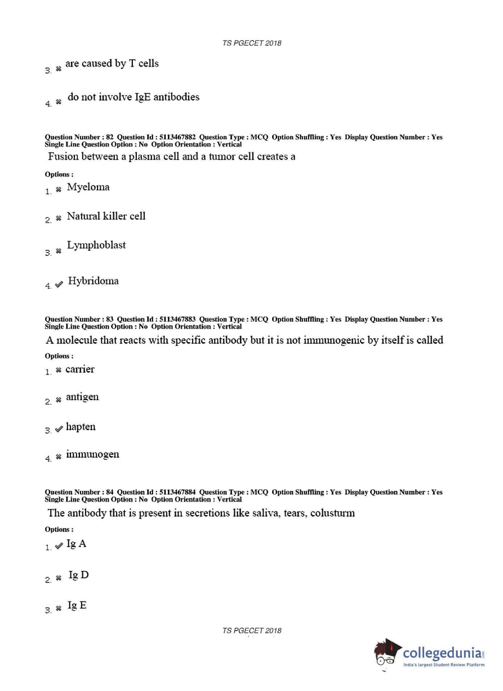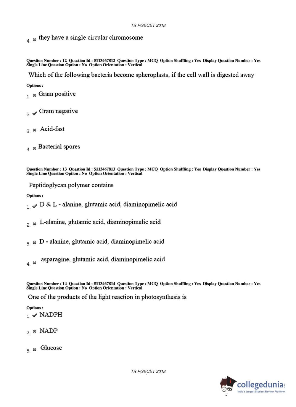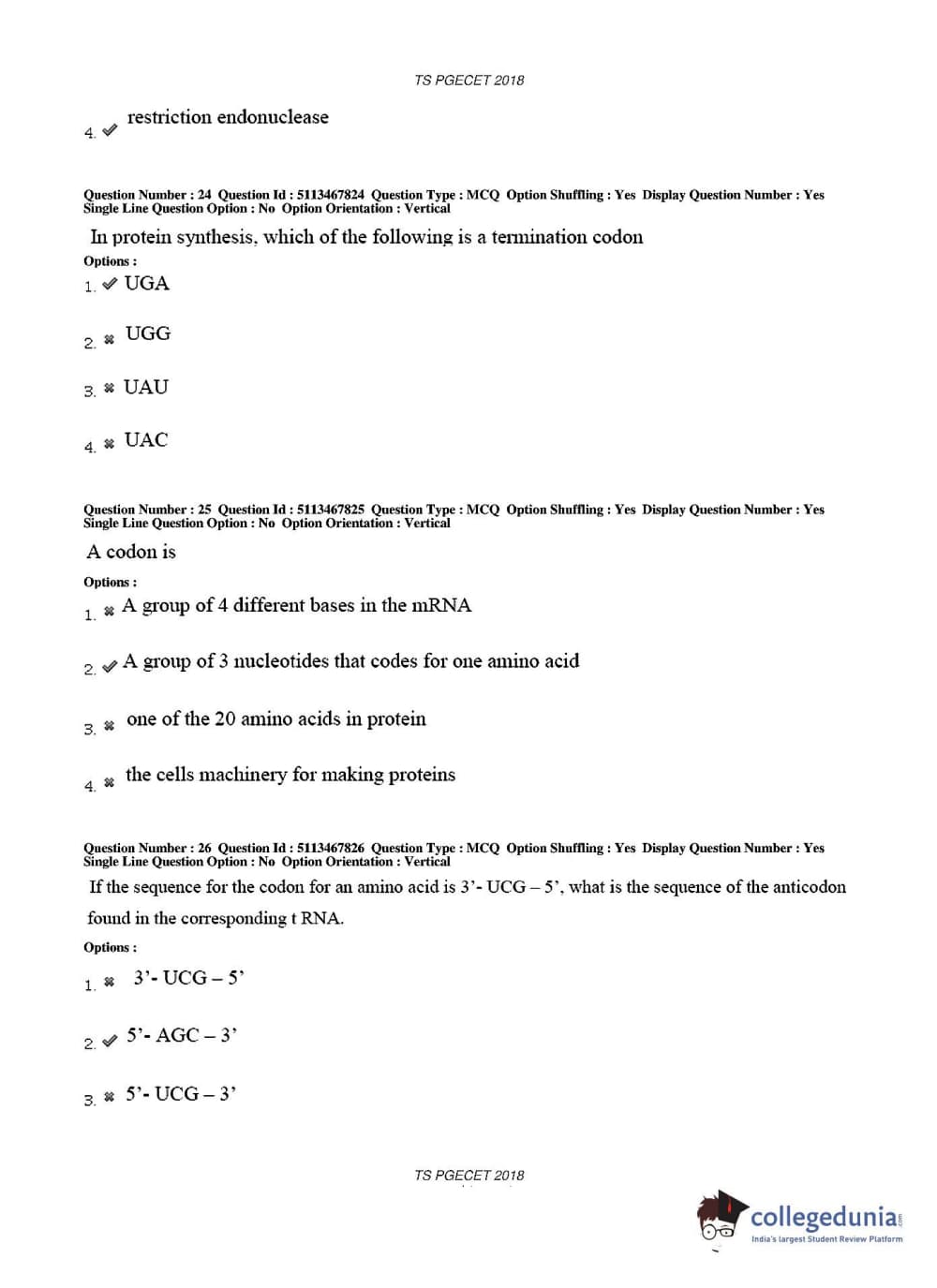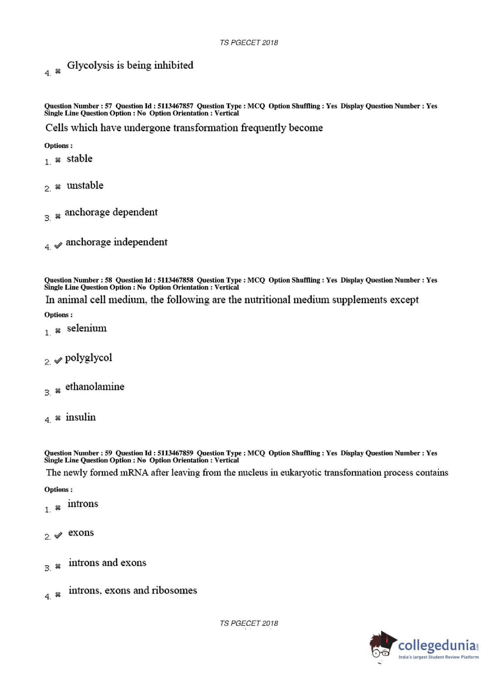 TS PGECET 2018 Biotechnology Question Paper with Answer Key PDFs for Forenoon Session