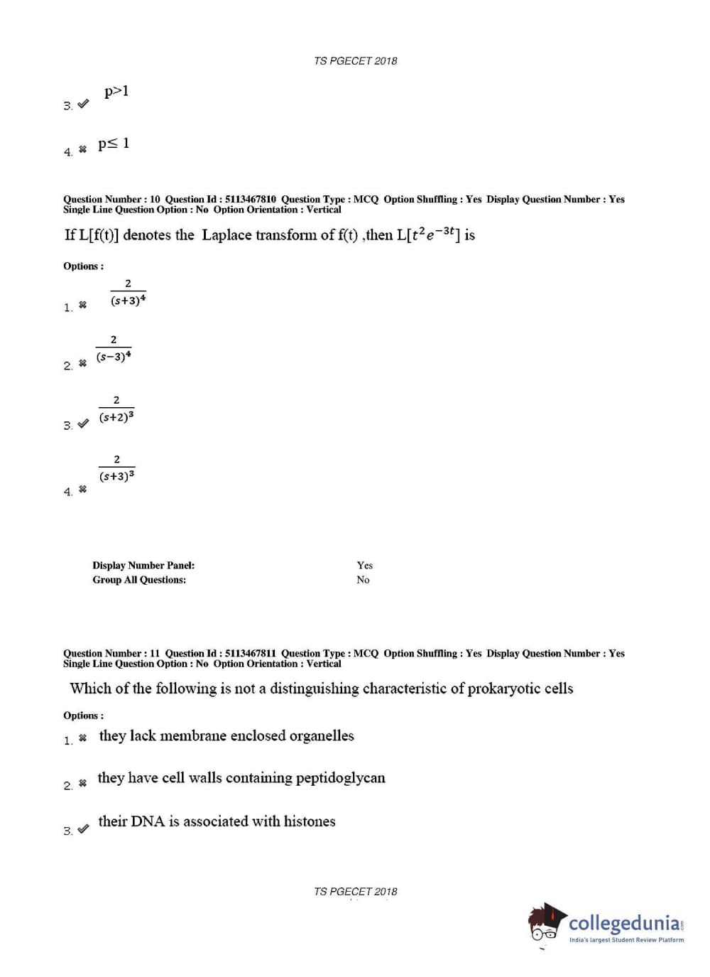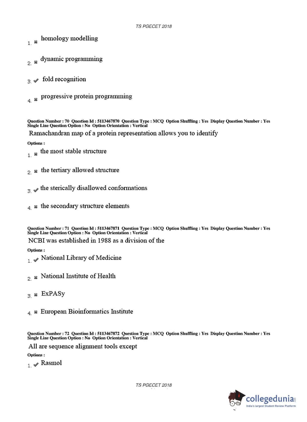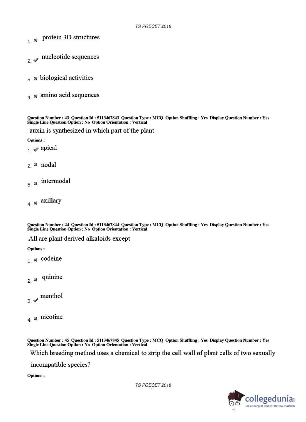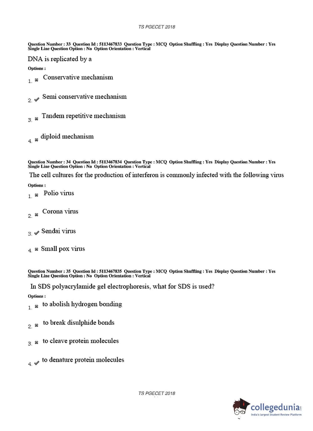 TS PGECET 2018 Biotechnology Question Paper with Answer Key PDFs for Forenoon Session