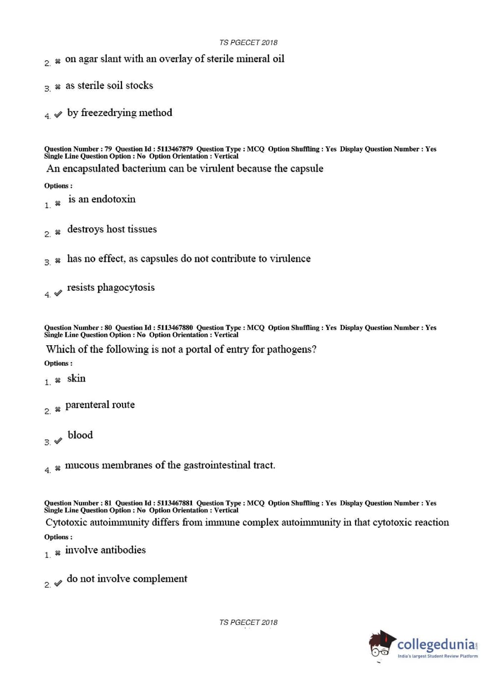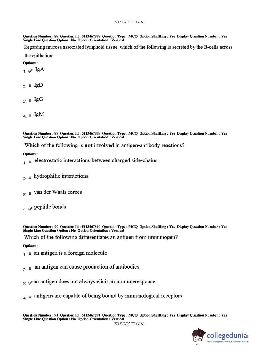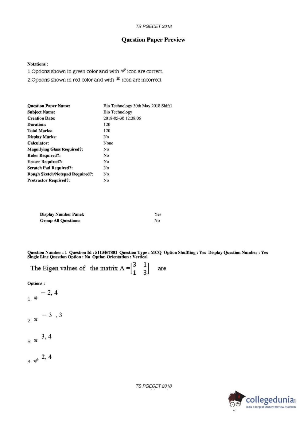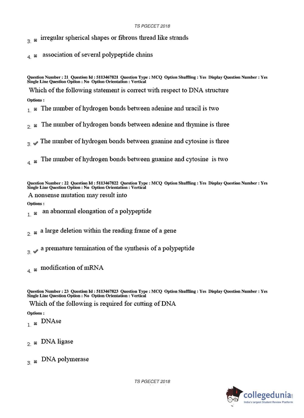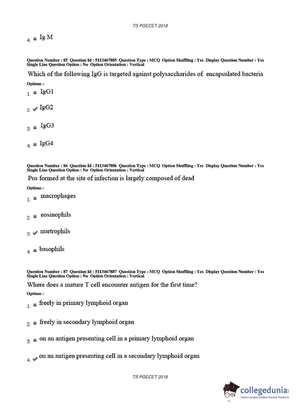 TS PGECET 2018 Biotechnology Question Paper with Answer Key PDFs for Forenoon Session