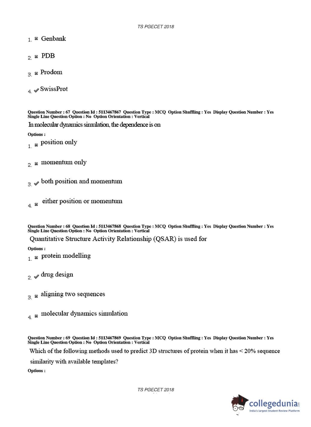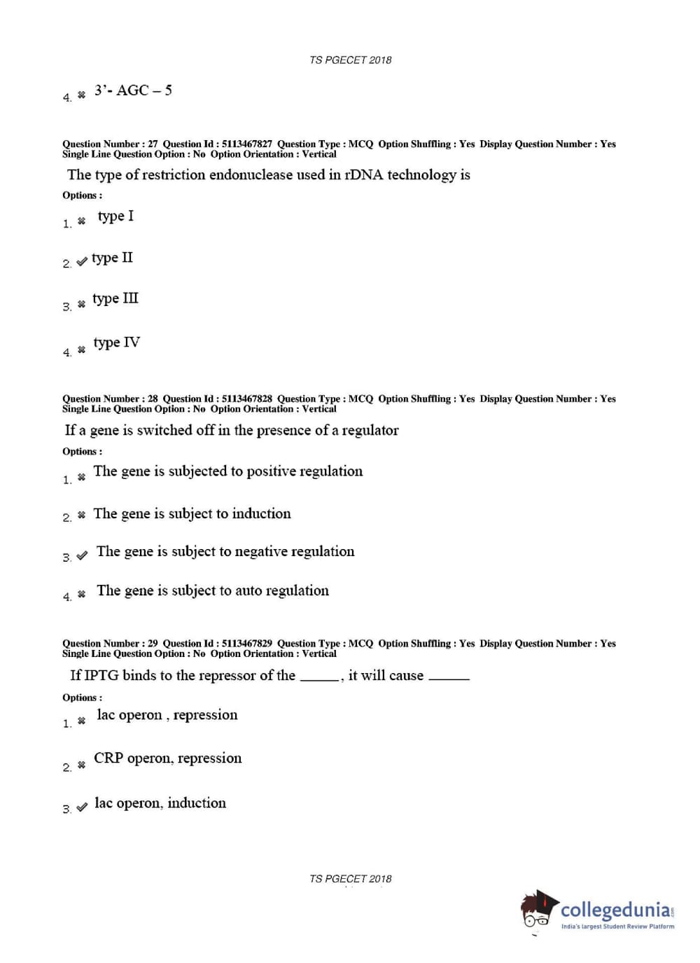 | TS PGECET 2018 Biotechnology Question Paper PDF | TS PGECET 2018 Biotechnology Answer Key PDF |