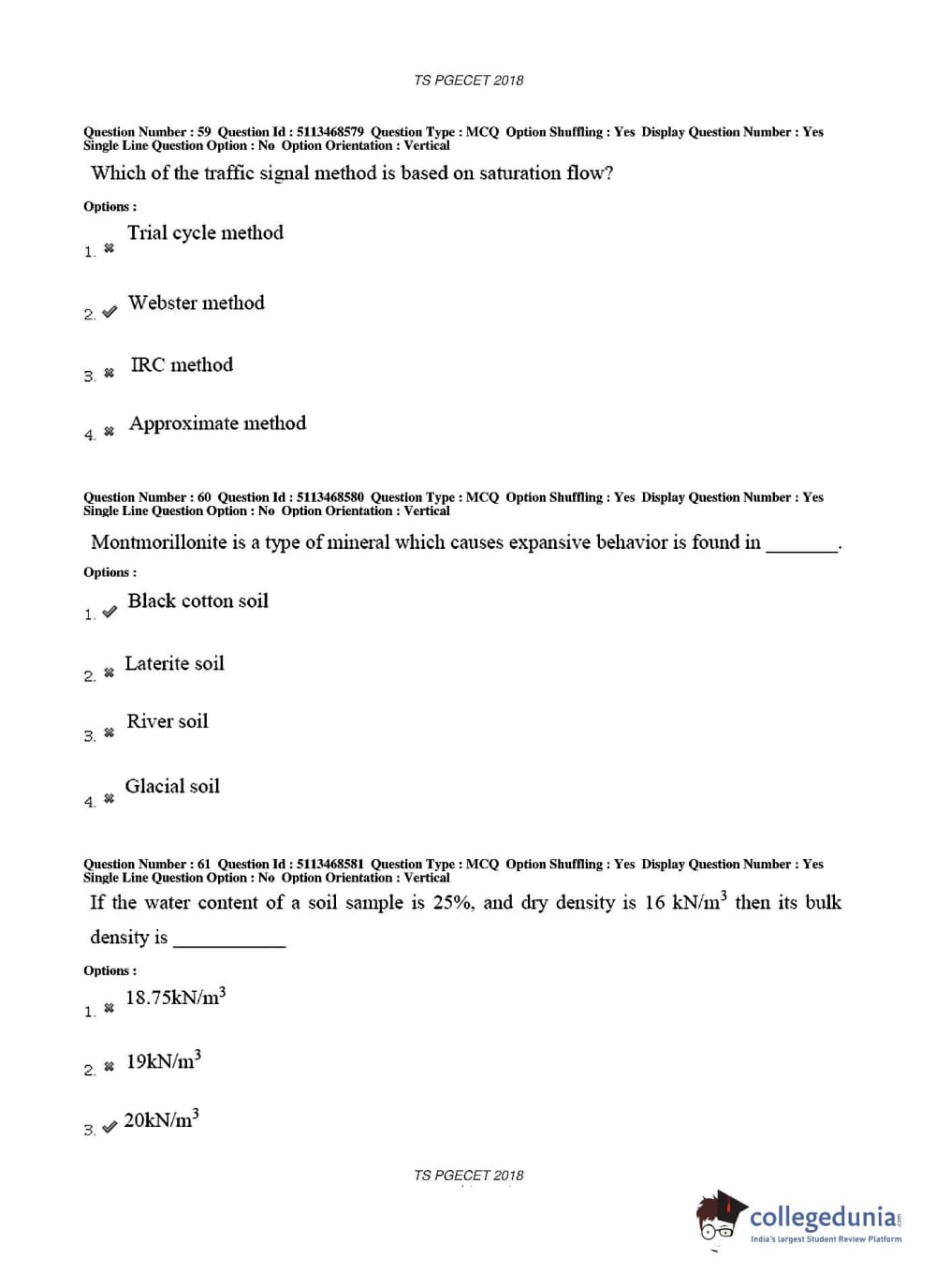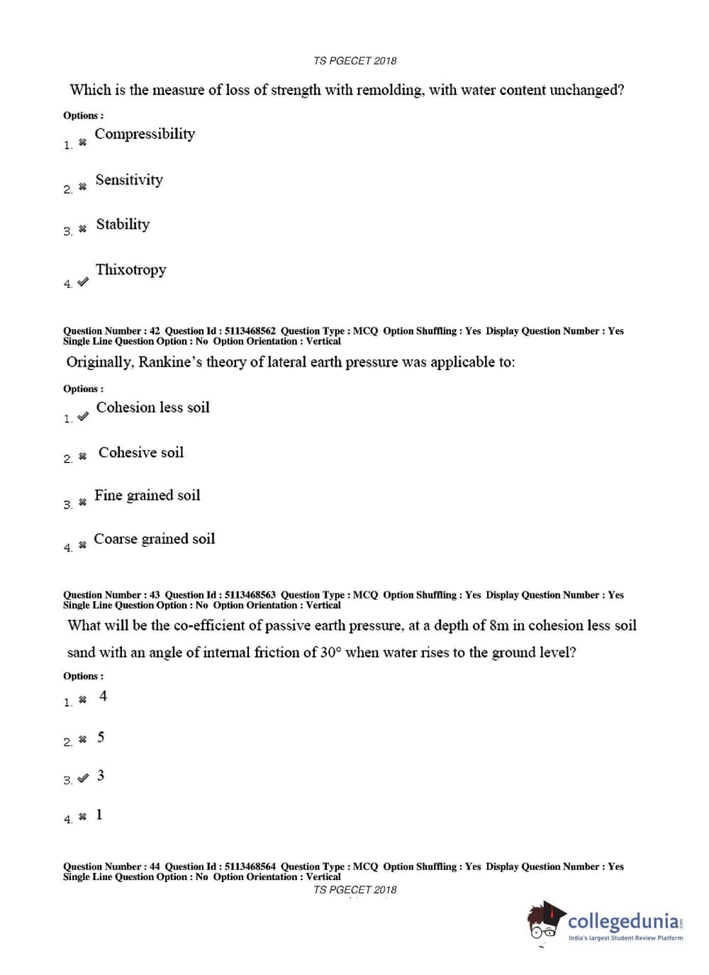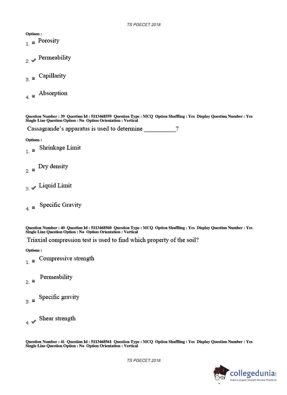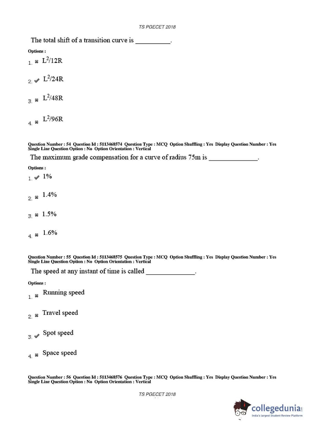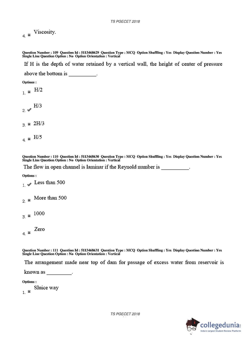 TS PGECET 2018 Civil Engineering Question paper with answer key pdf conducted on May 30, 2018 in Afternoon Session 2 PM to 4 PM is available for download. The exam was successfully organized by Osmania University. The question paper comprised a total of 120 questions.