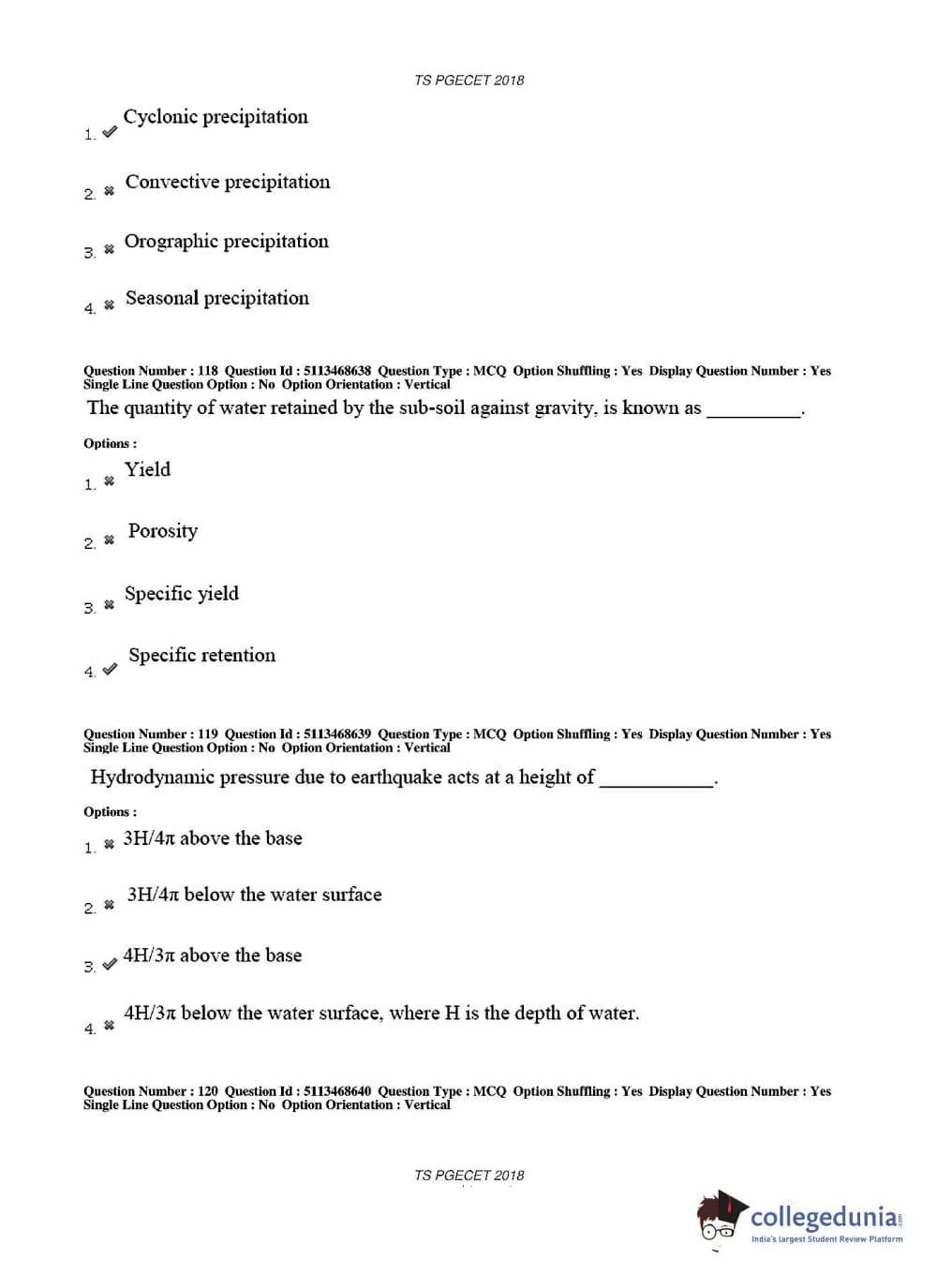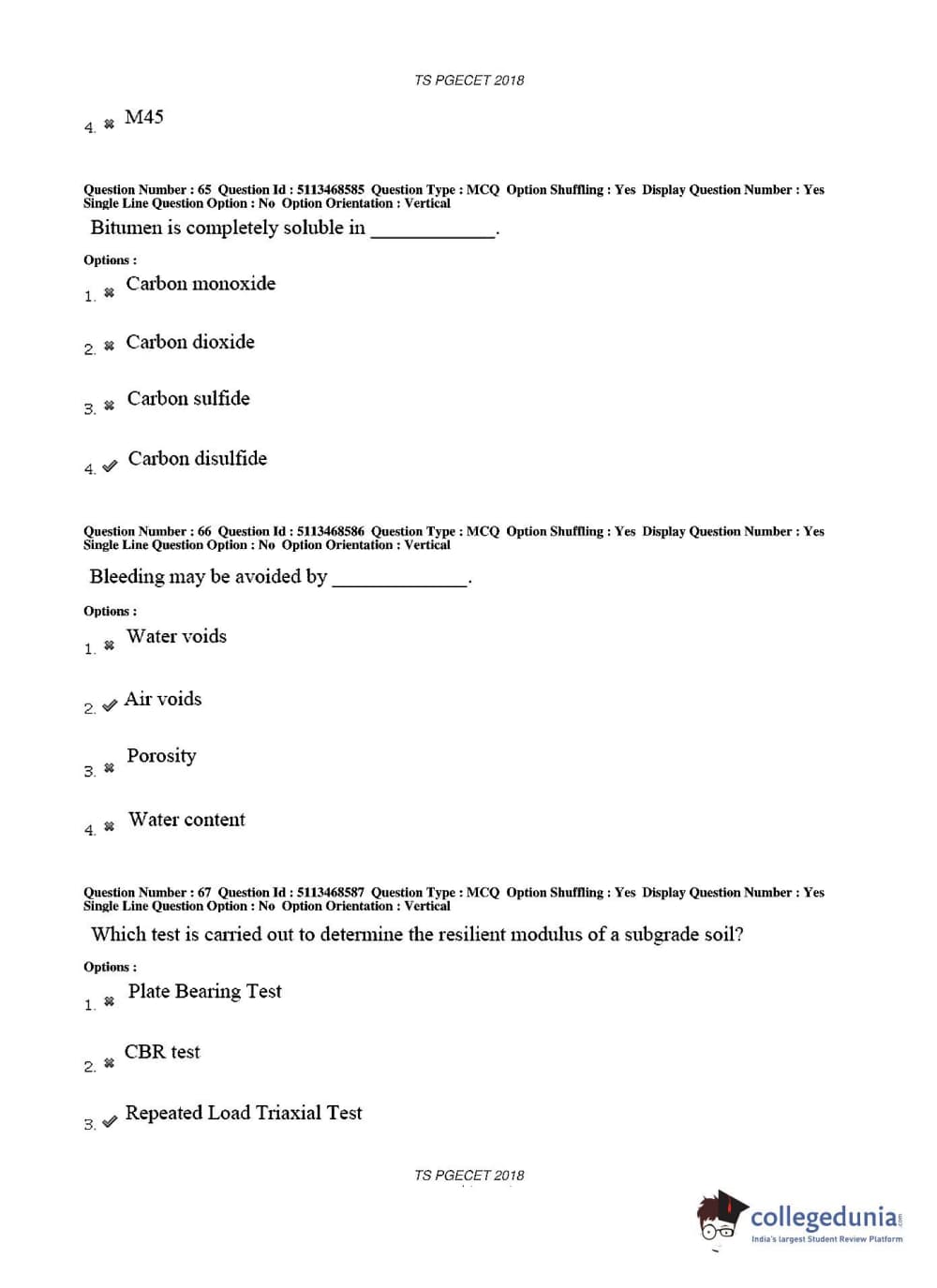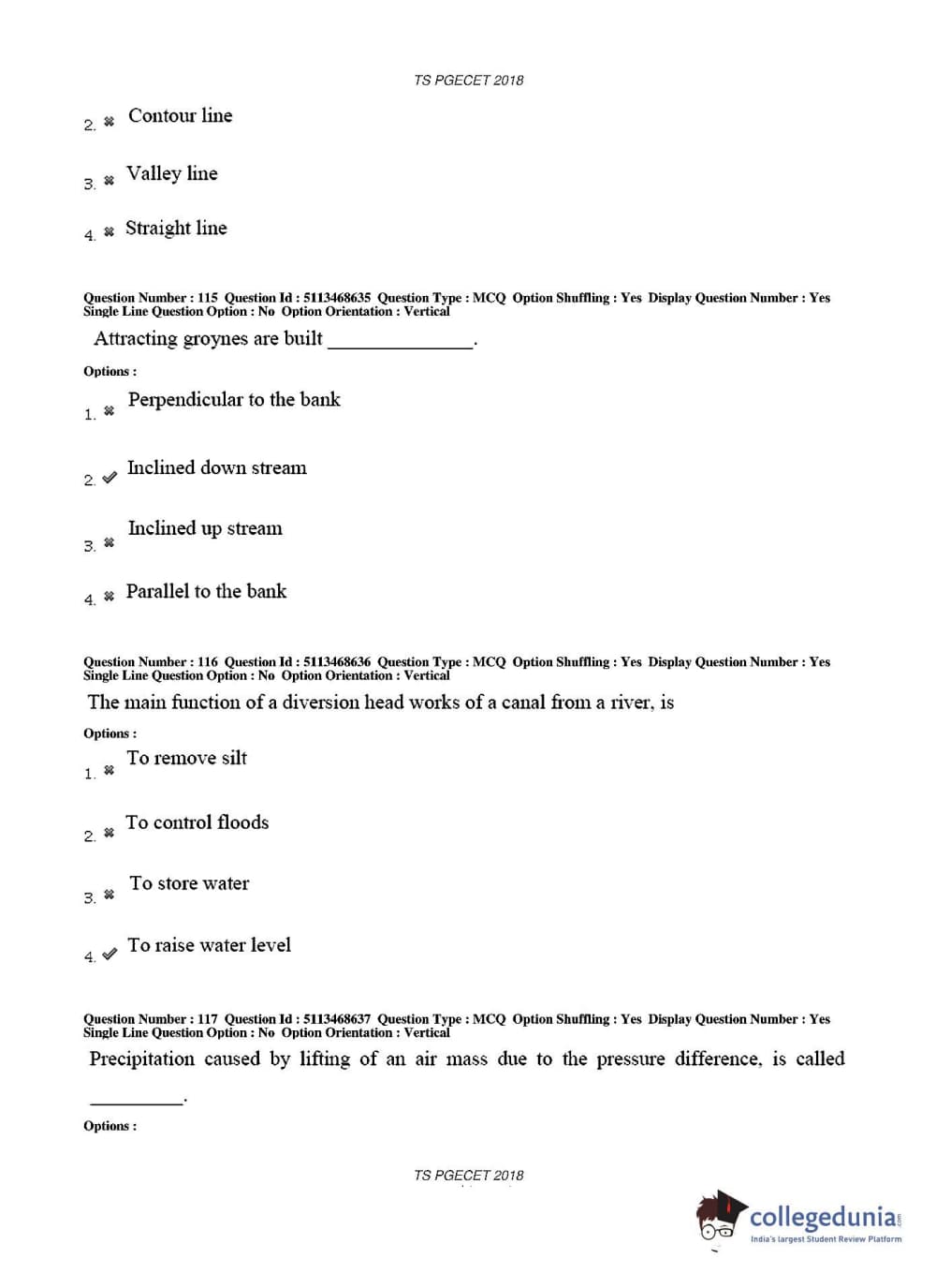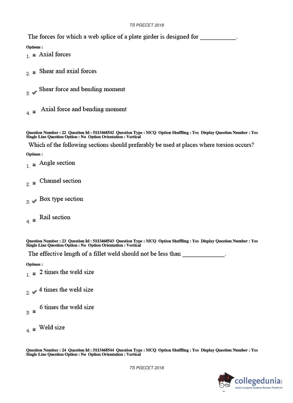 TS PGECET 2018 Civil Engineering Question paper with answer key pdf conducted on May 30, 2018 in Afternoon Session 2 PM to 4 PM is available for download. The exam was successfully organized by Osmania University. The question paper comprised a total of 120 questions.