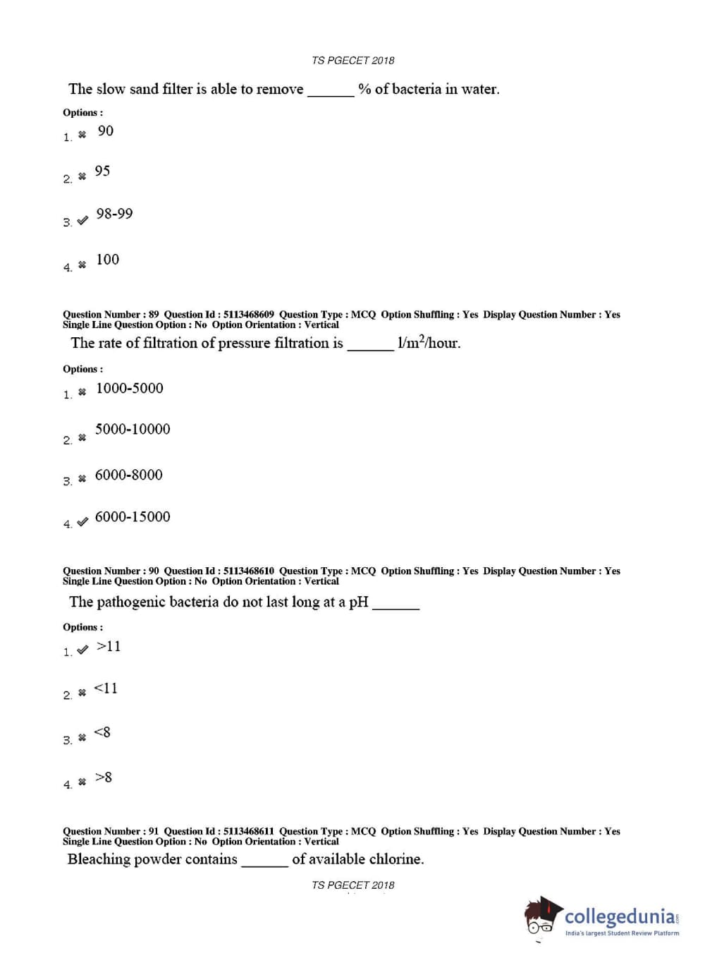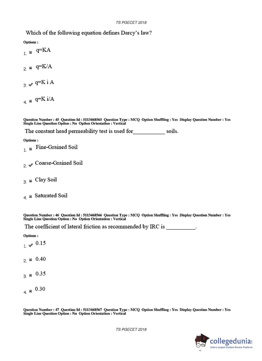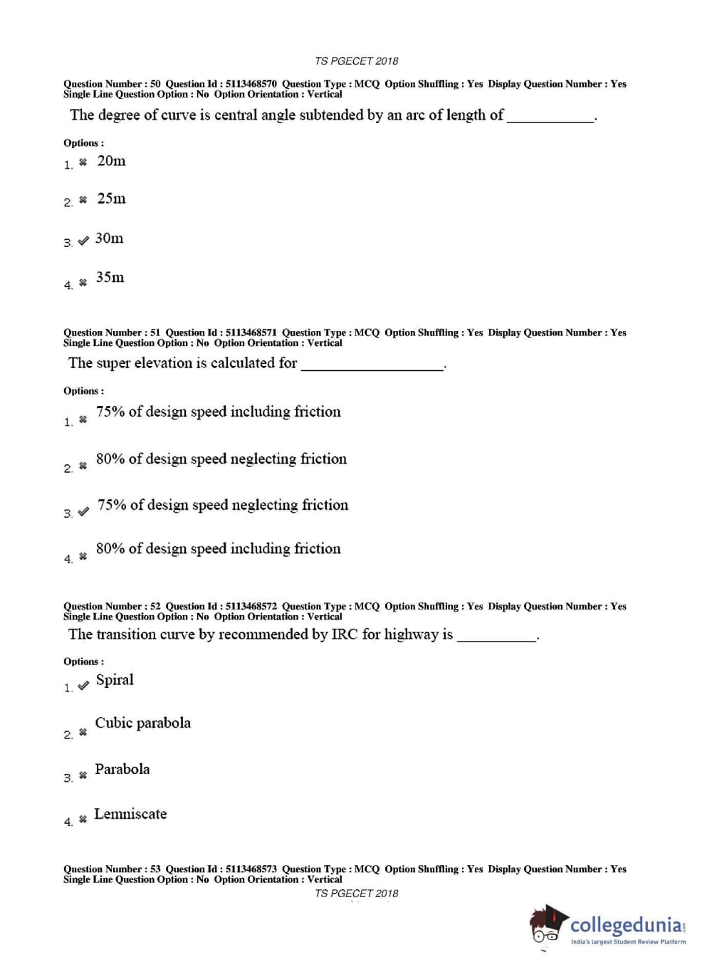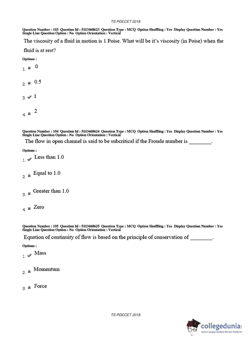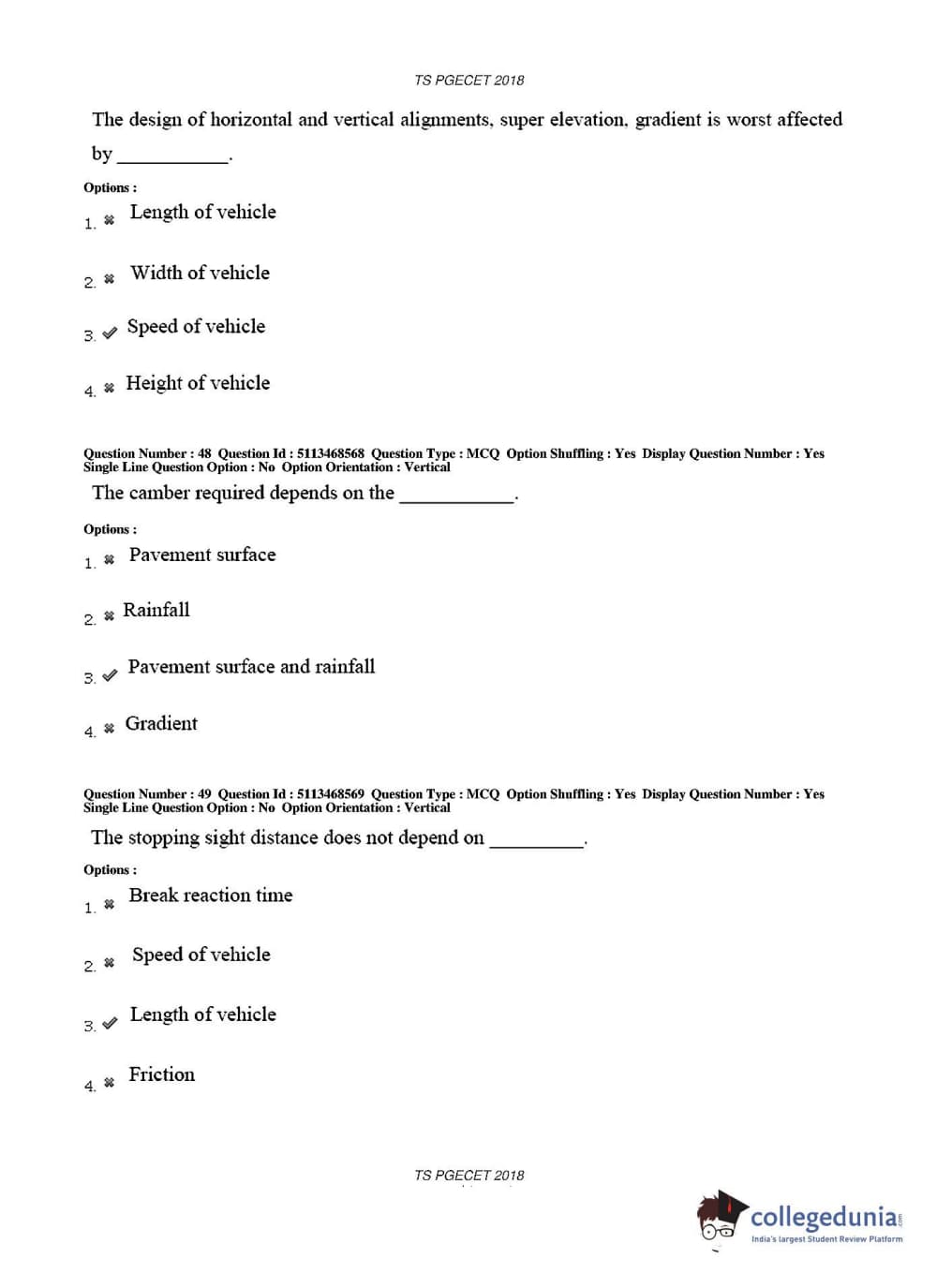 TS PGECET 2018 Civil Engineering Question paper with answer key pdf conducted on May 30, 2018 in Afternoon Session 2 PM to 4 PM is available for download. The exam was successfully organized by Osmania University. The question paper comprised a total of 120 questions.