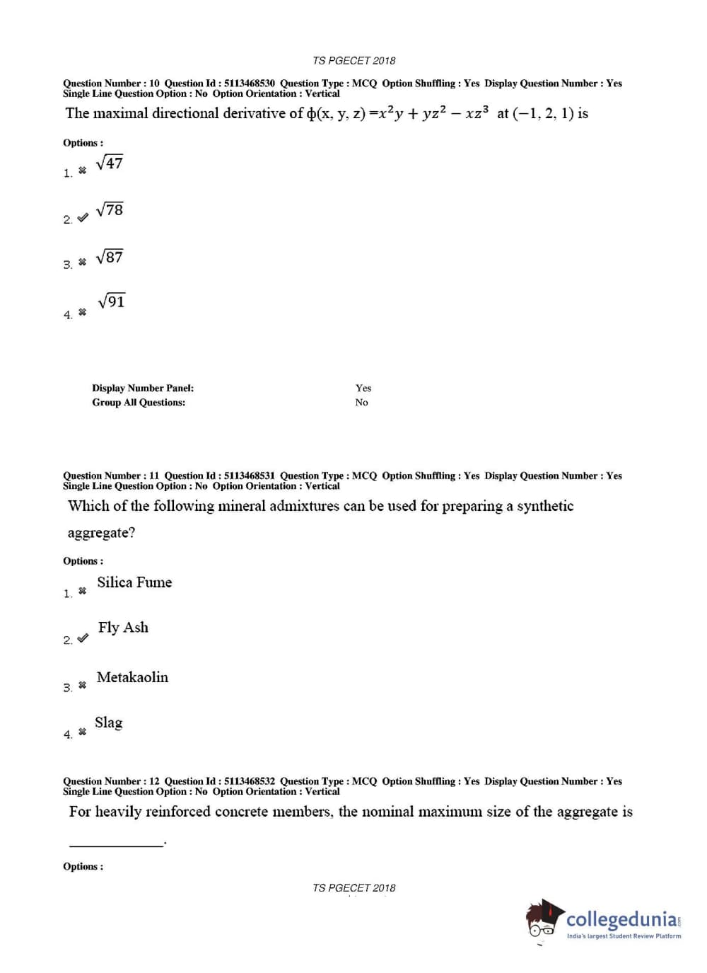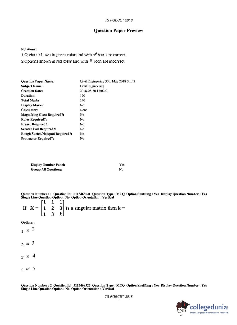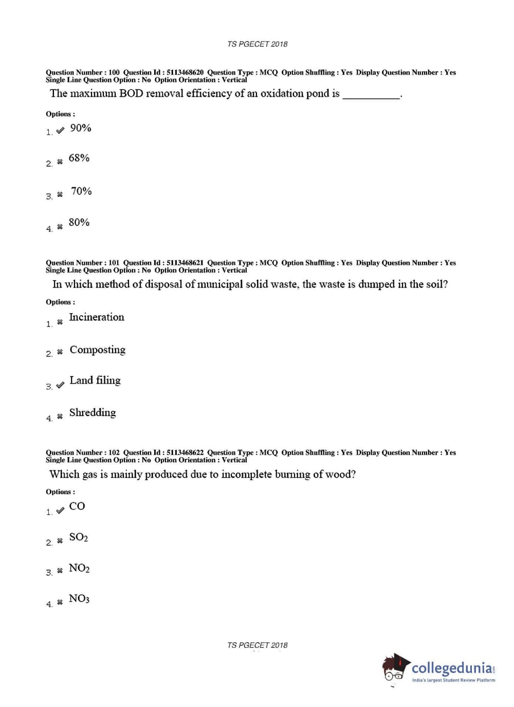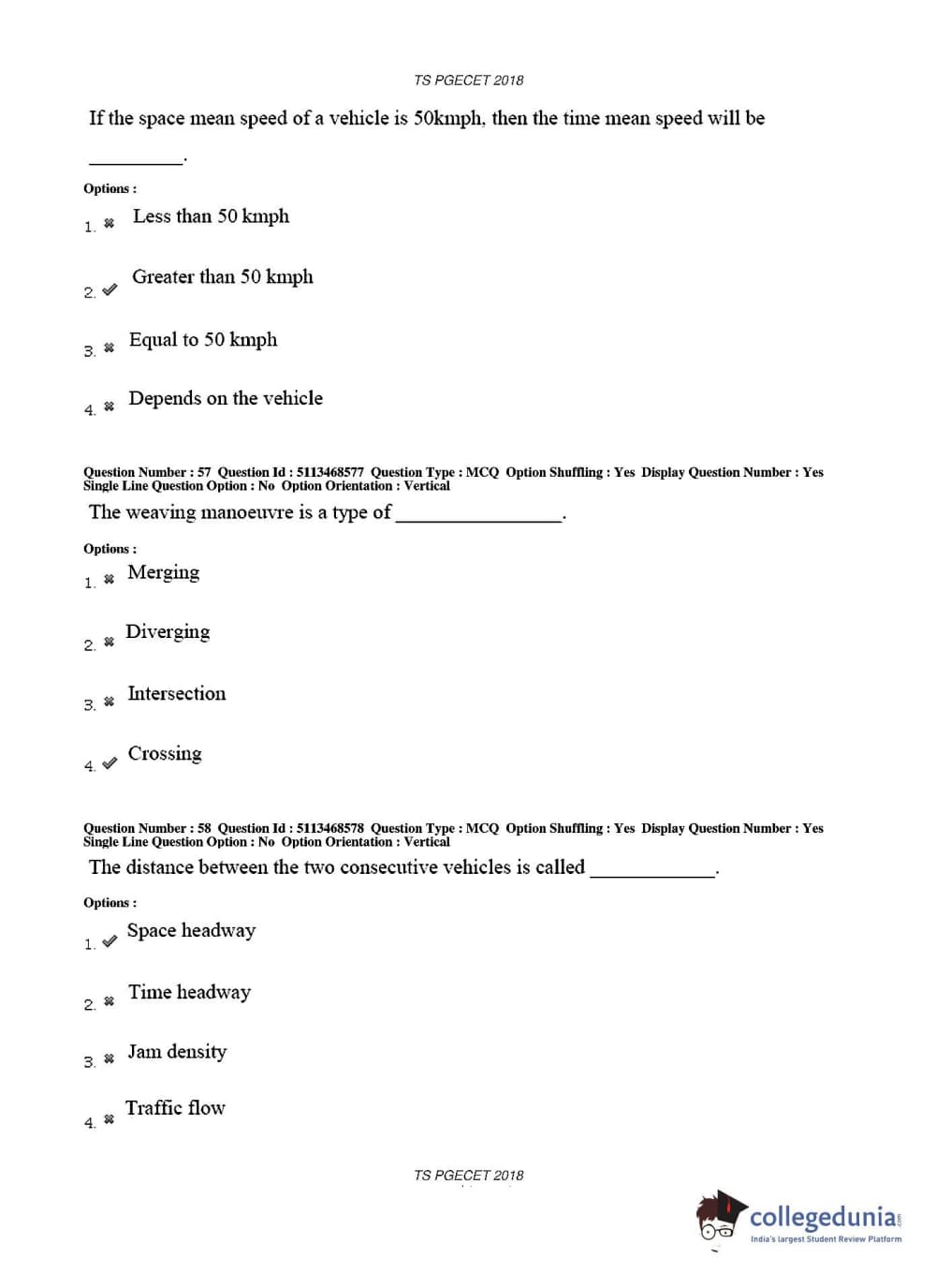 TS PGECET 2018 Civil Engineering Question paper with answer key pdf conducted on May 30, 2018 in Afternoon Session 2 PM to 4 PM is available for download. The exam was successfully organized by Osmania University. The question paper comprised a total of 120 questions.