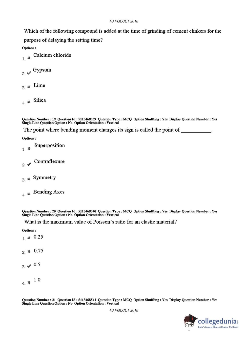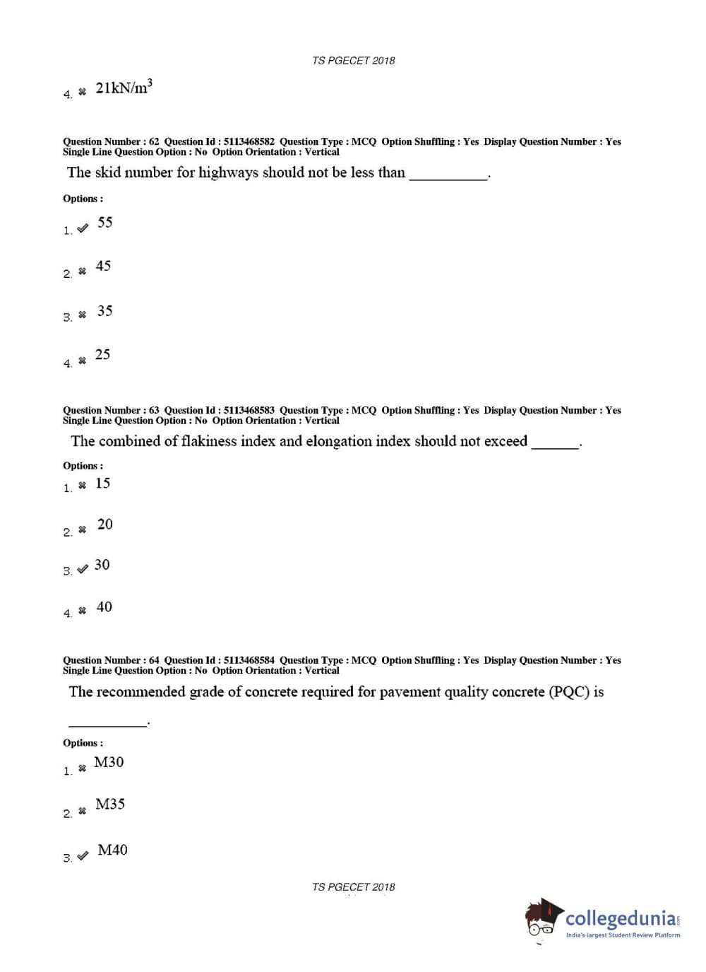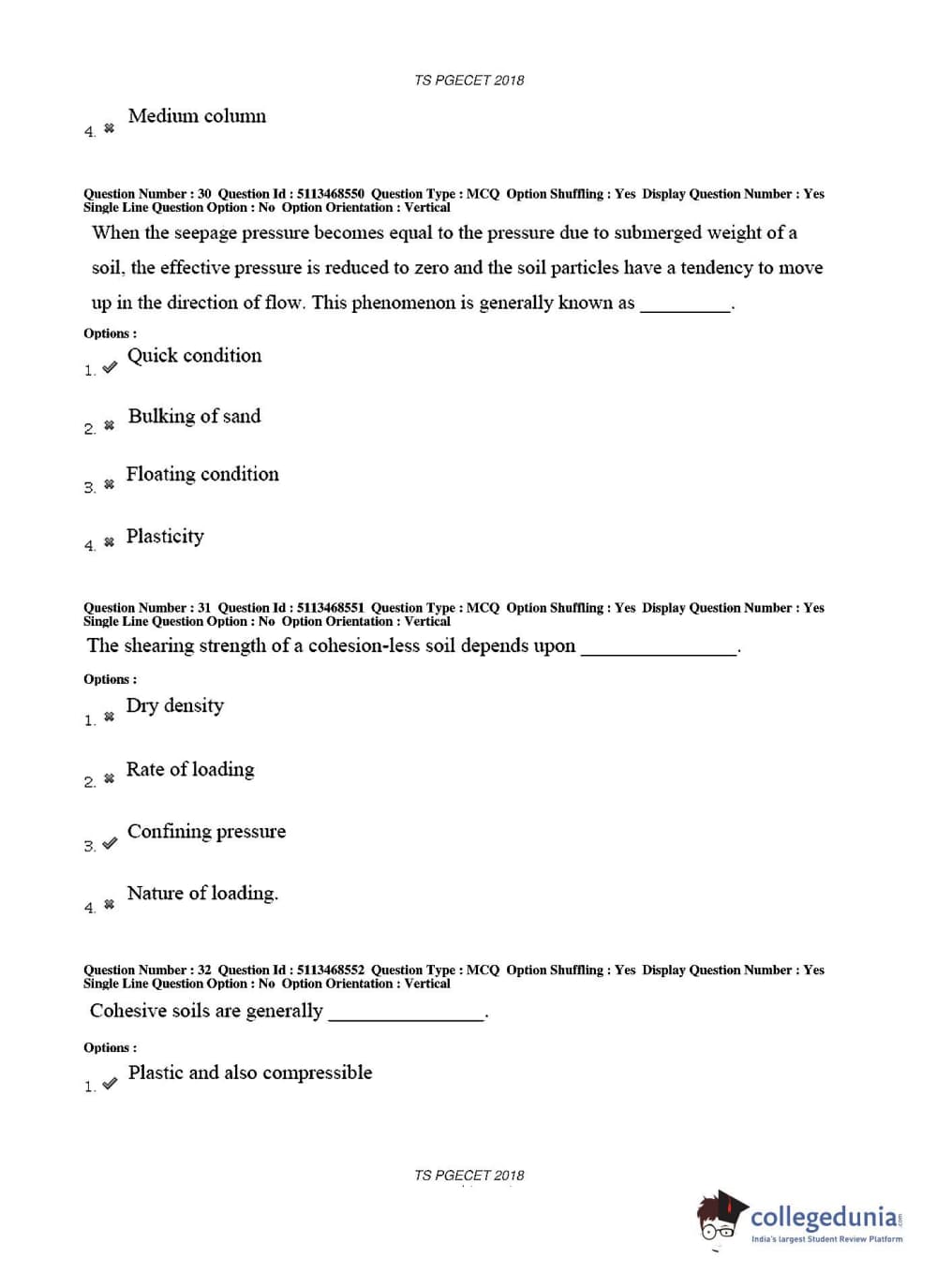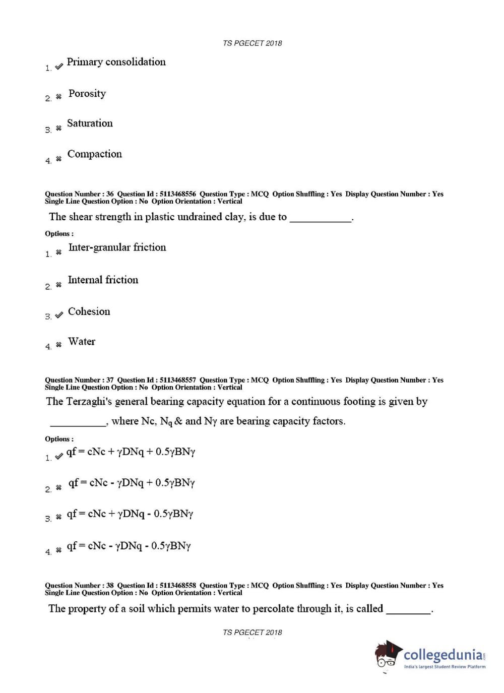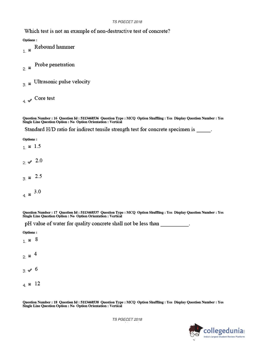 TS PGECET 2018 Civil Engineering Question Paper with Answer Key PDFs for Afternoon Session