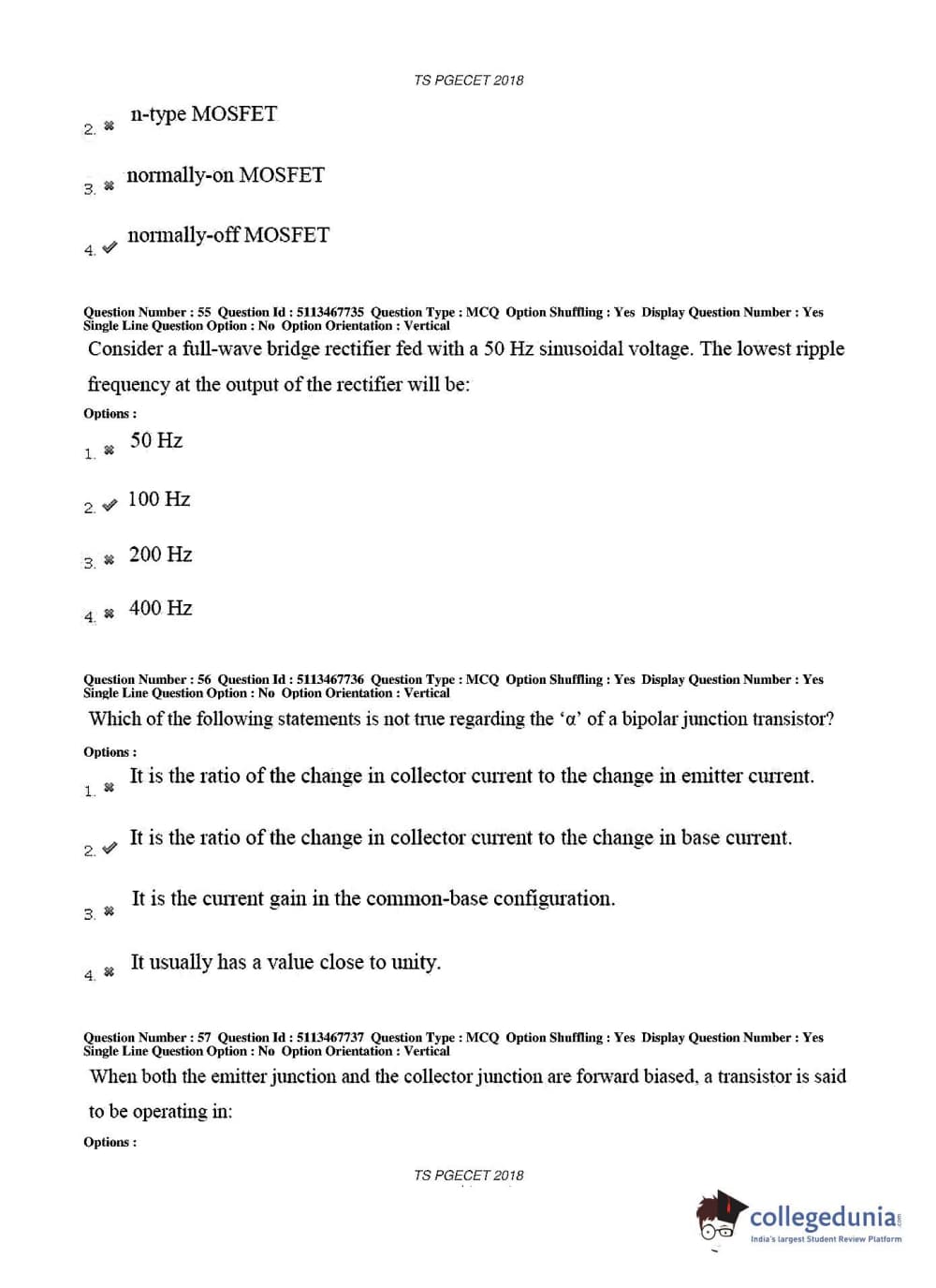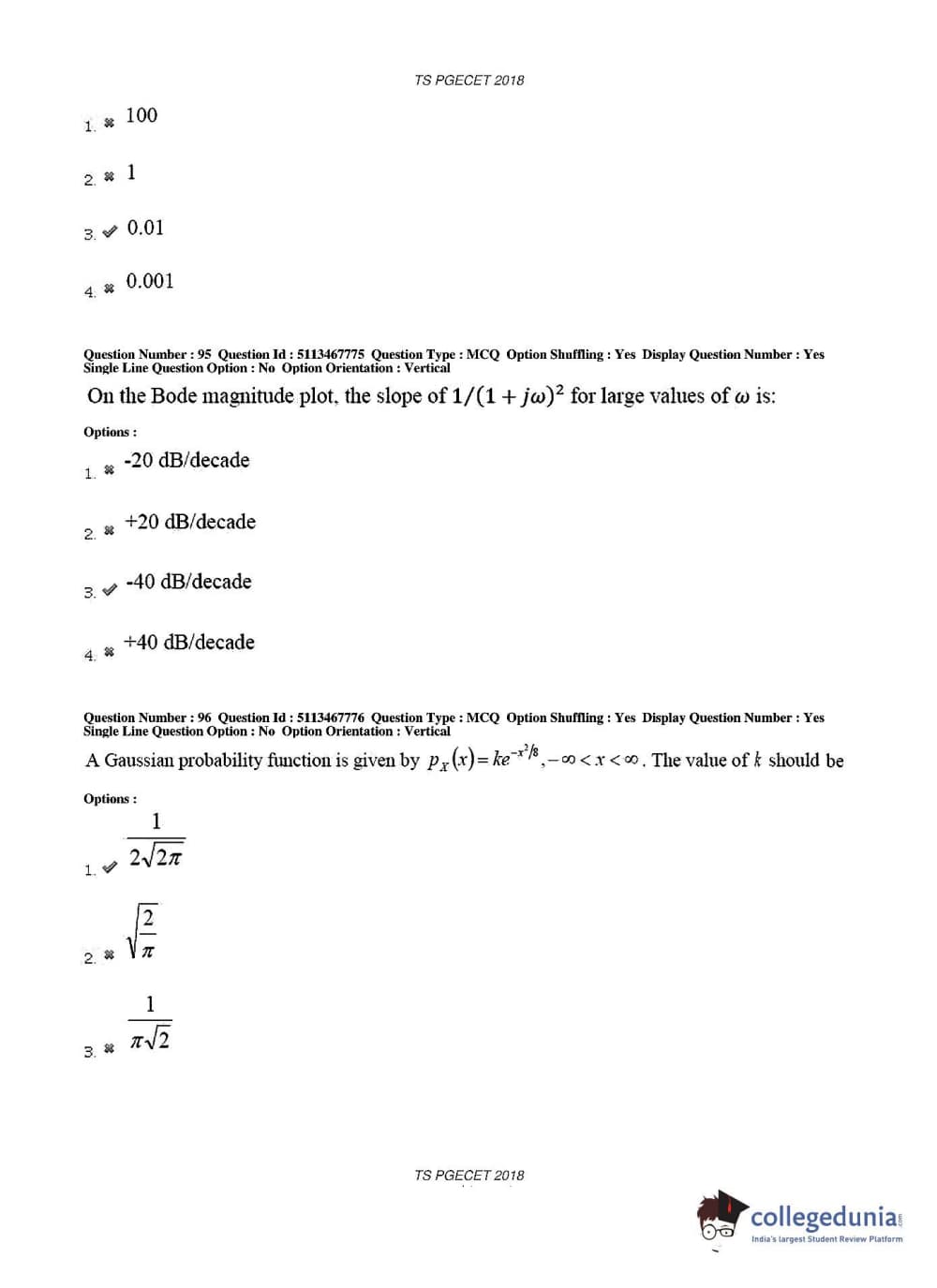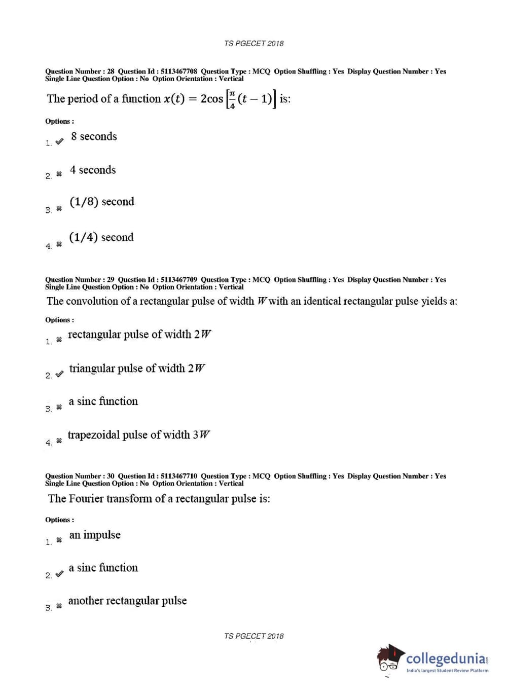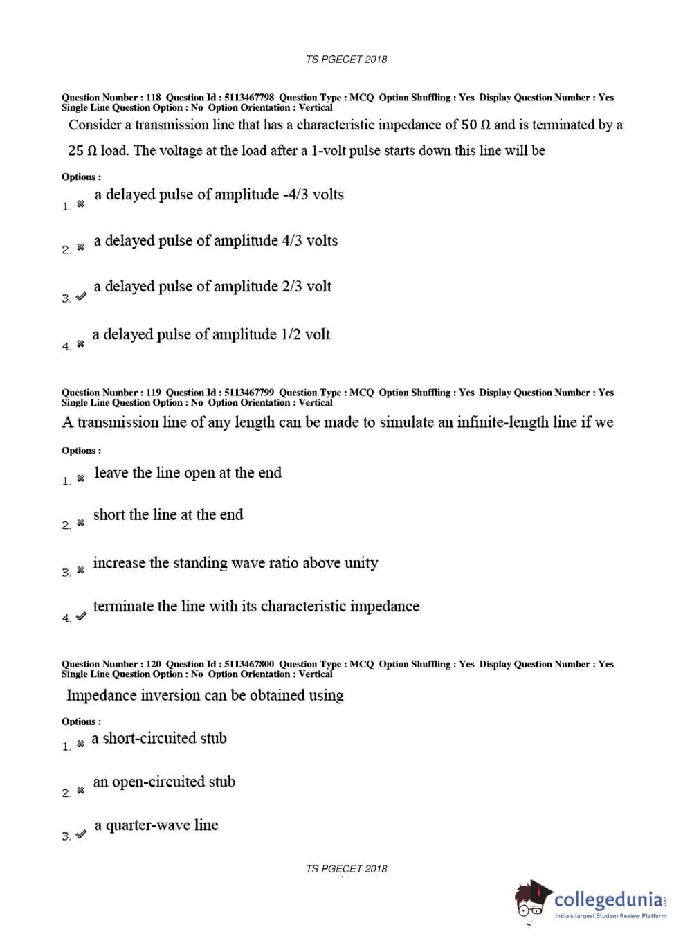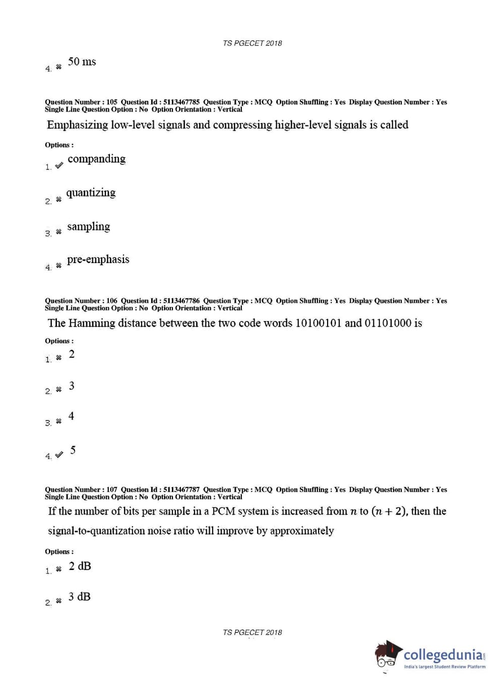 TS PGECET 2018 Electronics and Communication Engineering Question Paper with Answer Key PDFs for Forenoon Session