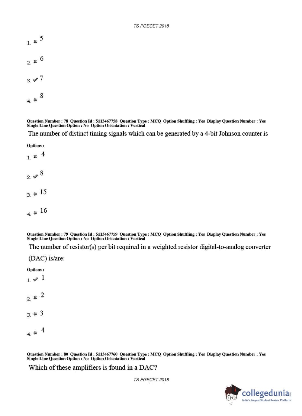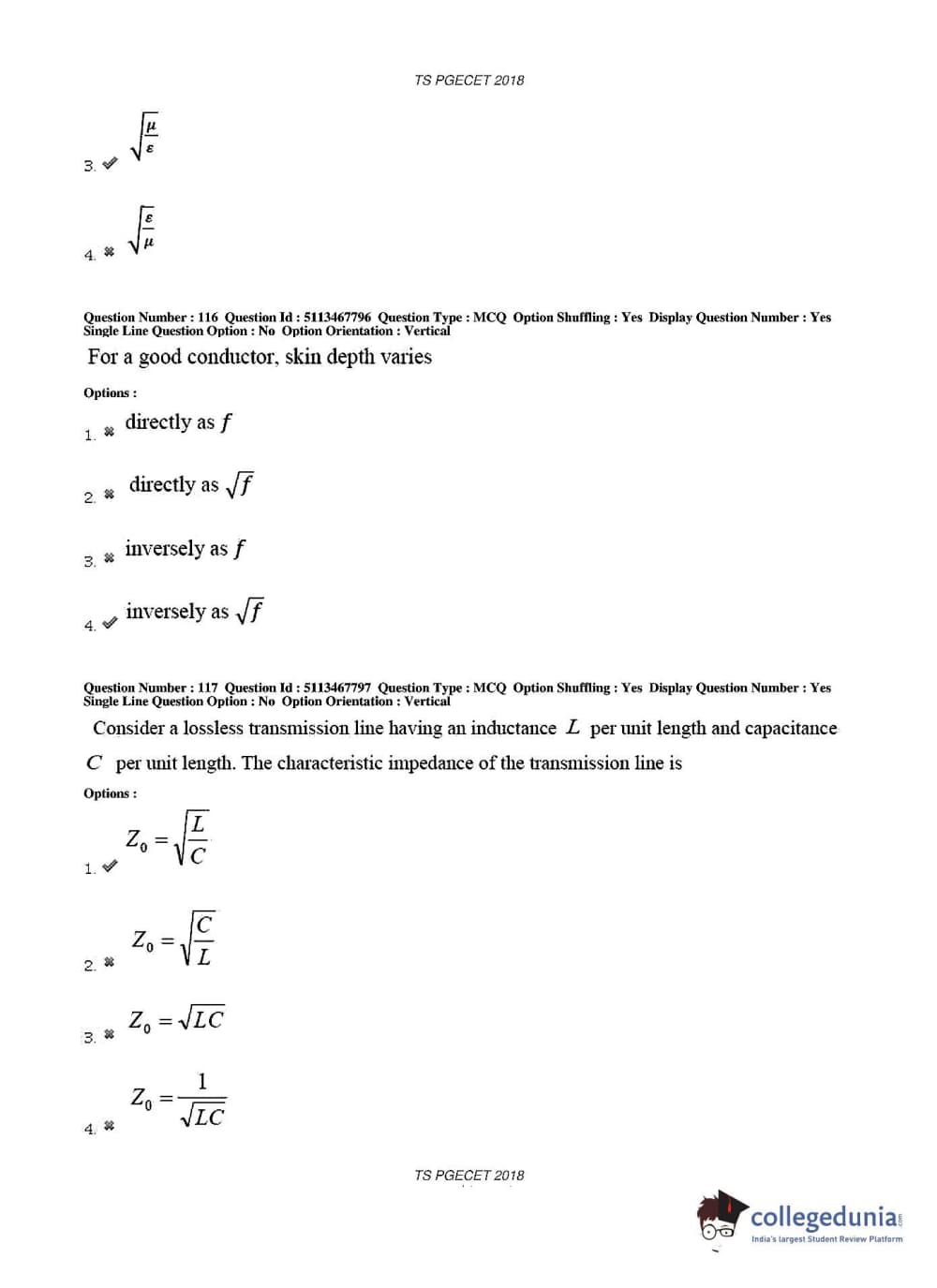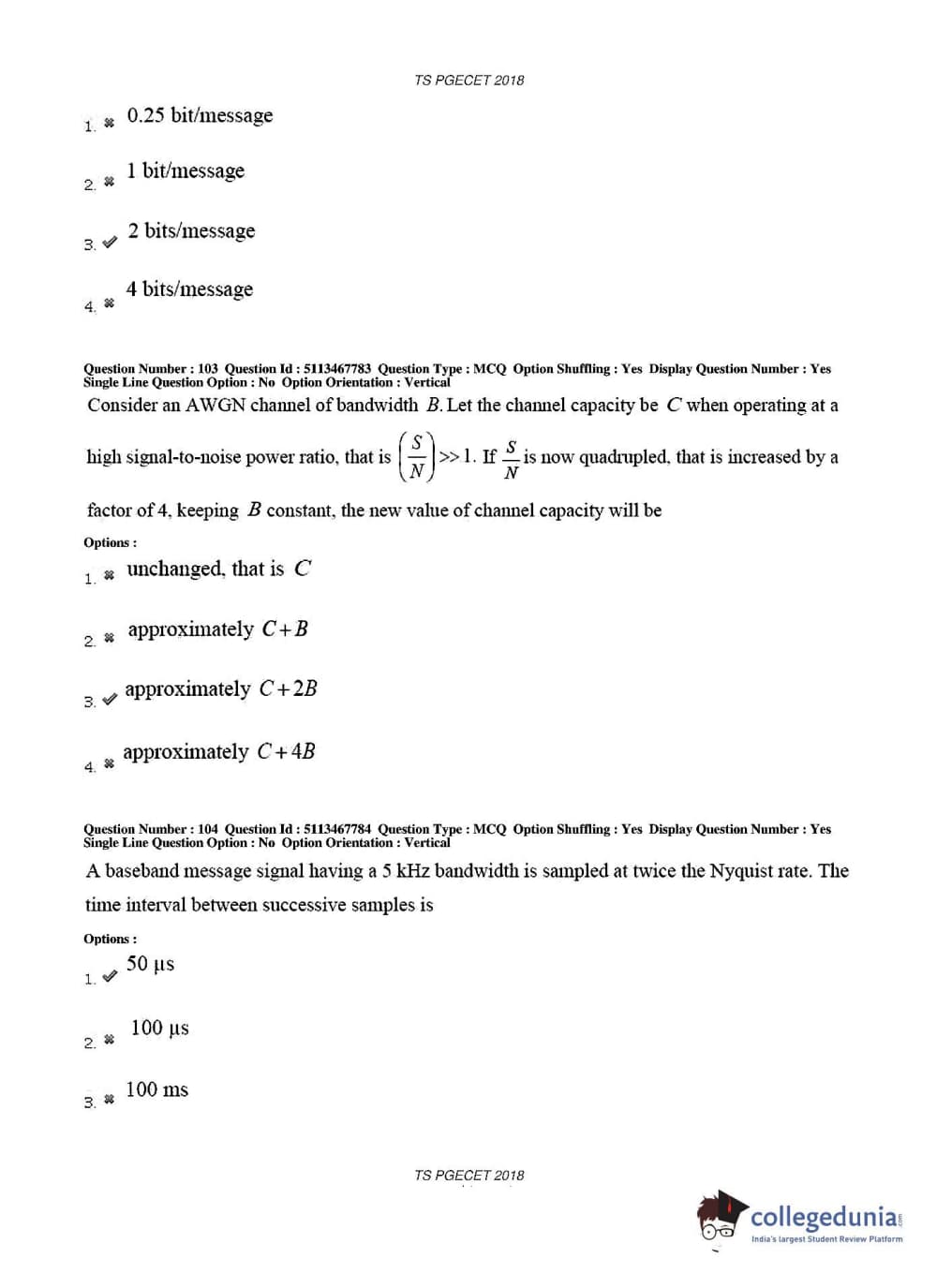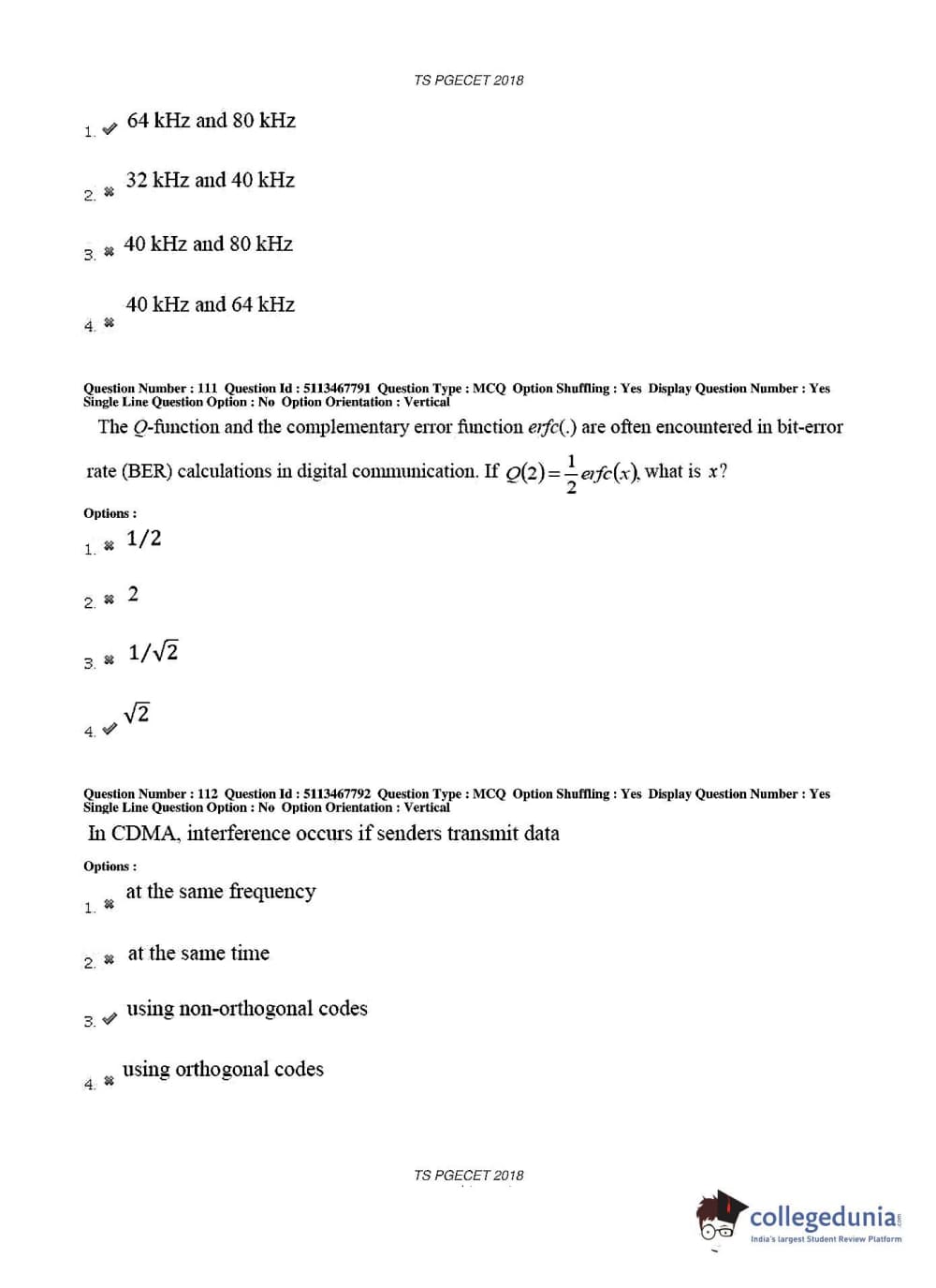 TS PGECET 2018 Electronics and Communication Engineering Question Paper with Answer Key PDFs for Forenoon Session