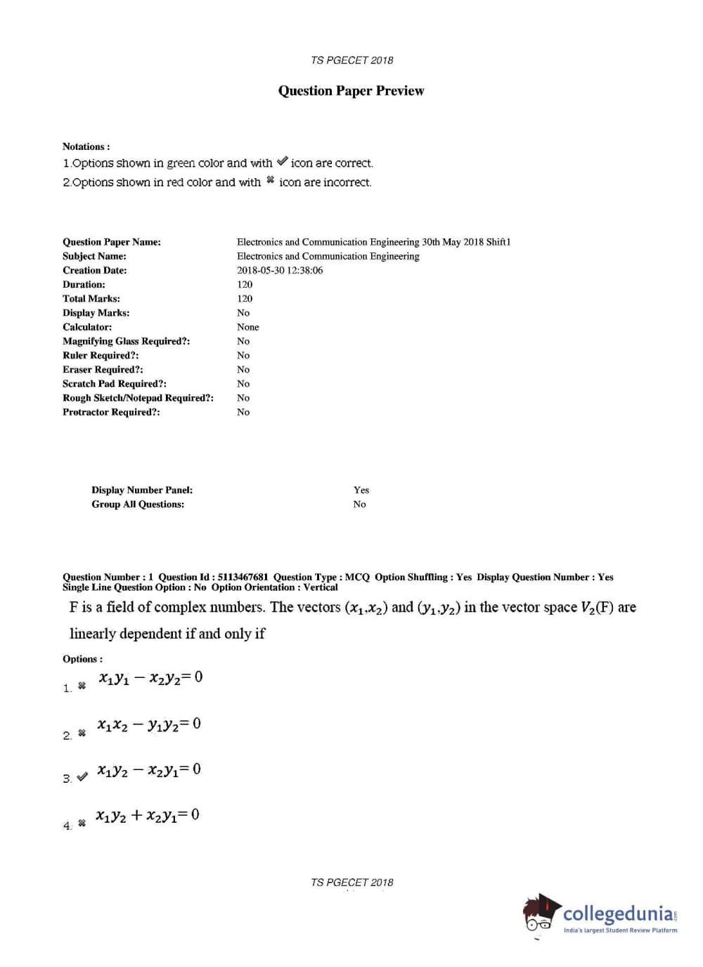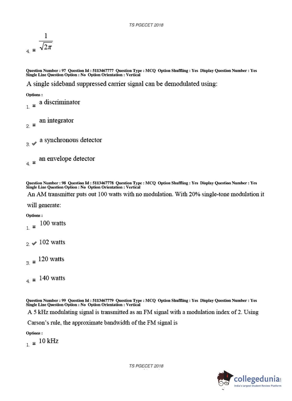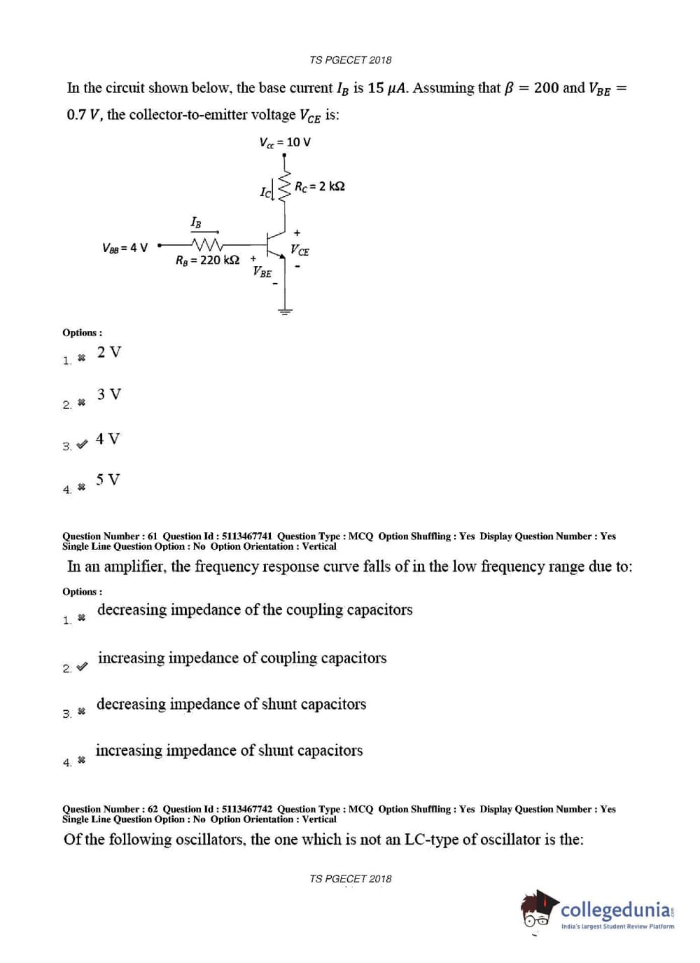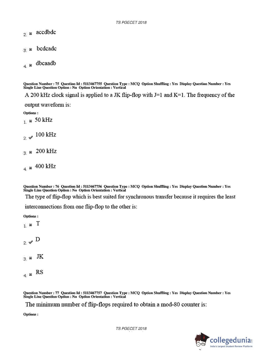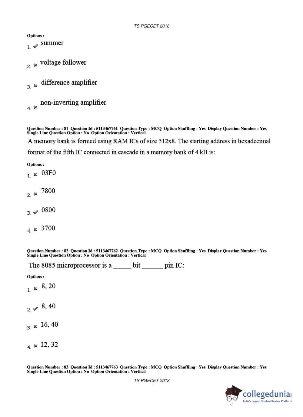 TS PGECET 2018 Electronics and Communication Engineering Question Paper with Answer Key PDFs for Forenoon Session