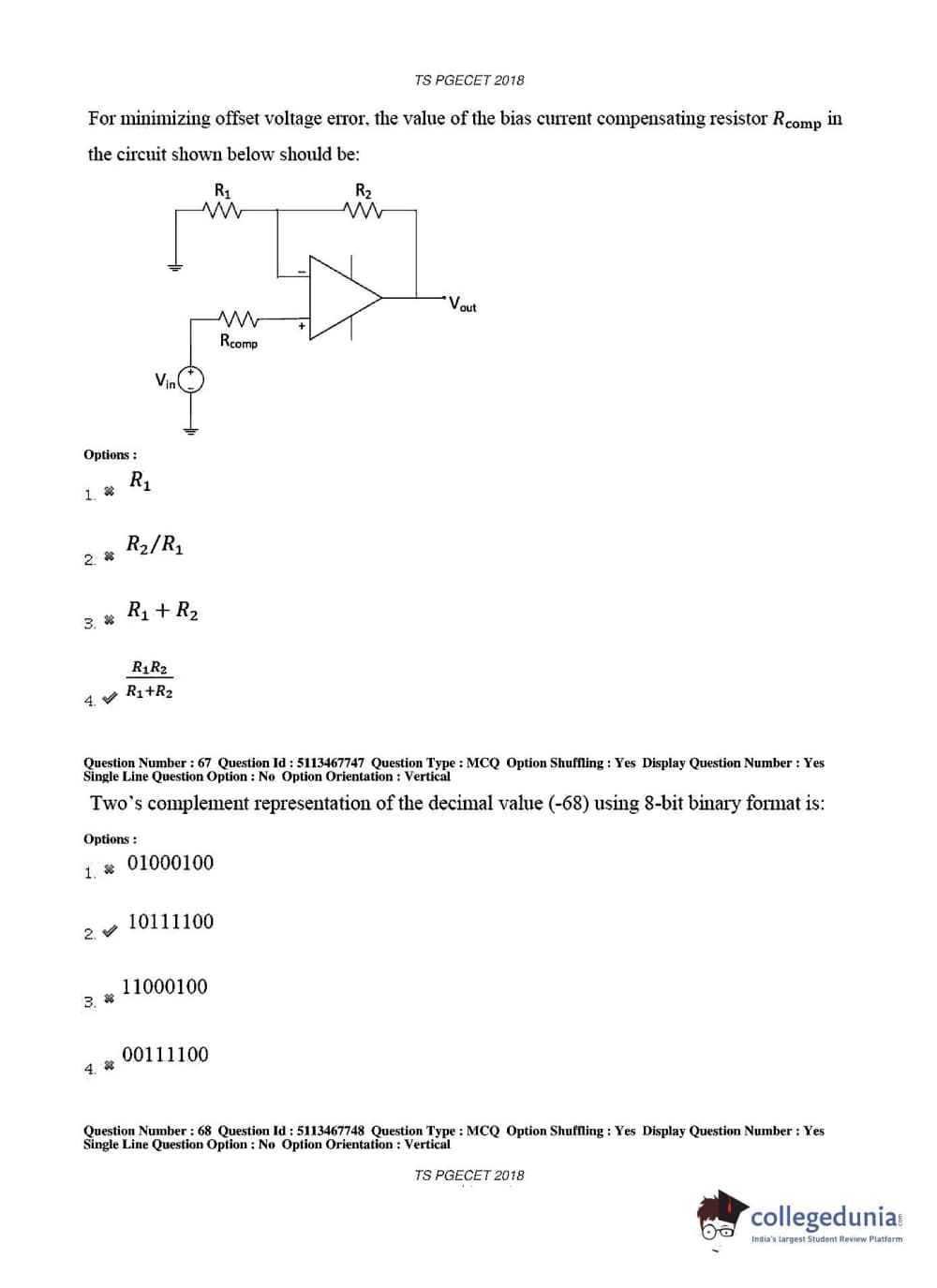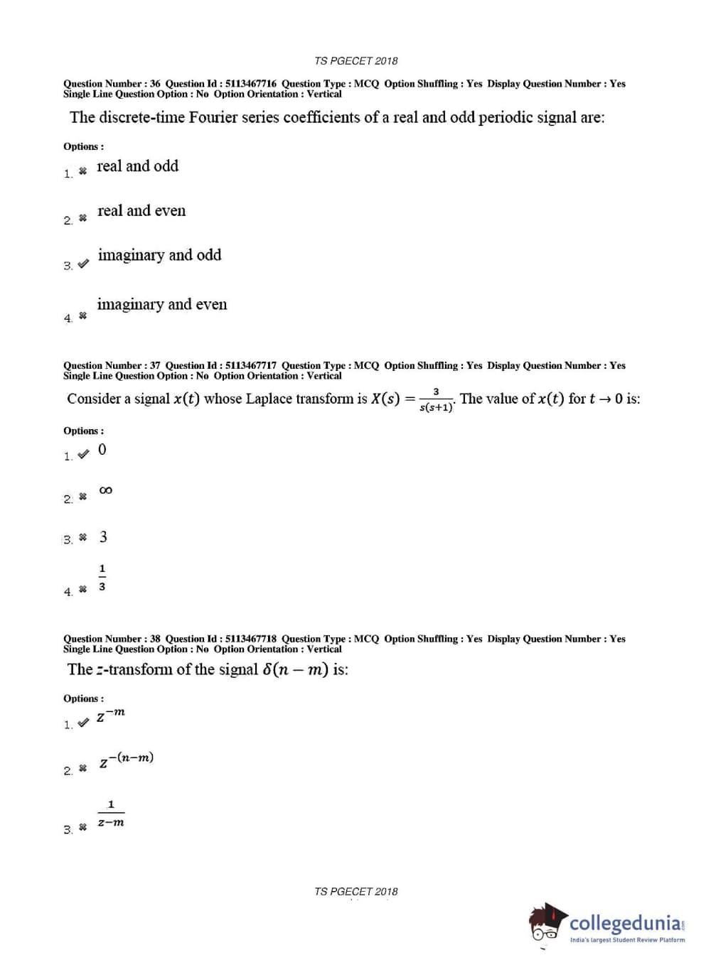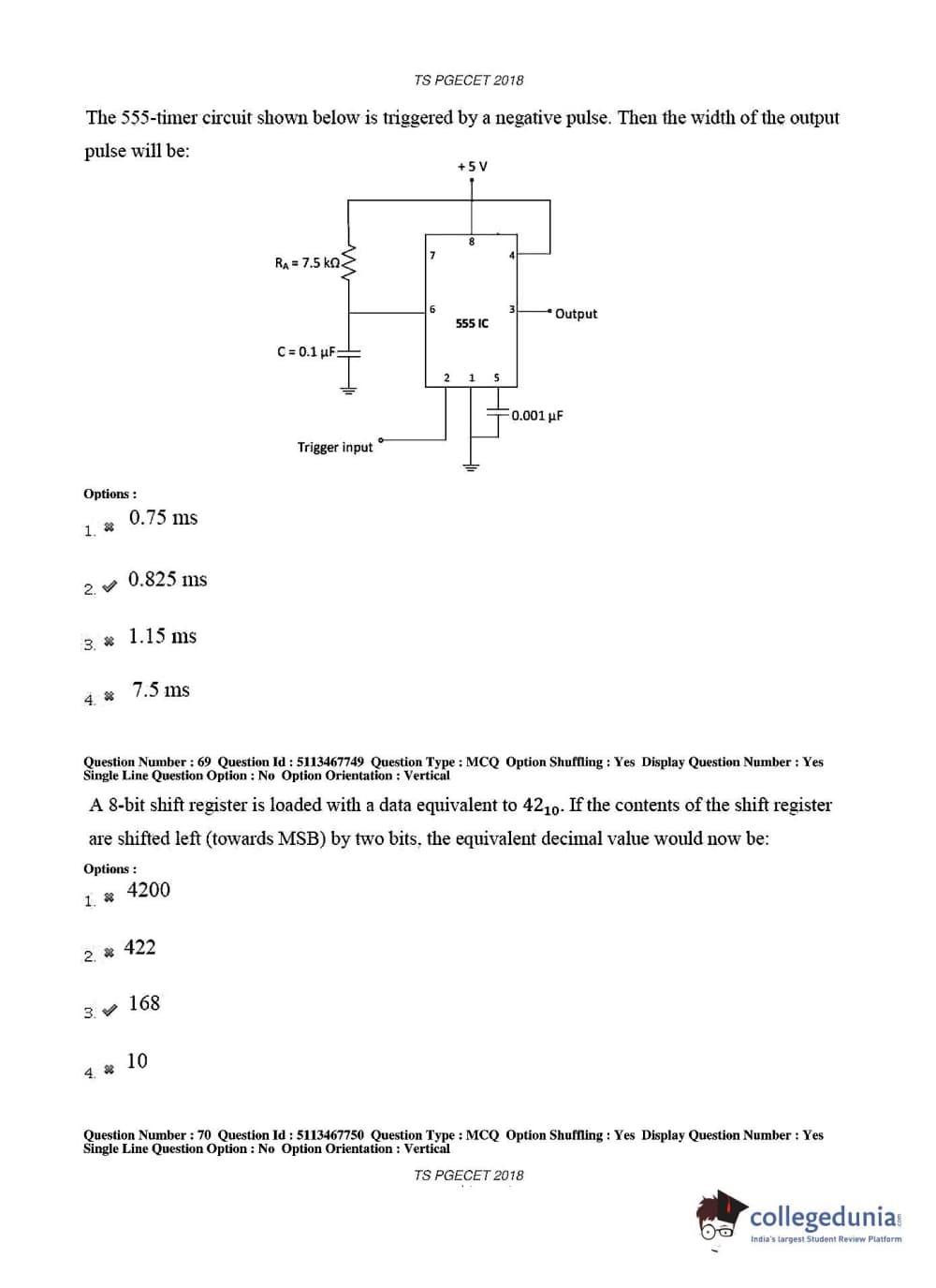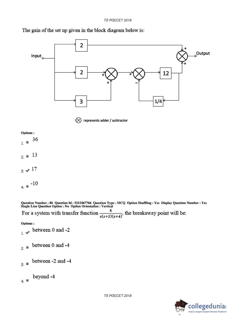 TS PGECET 2018 Electronics and Communication Engineering Question Paper with Answer Key PDFs for Forenoon Session