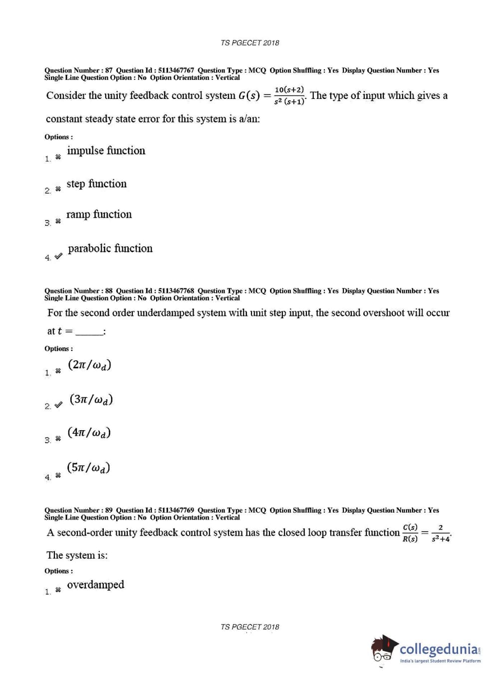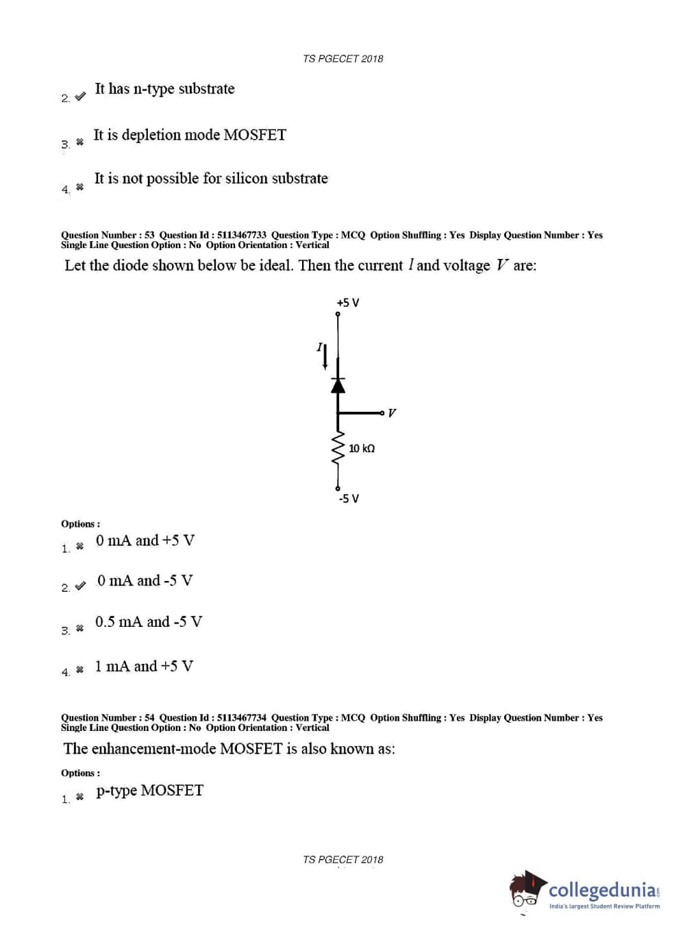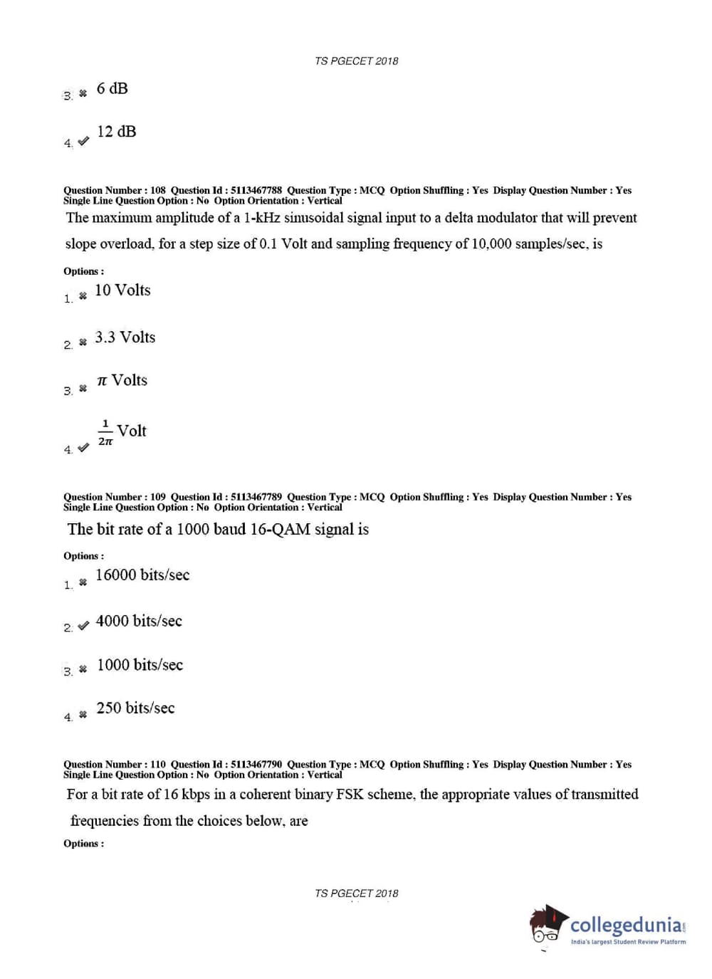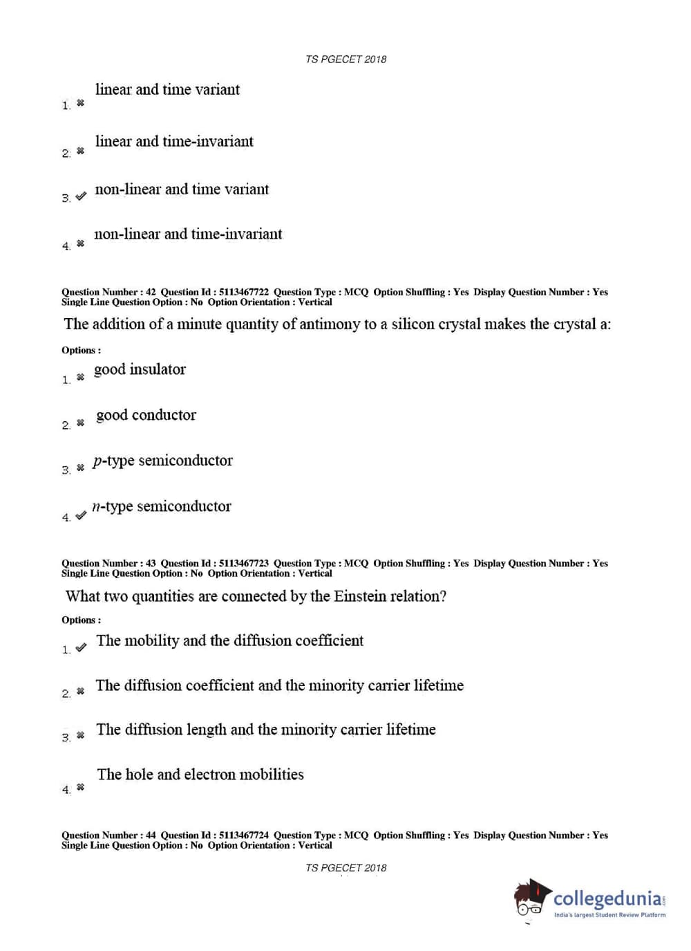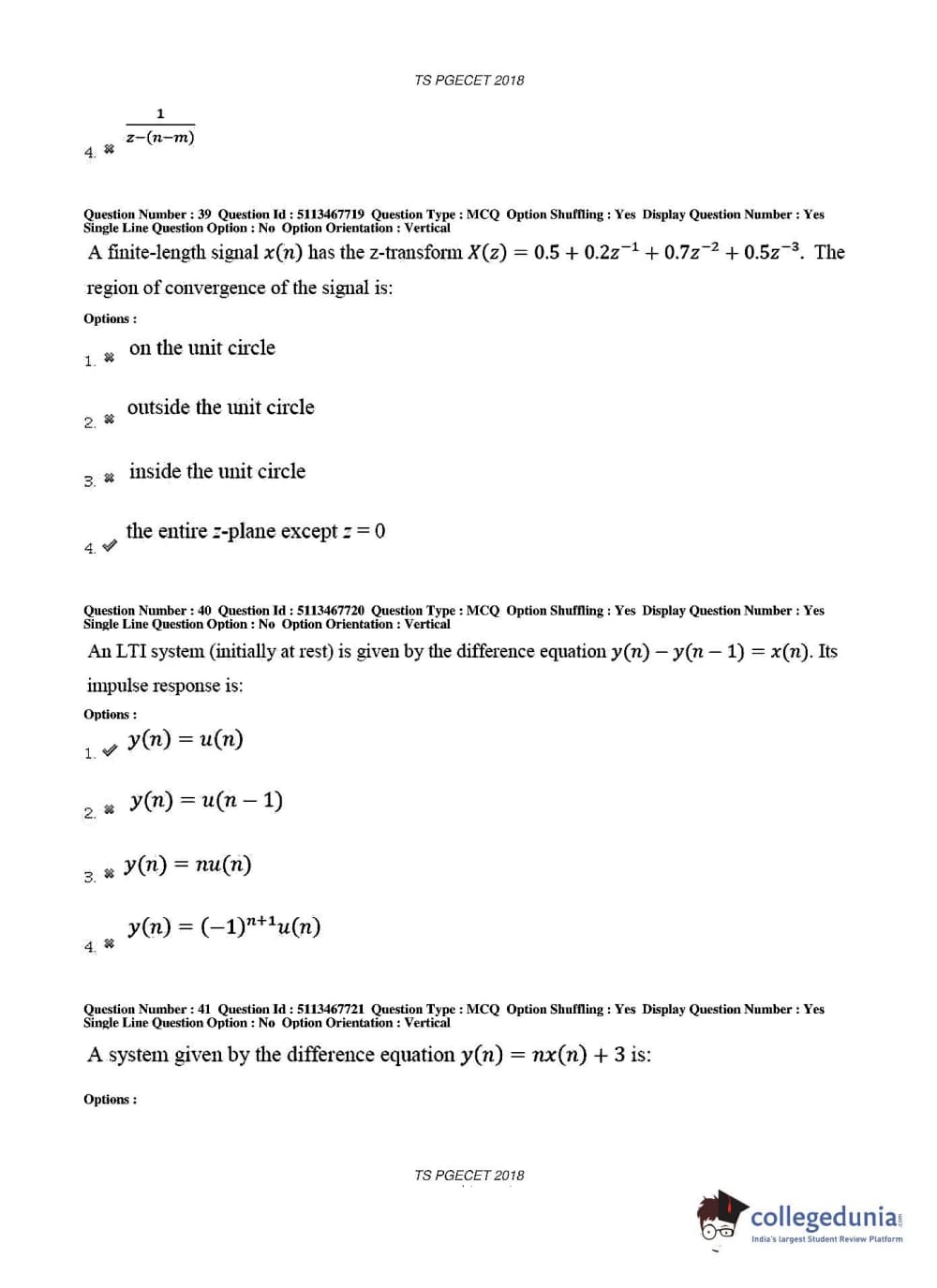 TS PGECET 2018 Electronics and Communication Engineering Question Paper with Answer Key PDFs for Forenoon Session
