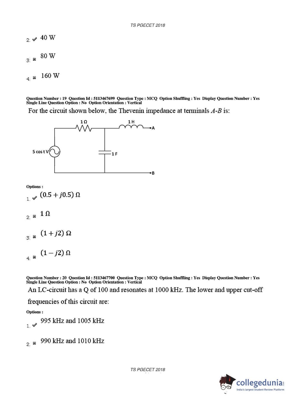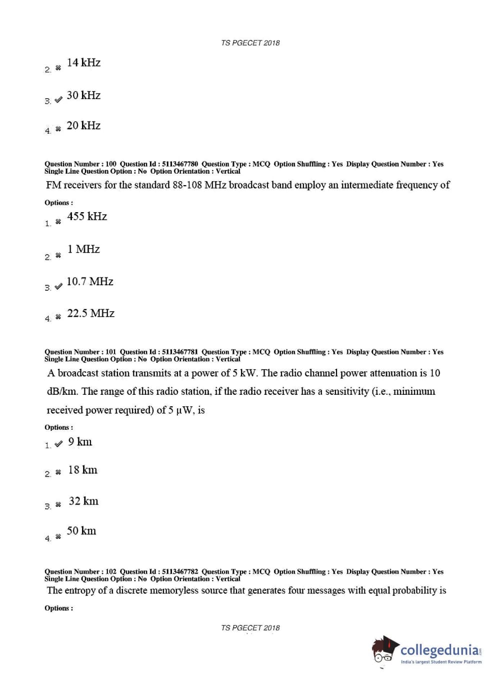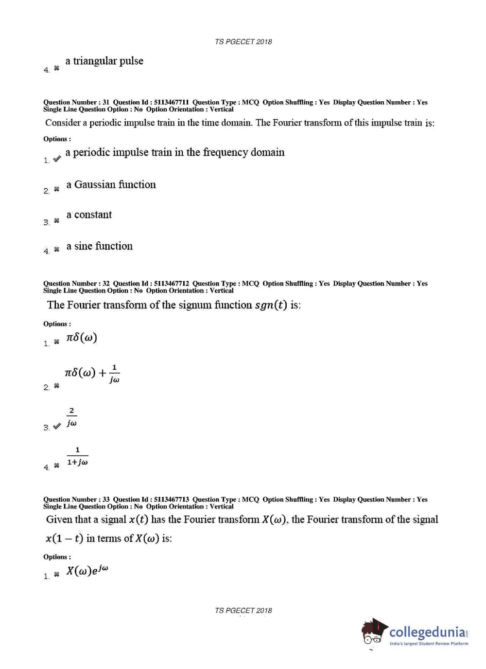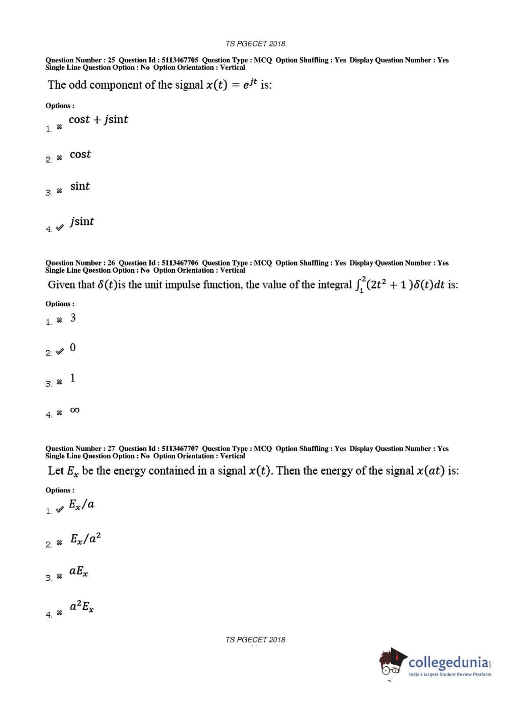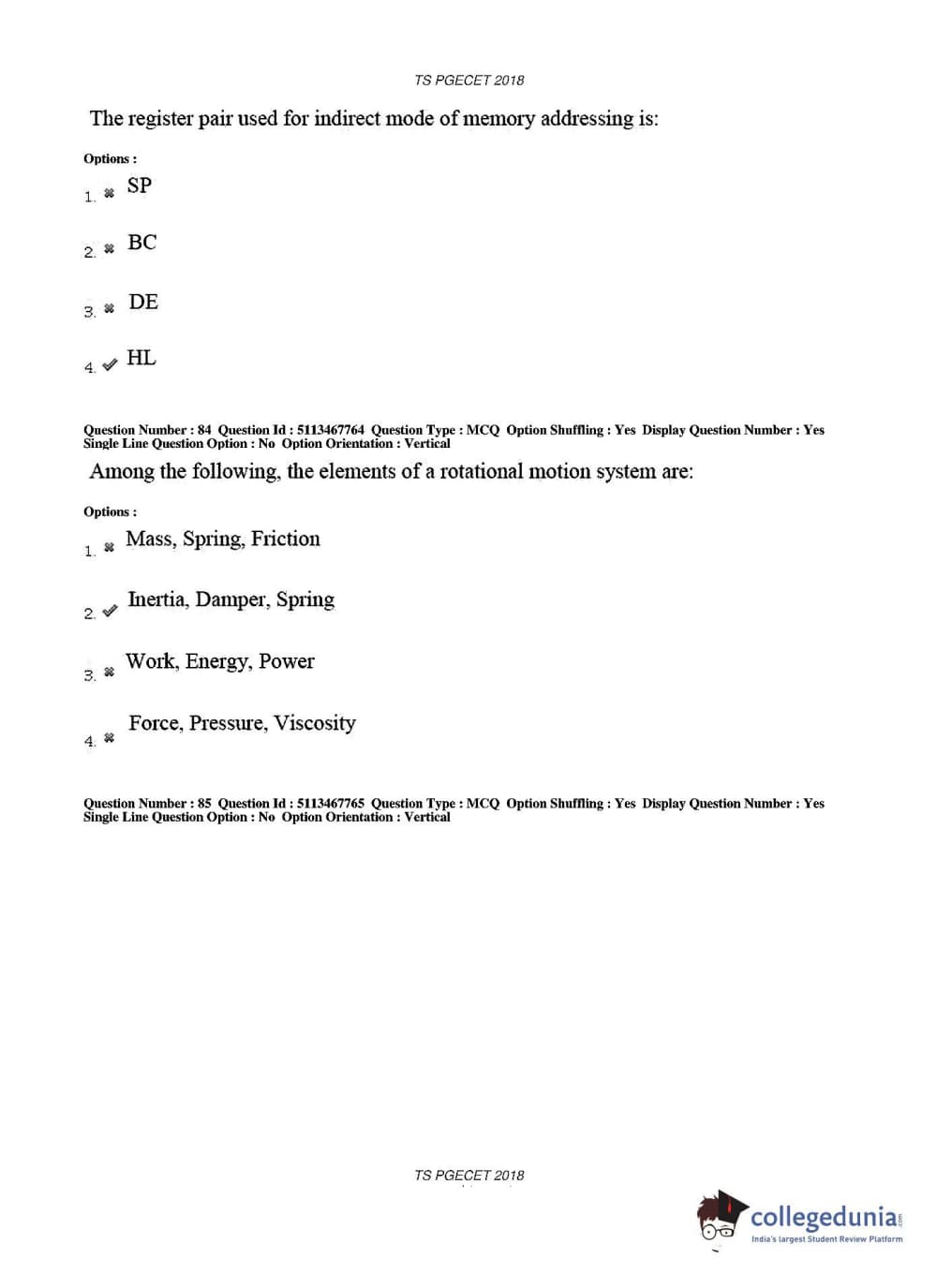 TS PGECET 2018 Electronics and Communication Engineering Question Paper with Answer Key PDFs for Forenoon Session