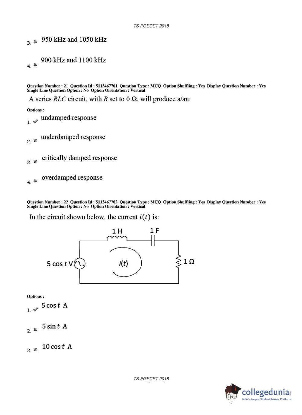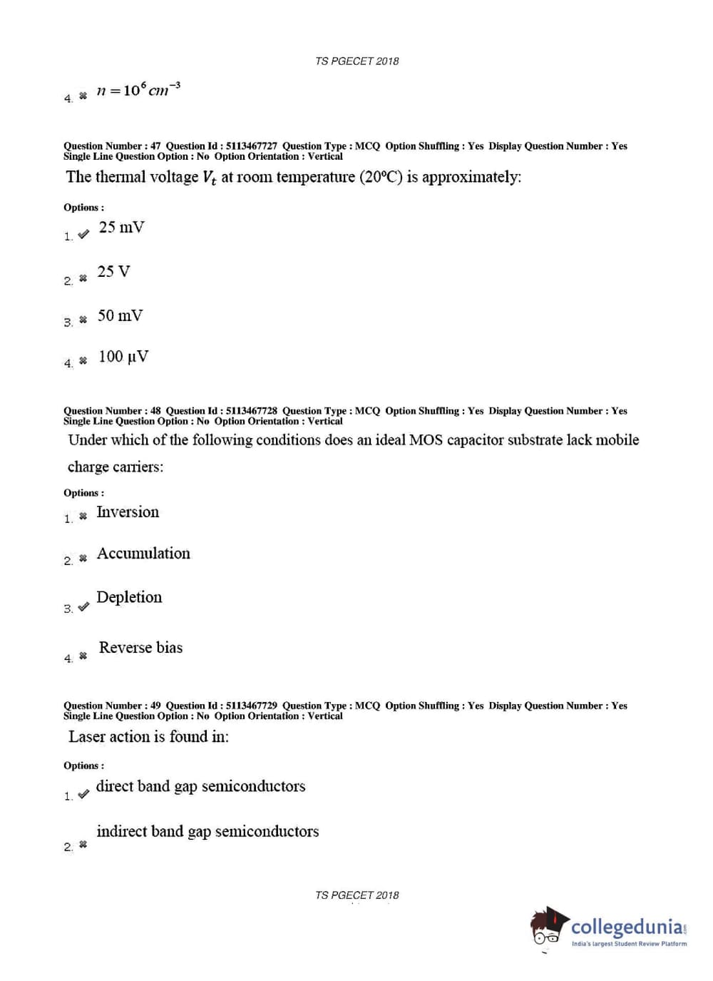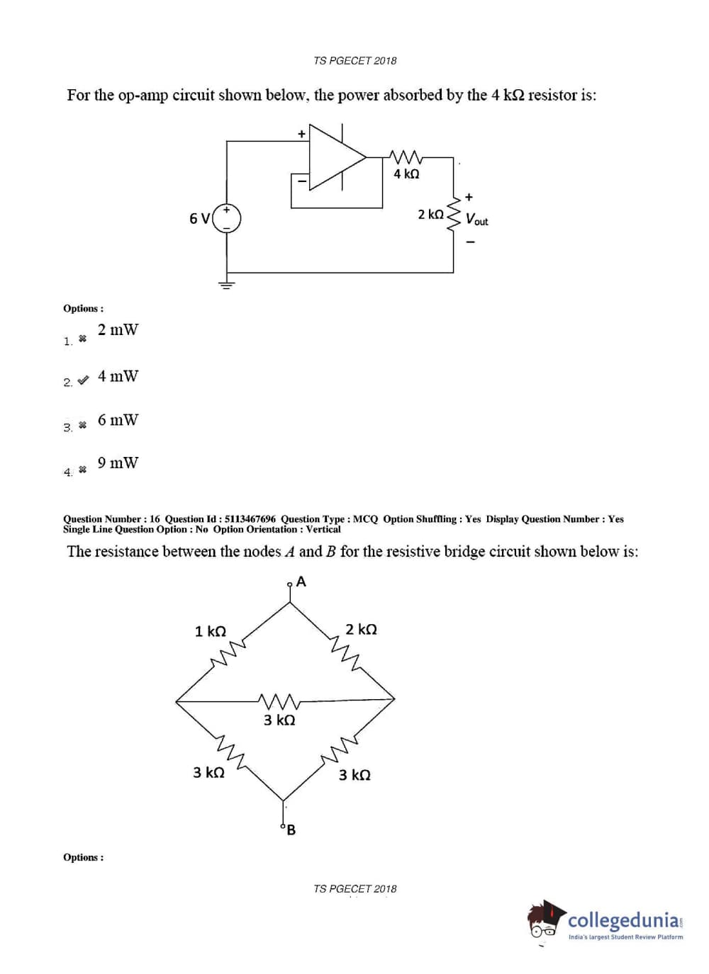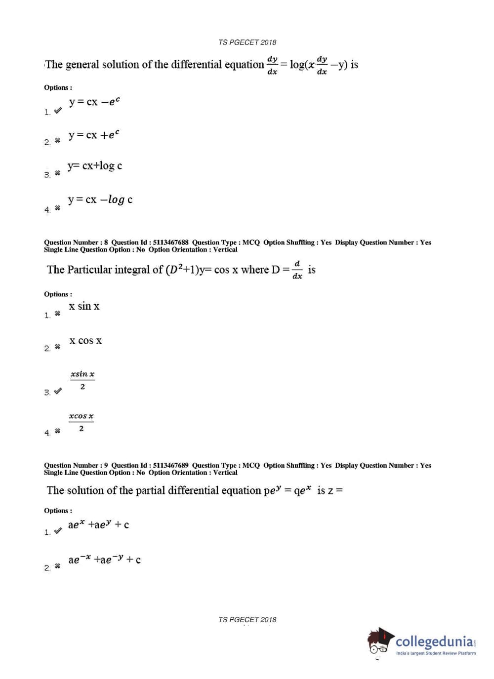 TS PGECET 2018 Electronics and Communication Engineering Question Paper with Answer Key PDFs for Forenoon Session