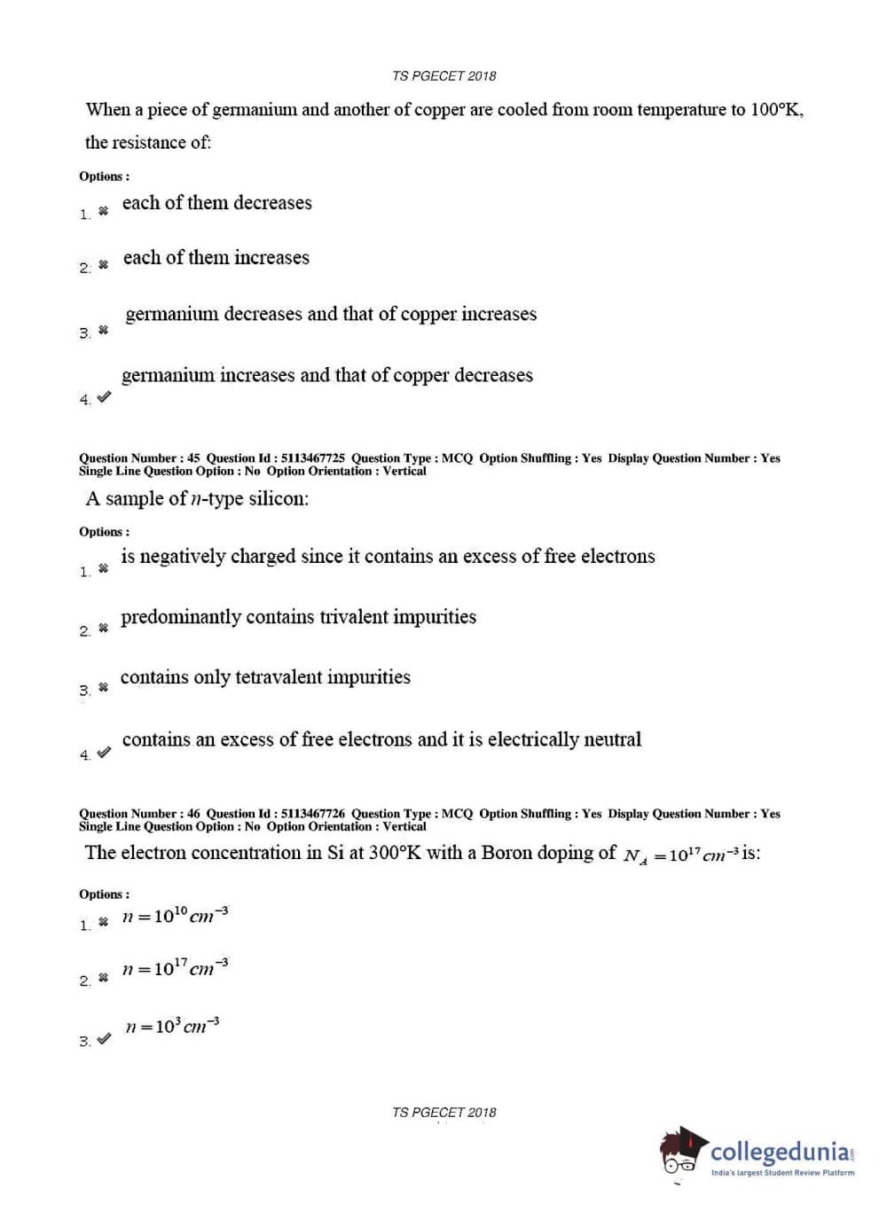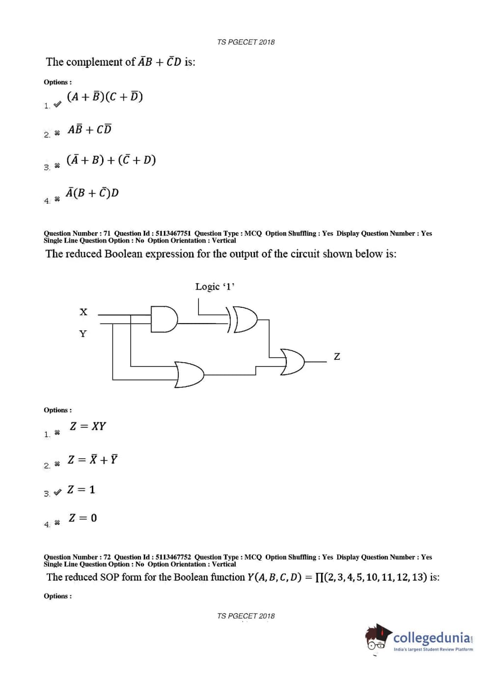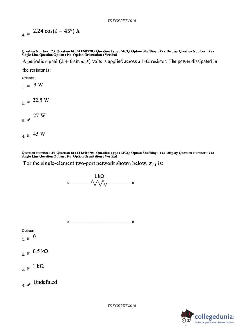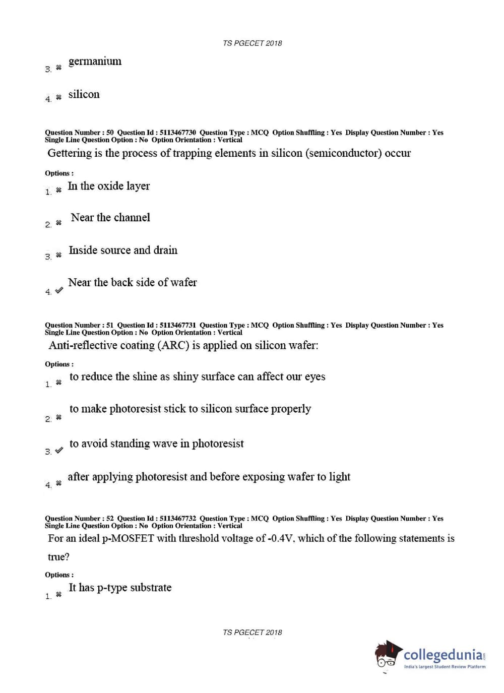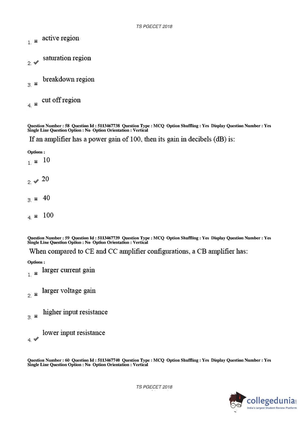 TS PGECET 2018 Electronics and Communication Engineering Question Paper with Answer Key PDFs for Forenoon Session