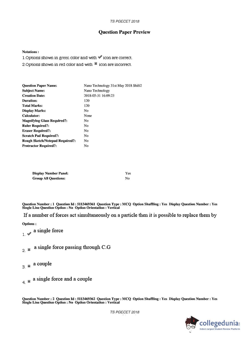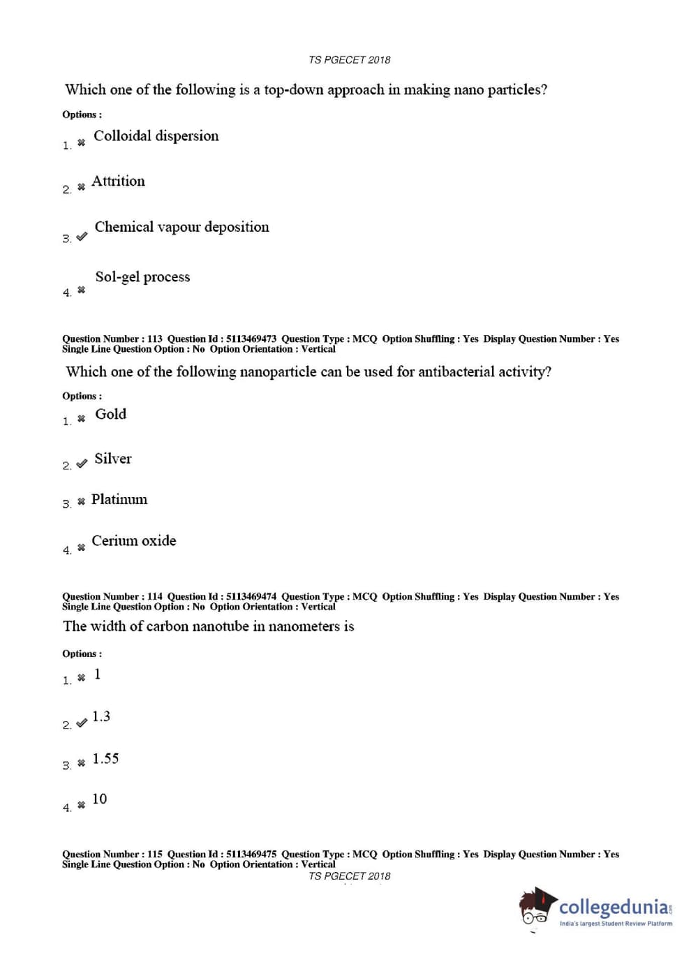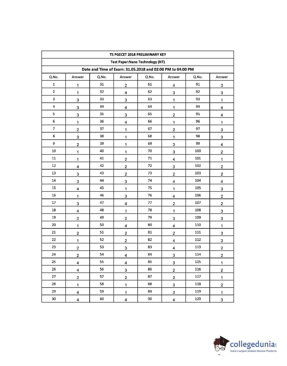 | TS PGECET 2018 Nano Technology Question Paper PDF | TS PGECET 2018 Nano Technology Answer Key PDF |