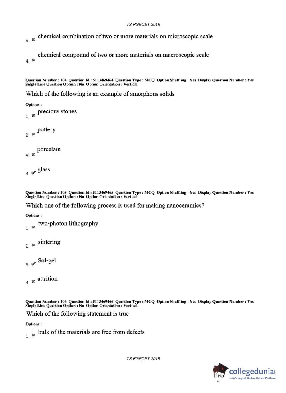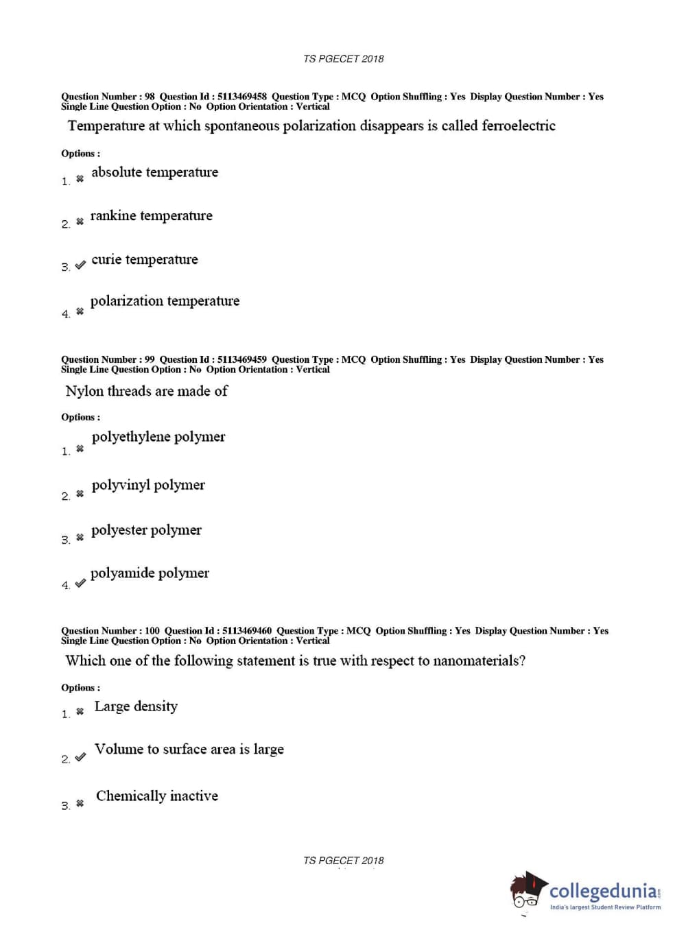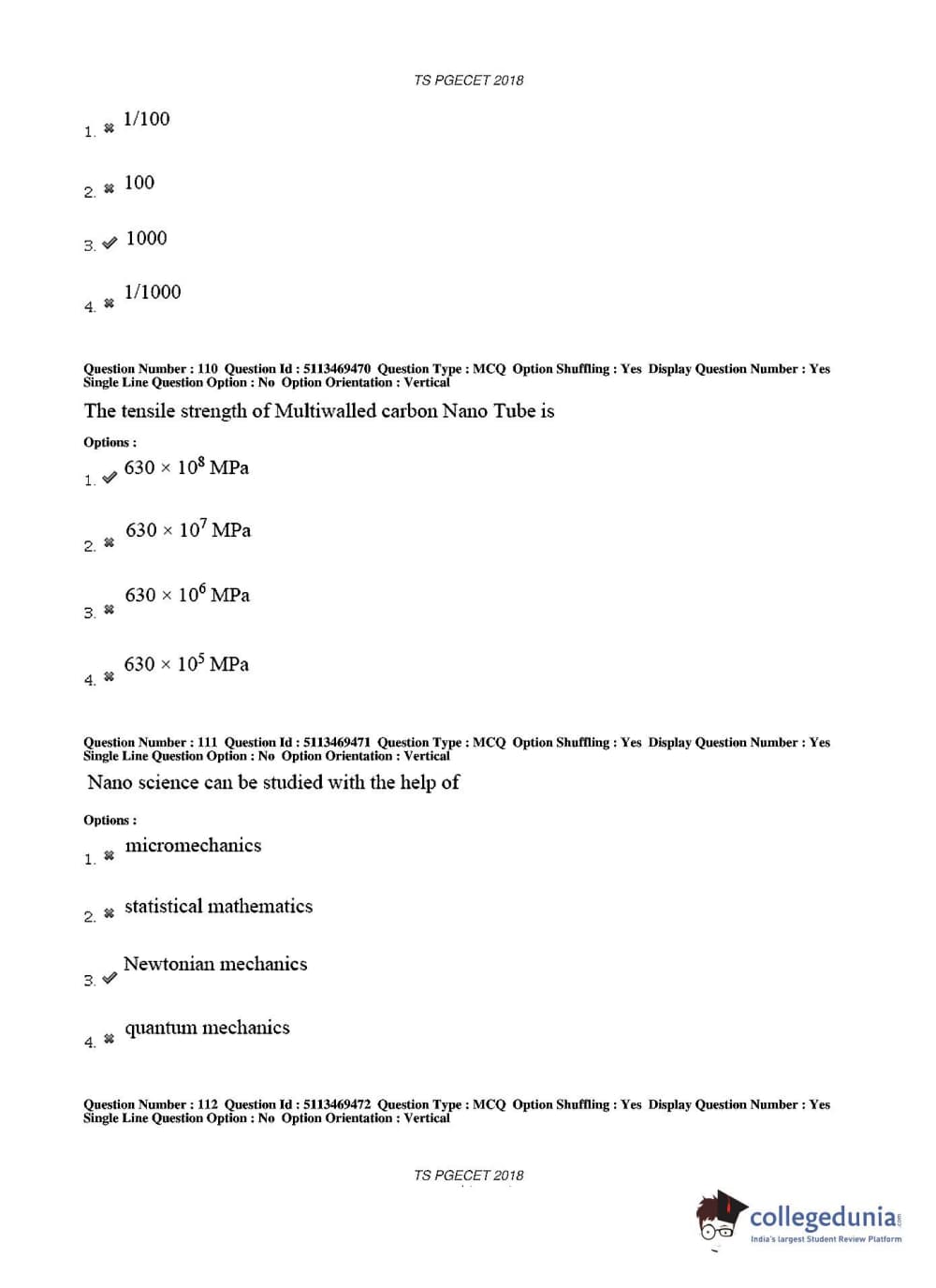 TS PGECET 2018 Nano Technology Question Paper with Answer Key PDFs for Afternoon Session