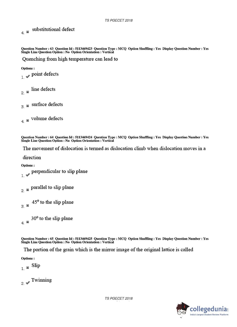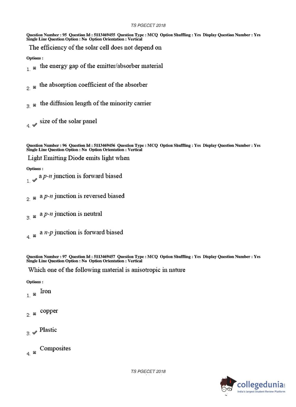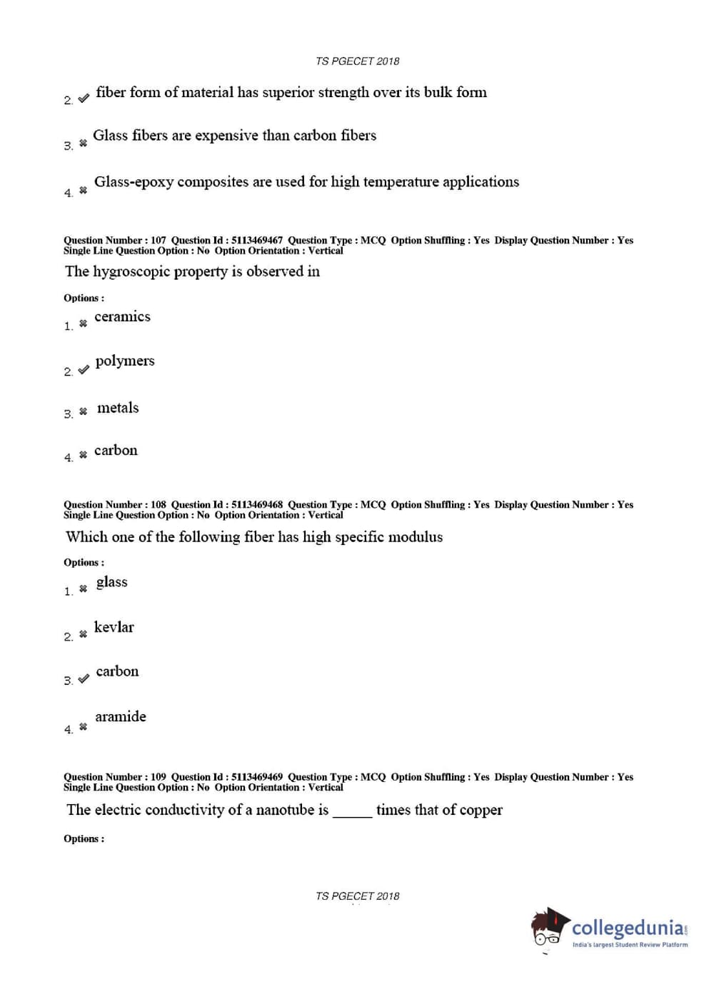 TS PGECET 2018 Nano Technology Question Paper with Answer Key PDFs for Afternoon Session