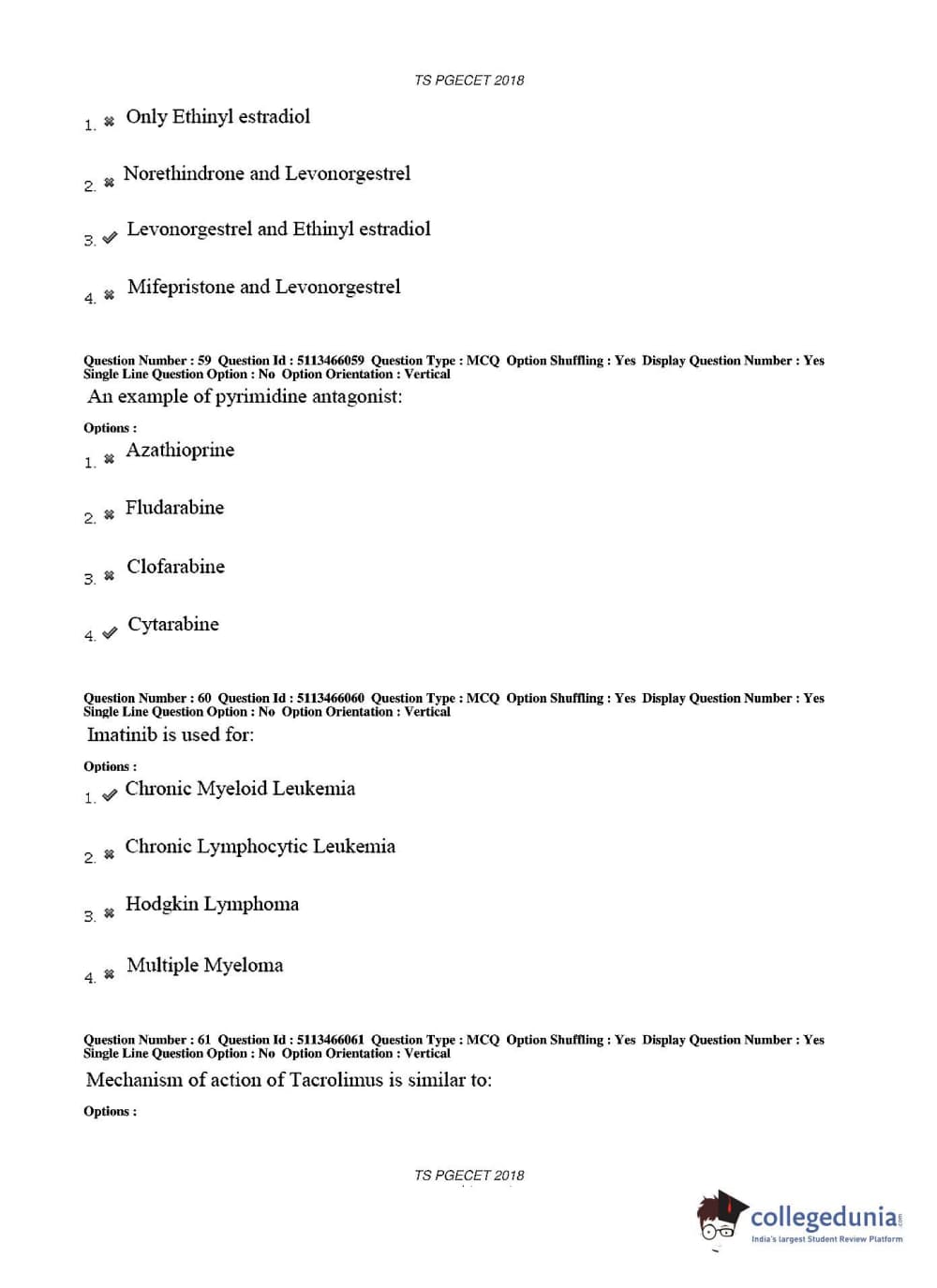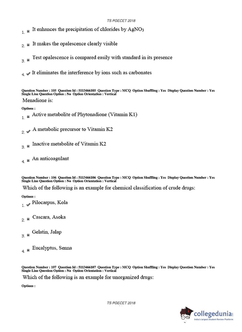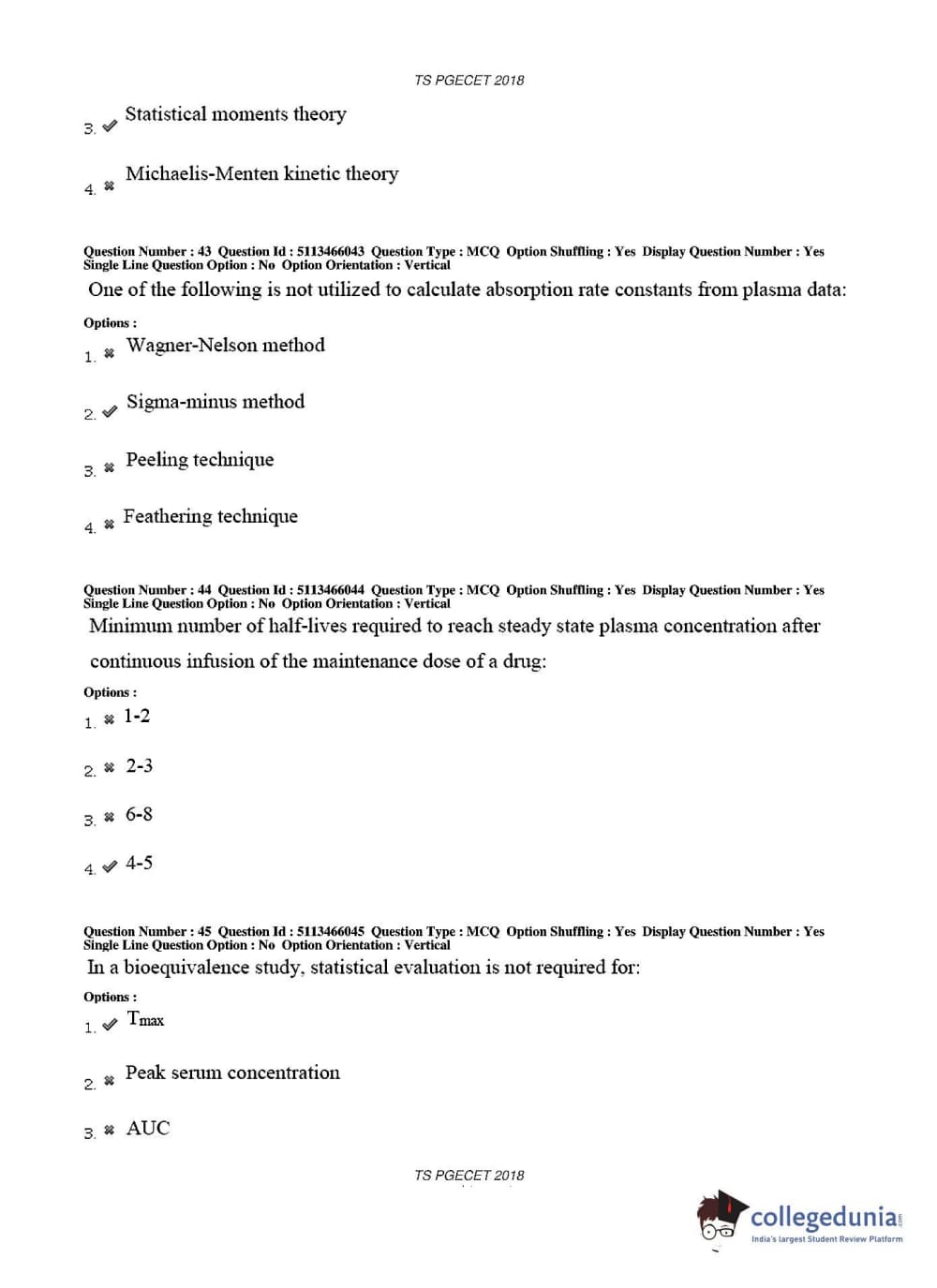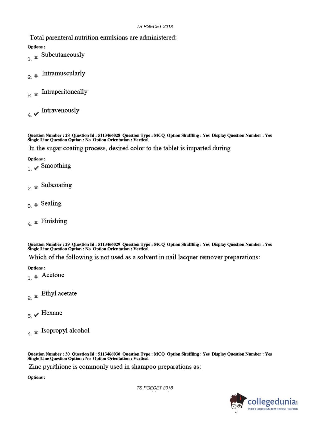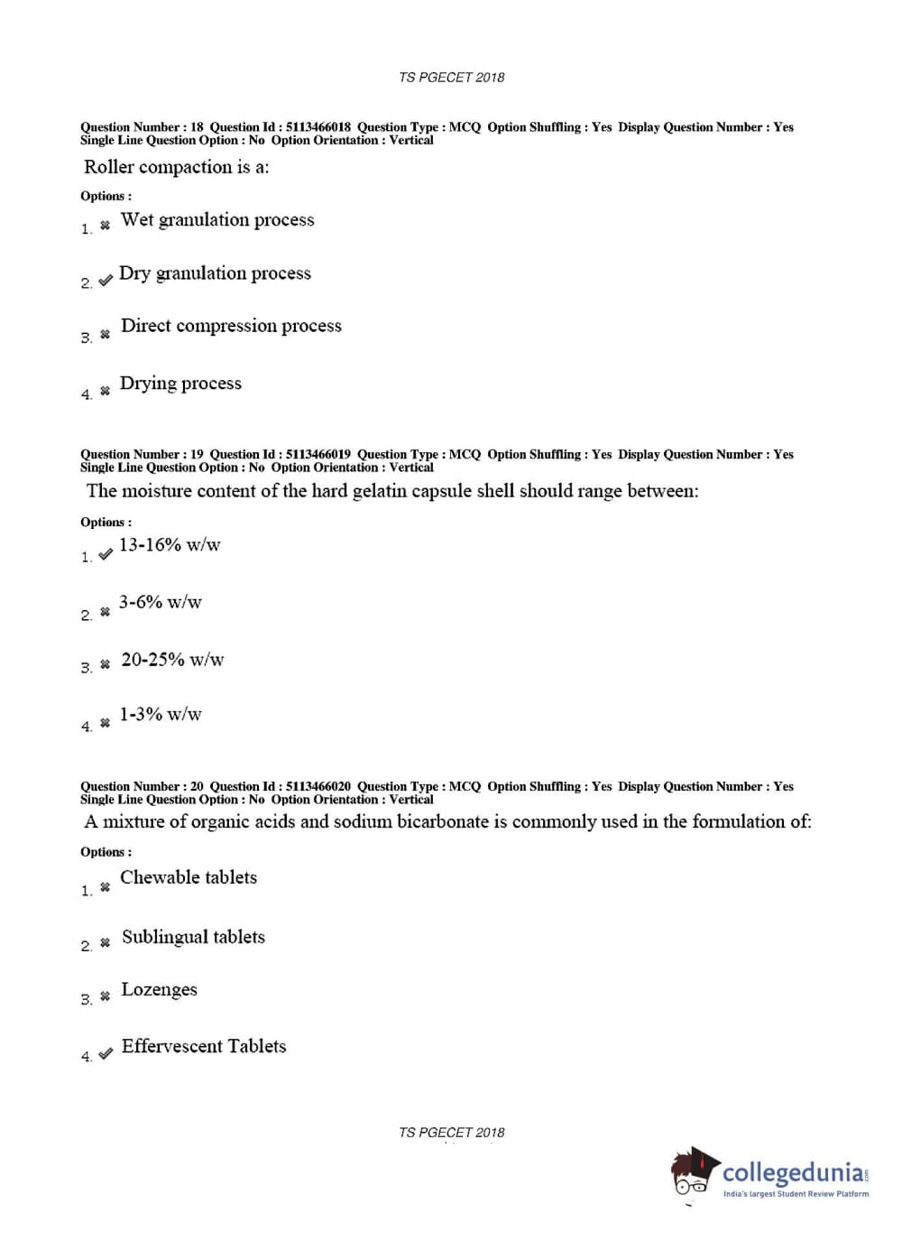 TS PGECET 2018 Pharmacy Question Paper with Answer Key PDFs for Forenoon Session