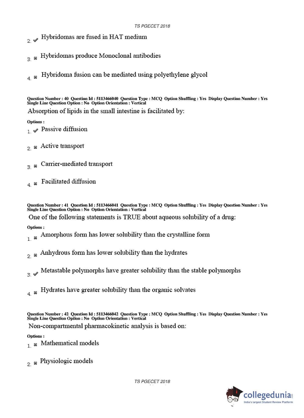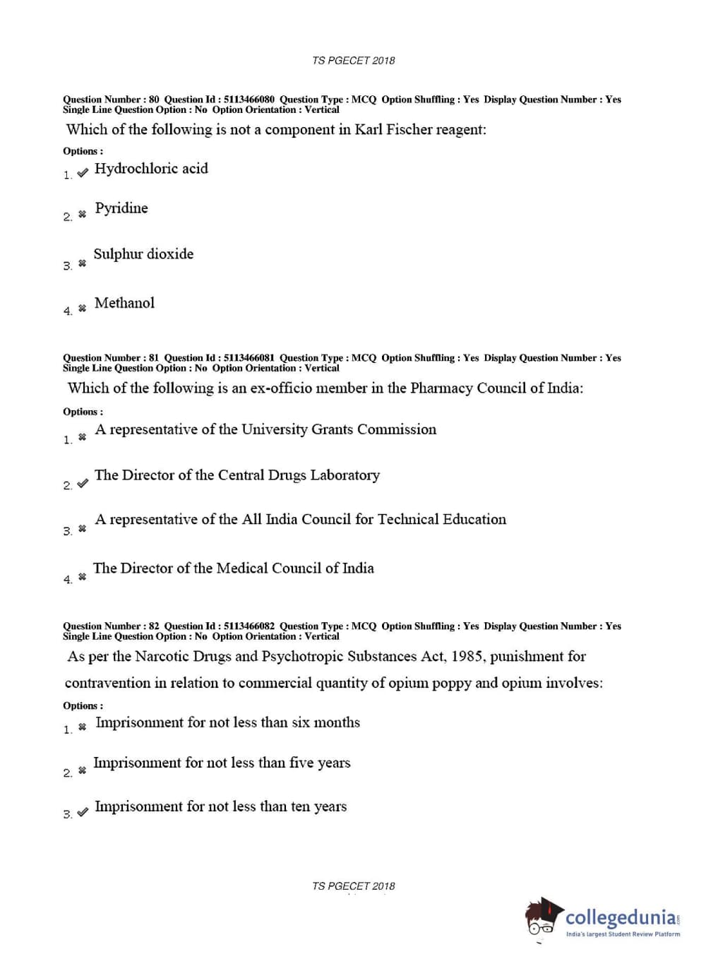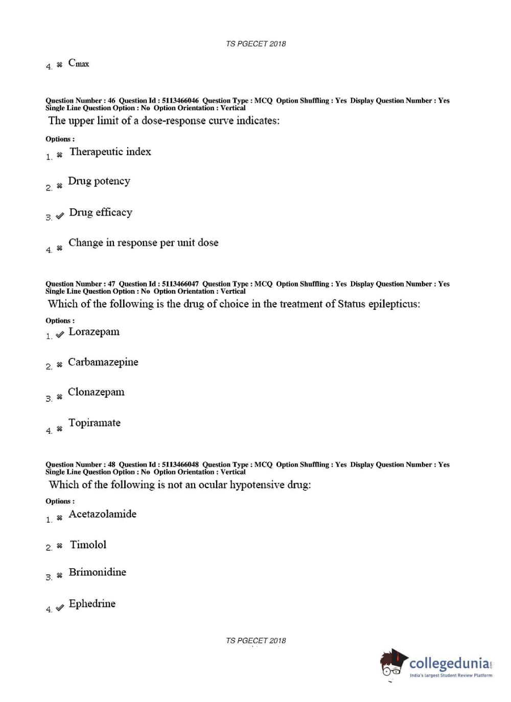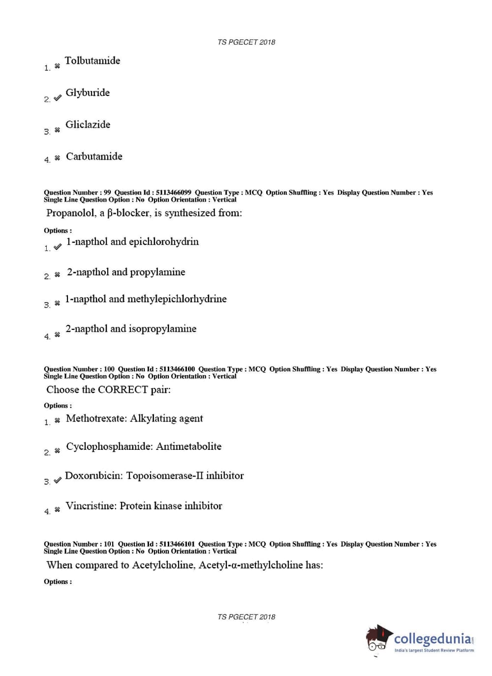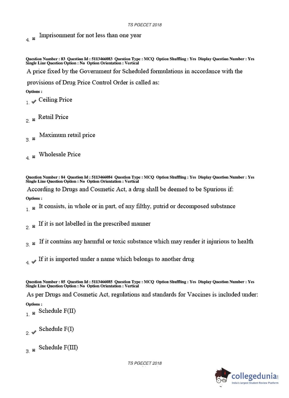 TS PGECET 2018 Pharmacy Question Paper with Answer Key PDFs for Forenoon Session