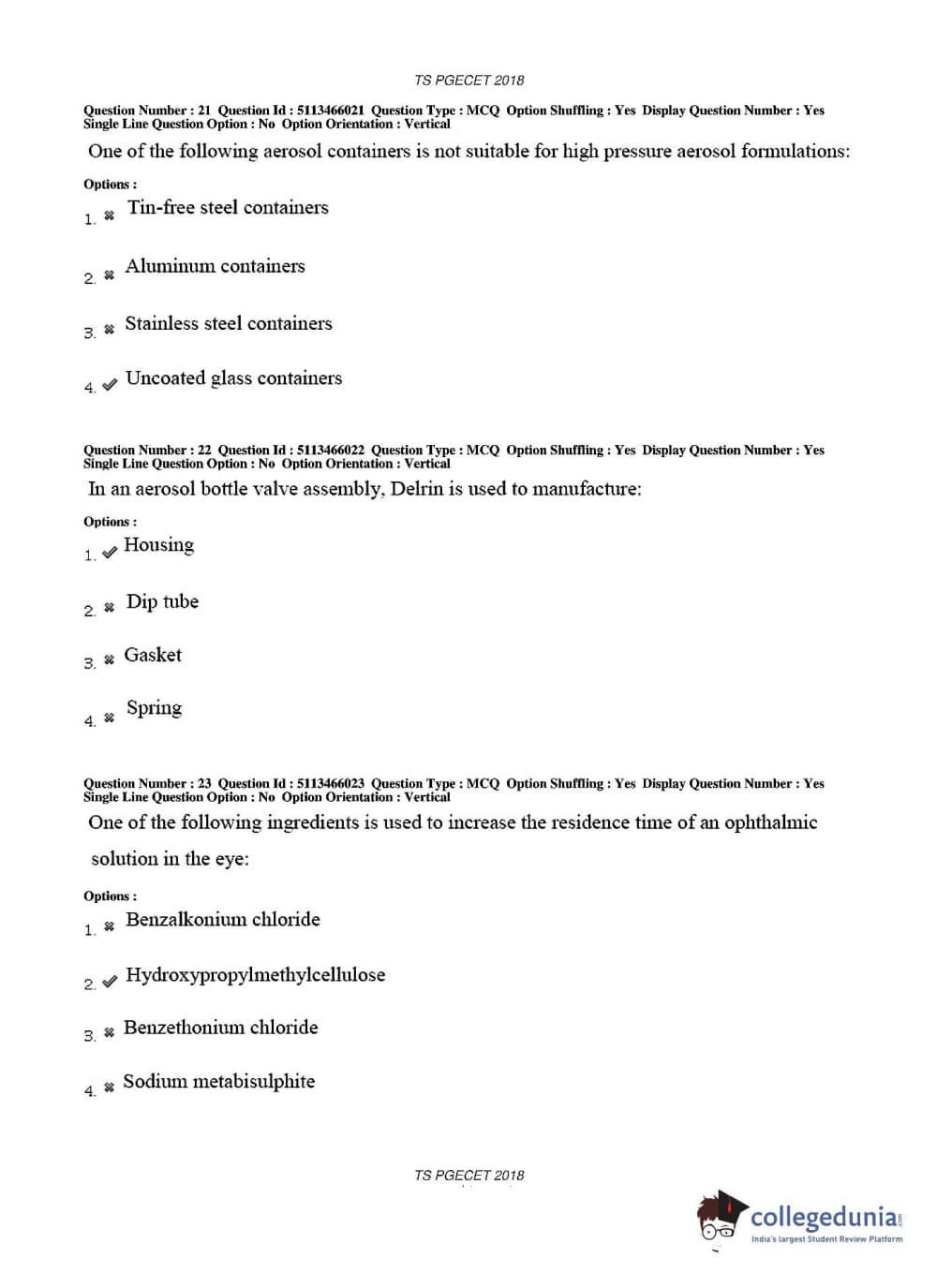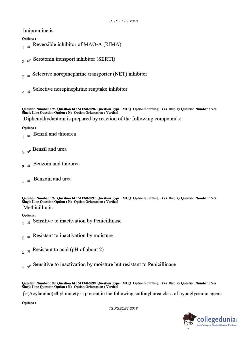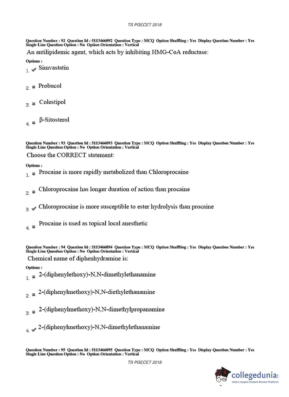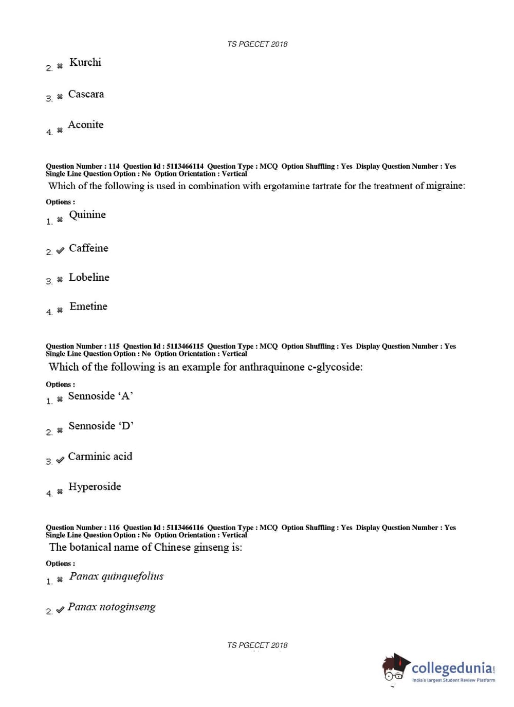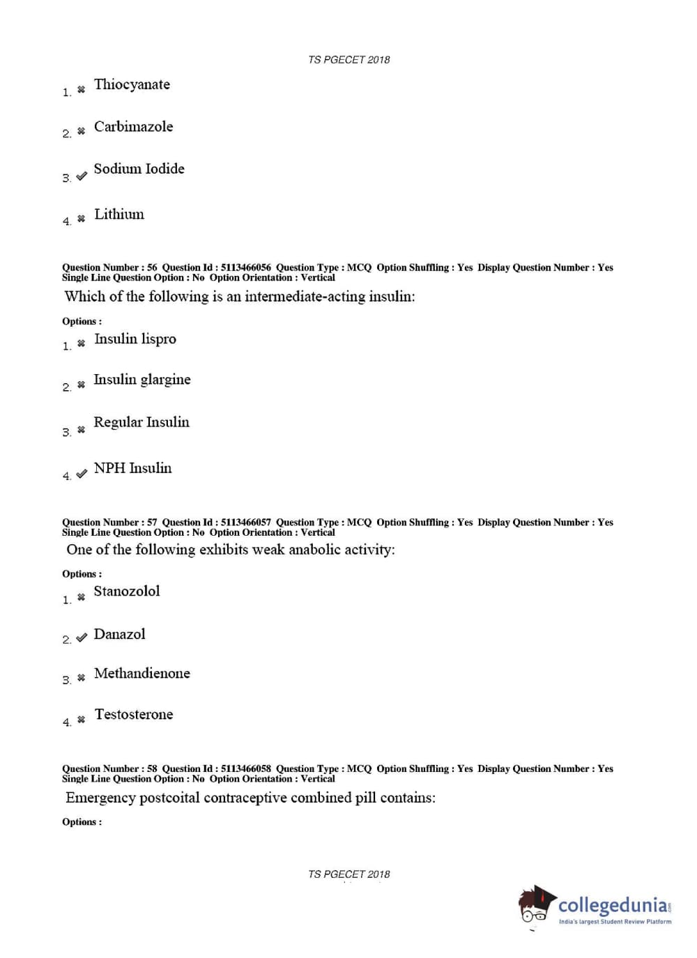 TS PGECET 2018 Pharmacy Question Paper with Answer Key PDFs for Forenoon Session