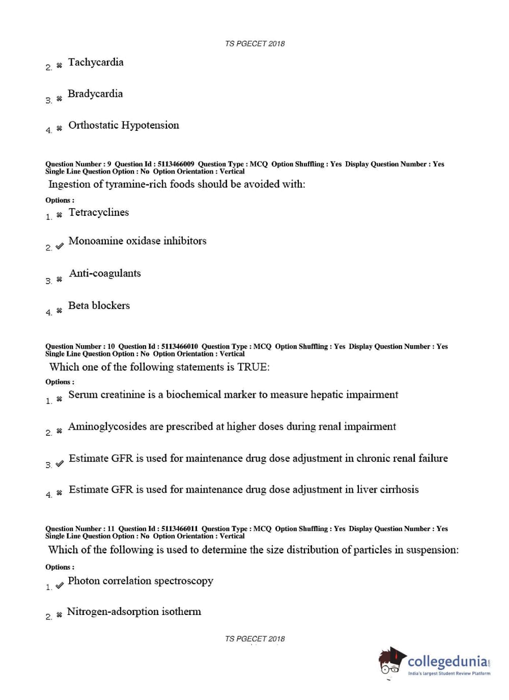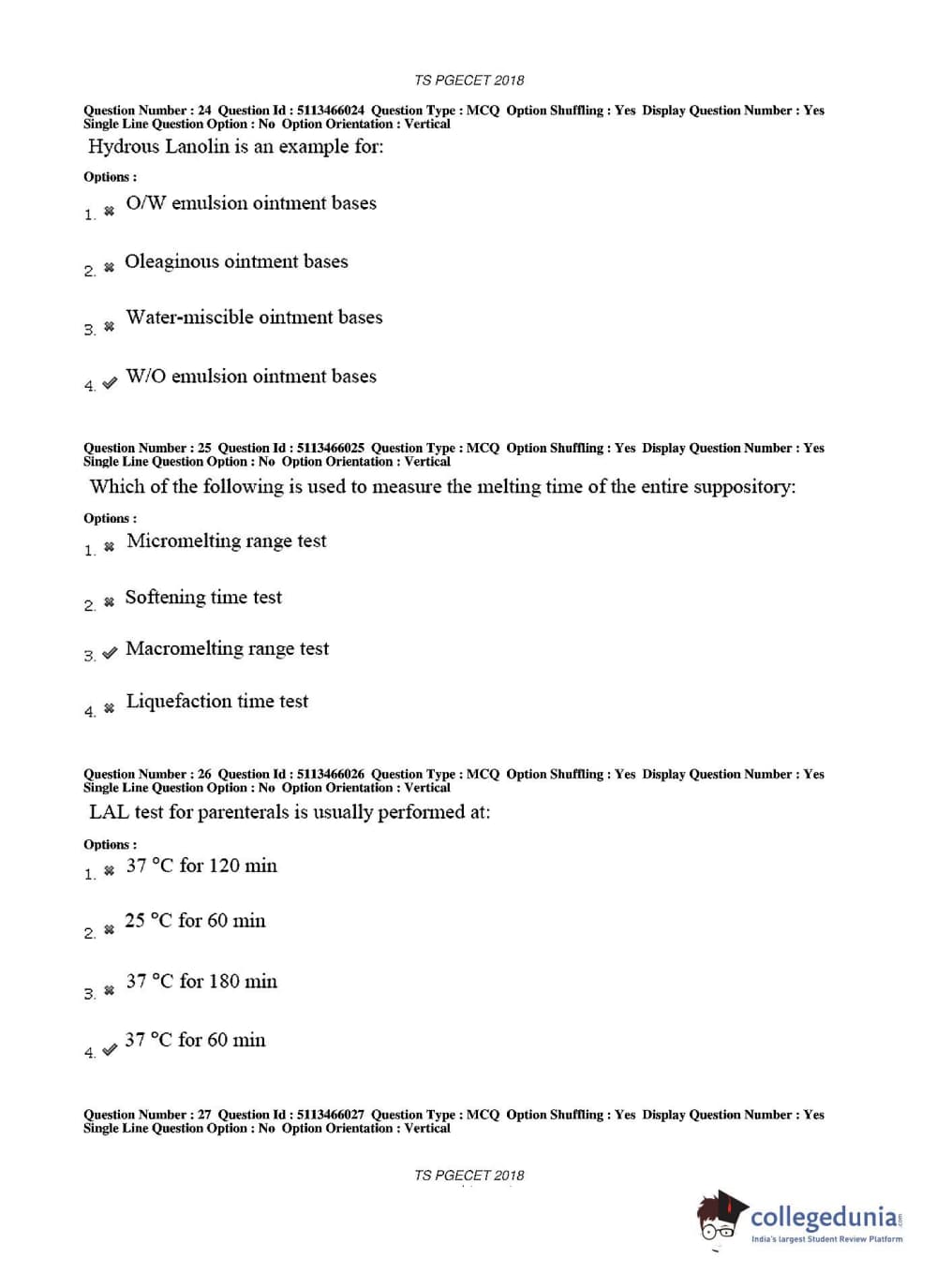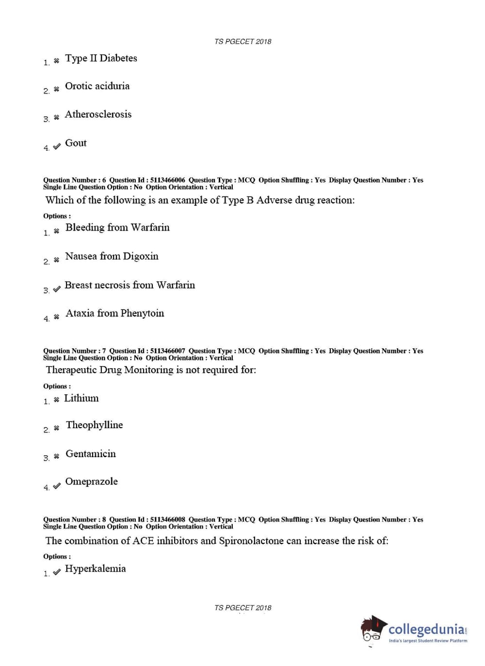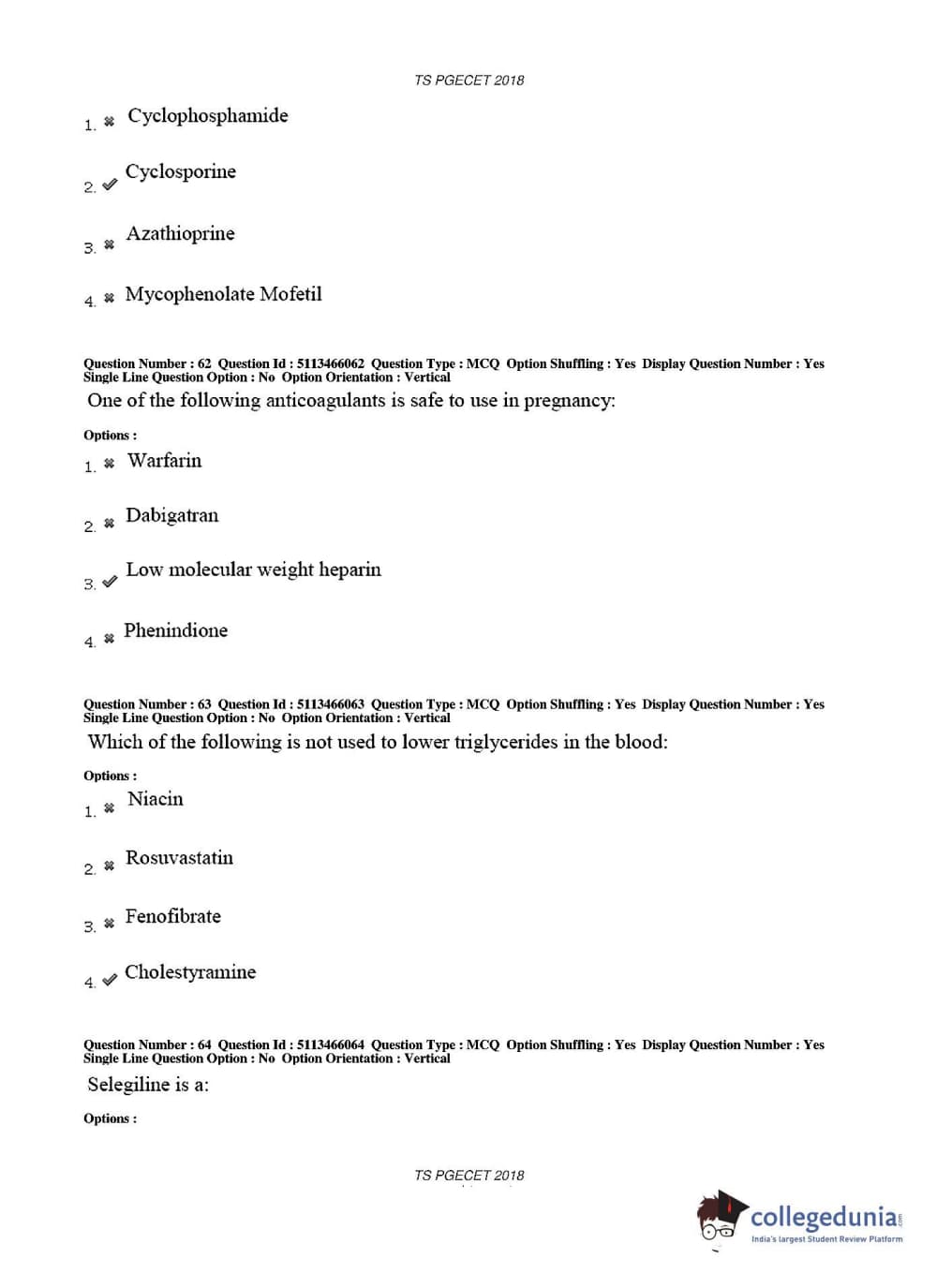 TS PGECET 2018 Pharmacy Question Paper with Answer Key PDFs for Forenoon Session