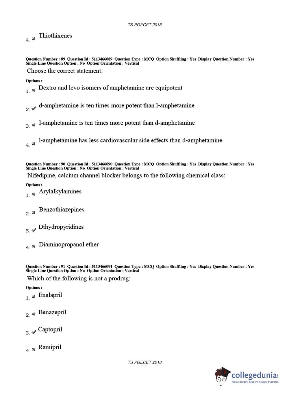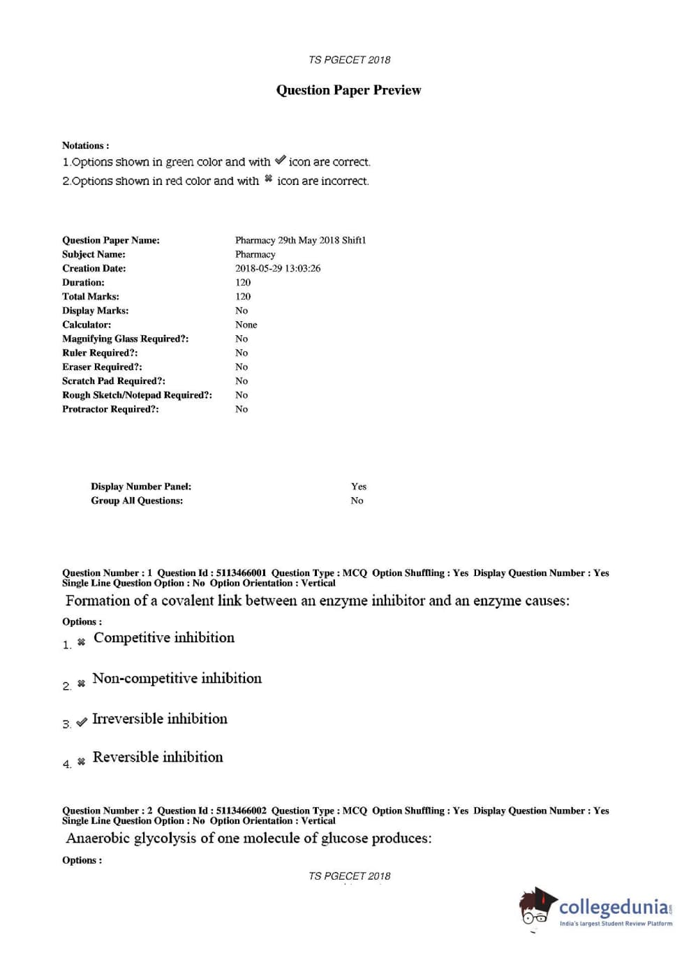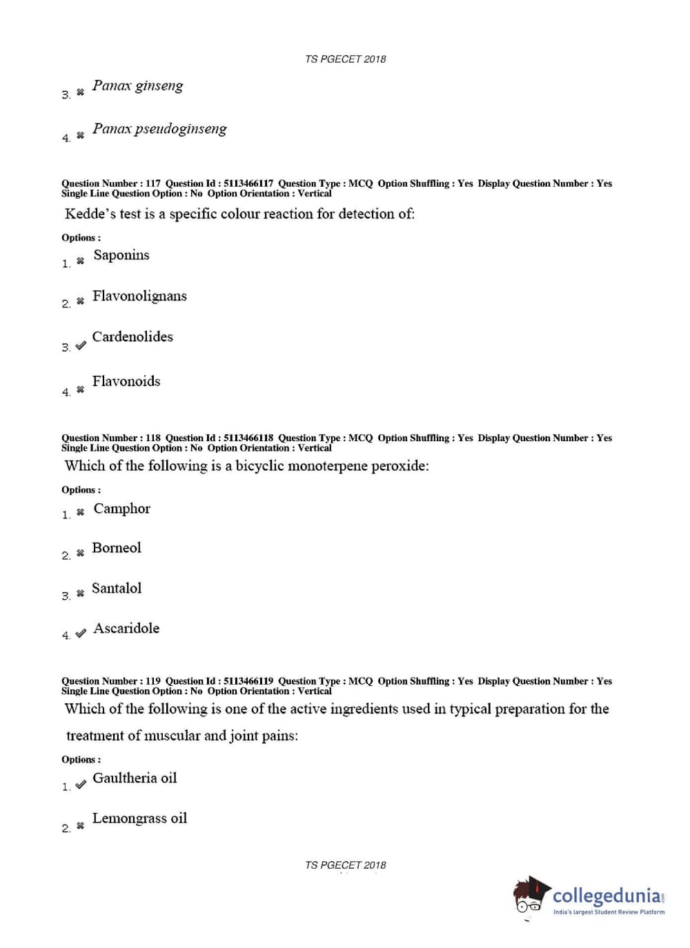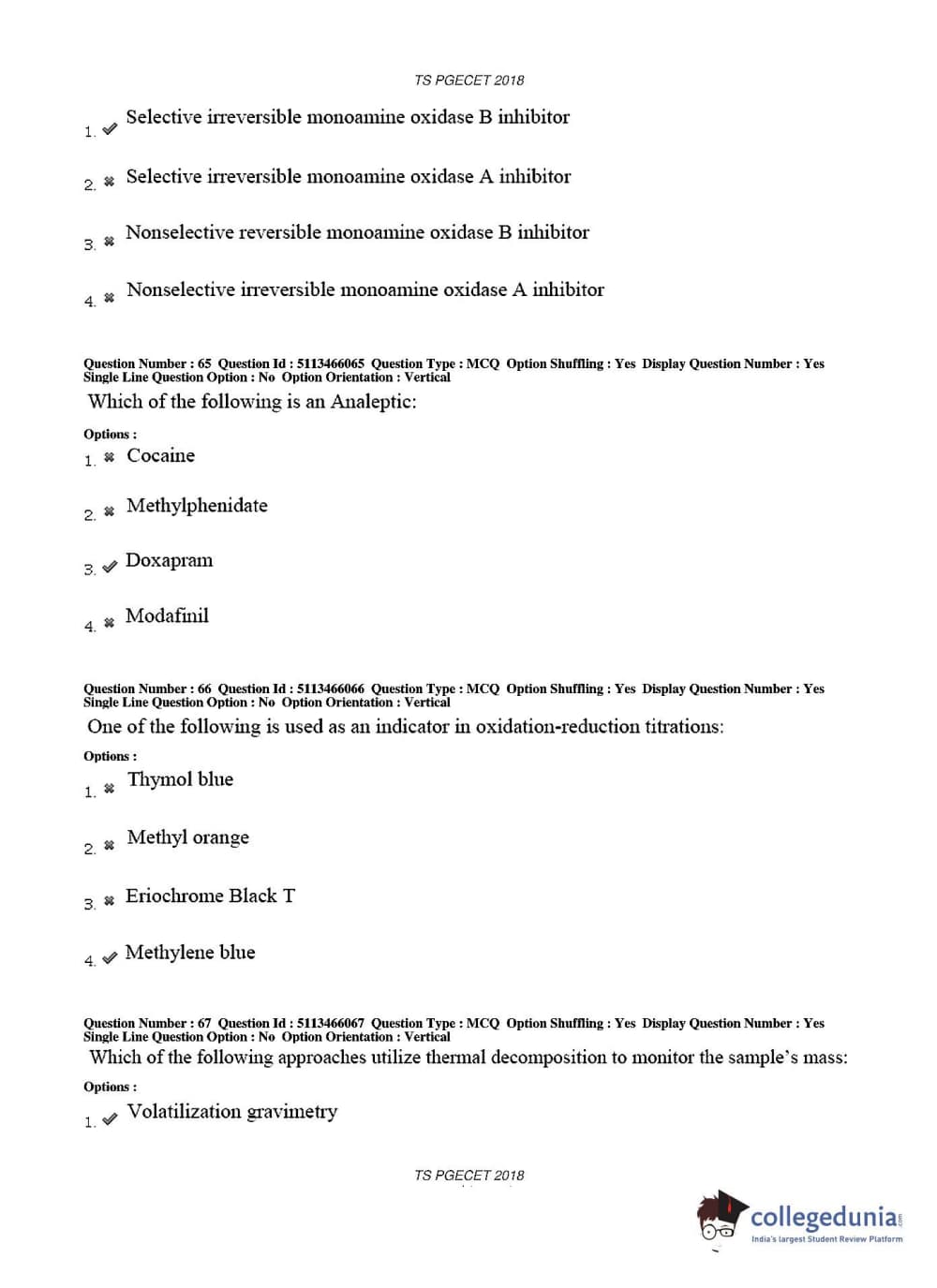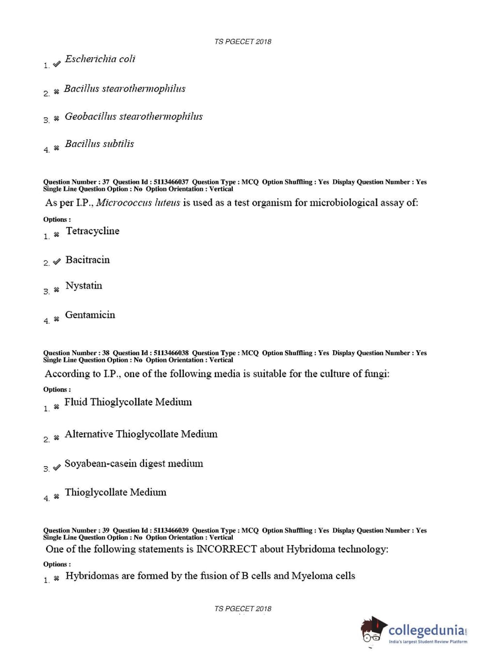 TS PGECET 2018 Pharmacy Question Paper with Answer Key PDFs for Forenoon Session