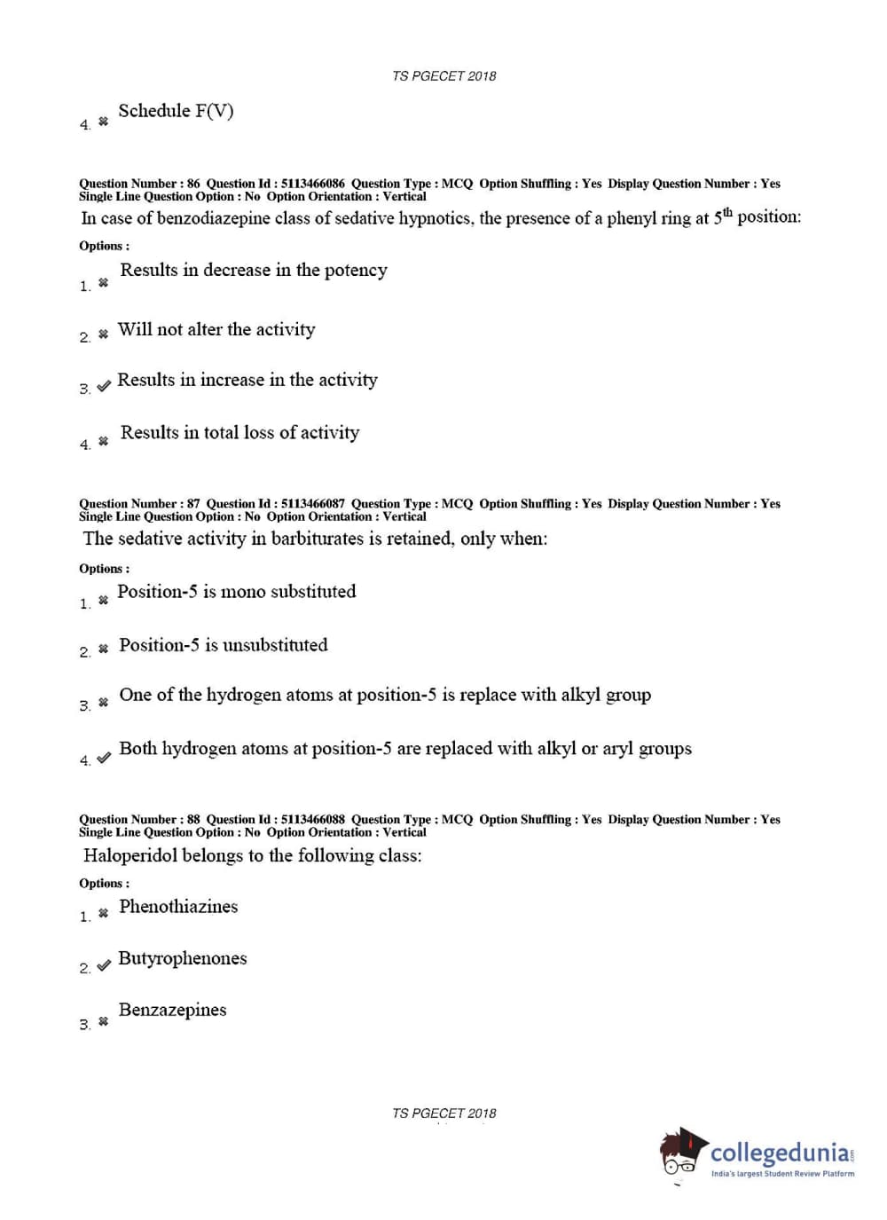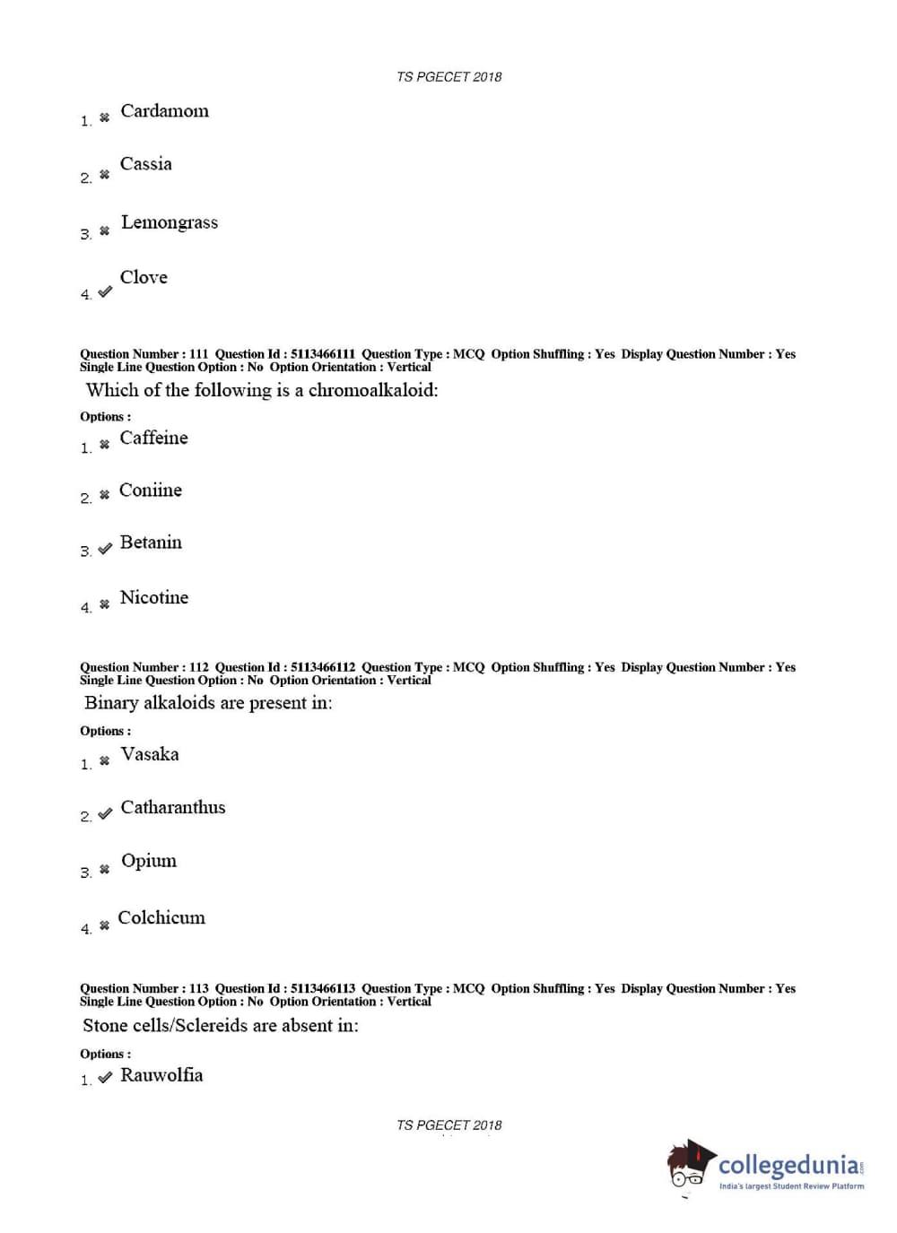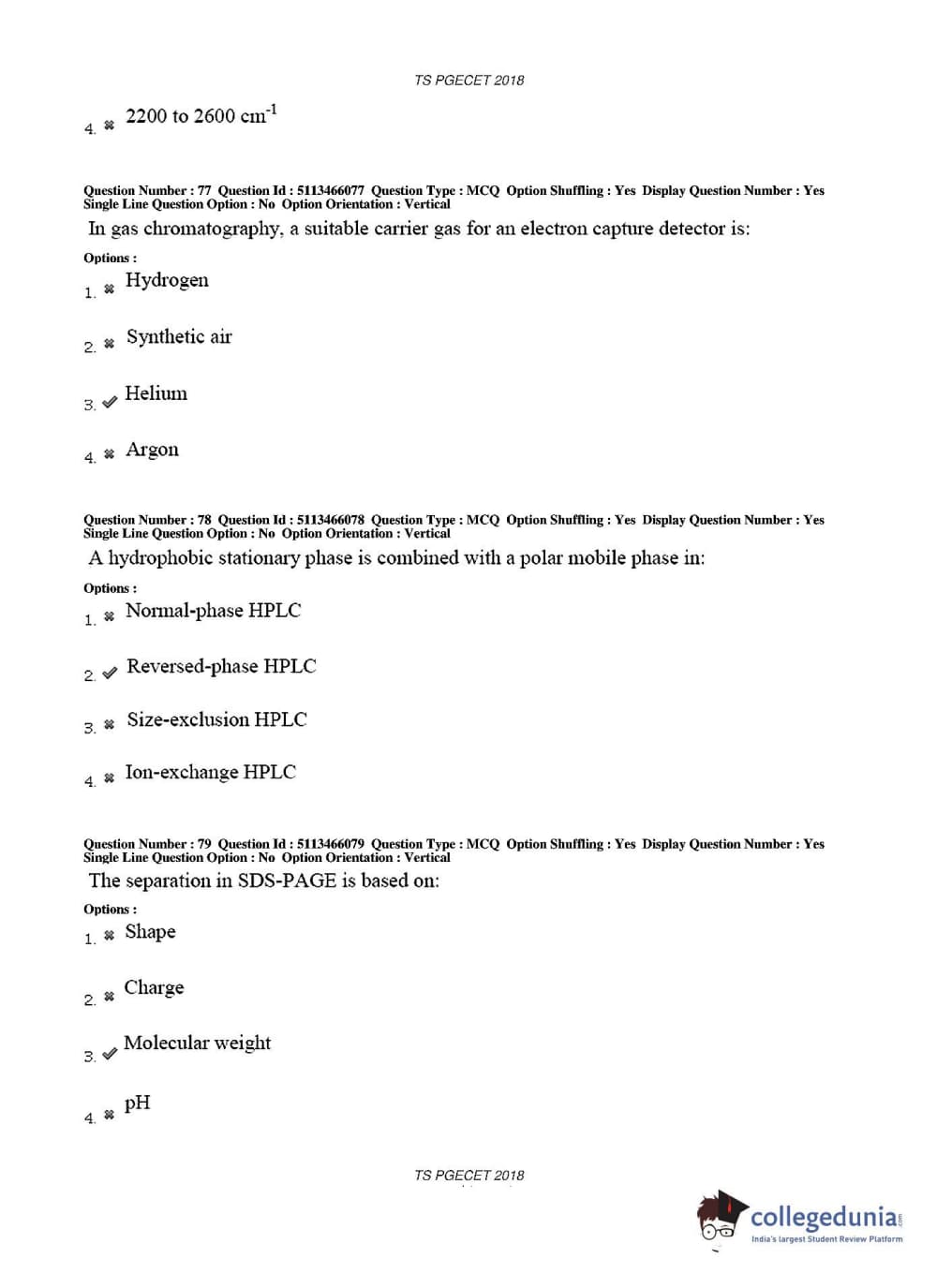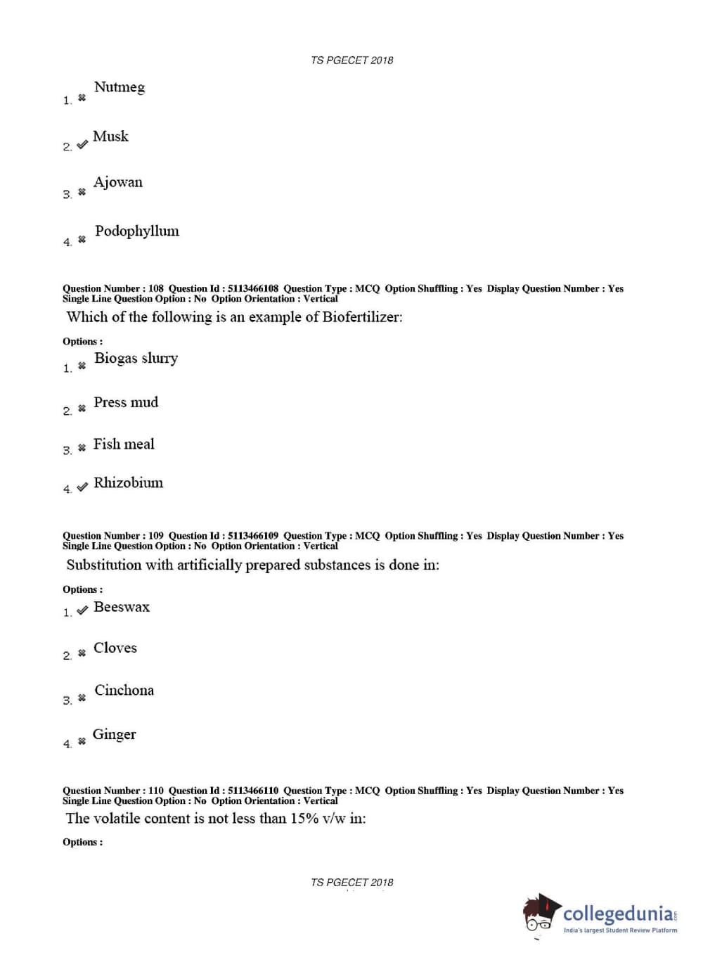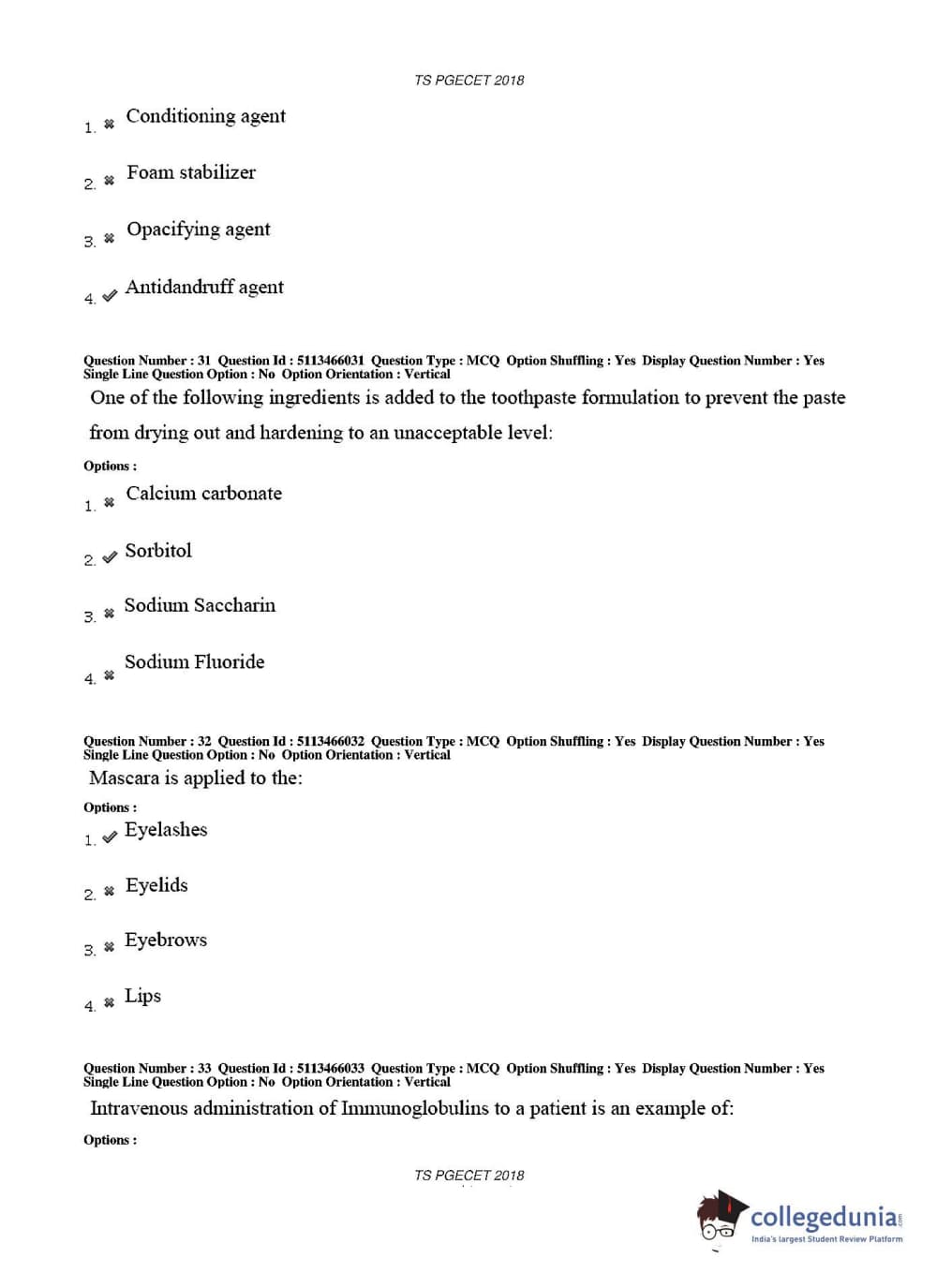 TS PGECET 2018 Pharmacy Question Paper with Answer Key PDFs for Forenoon Session