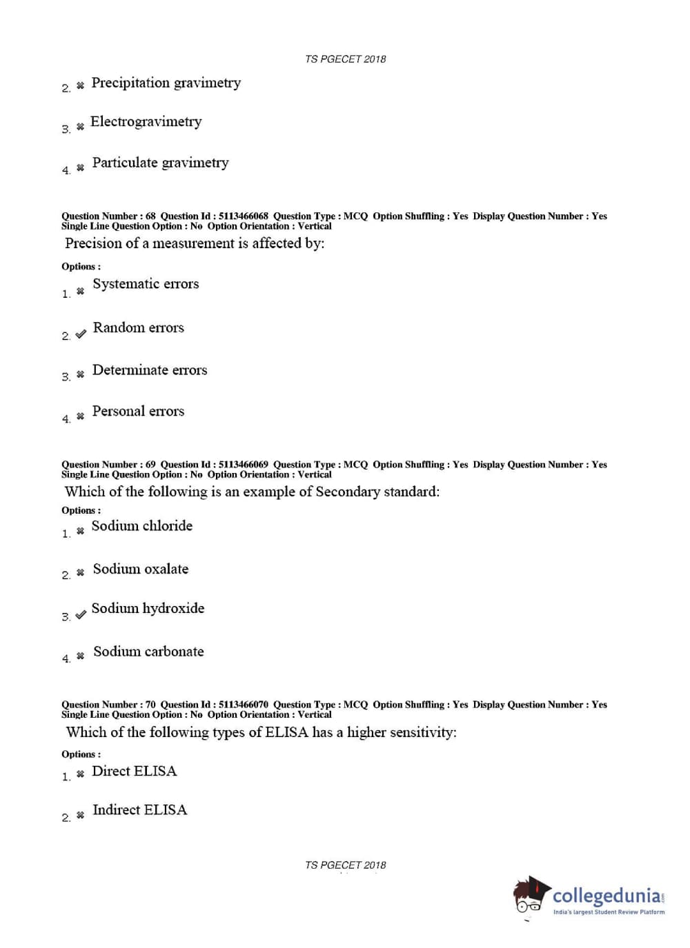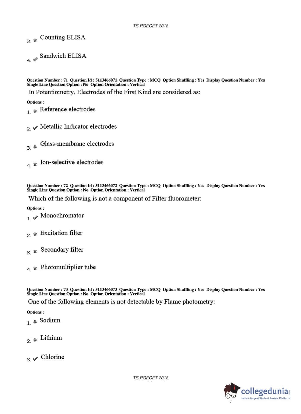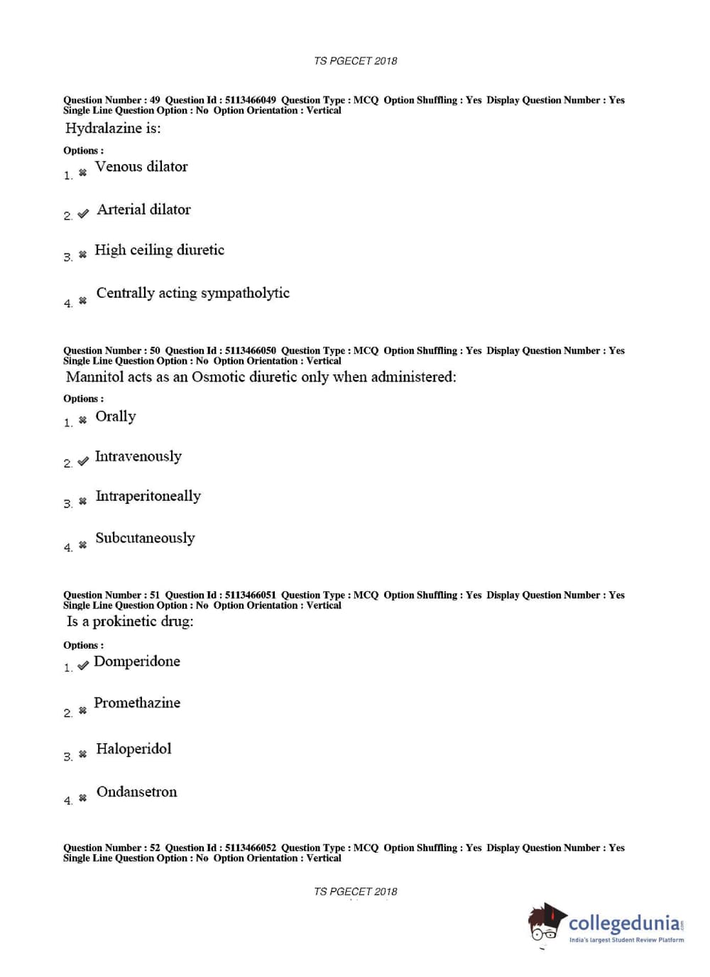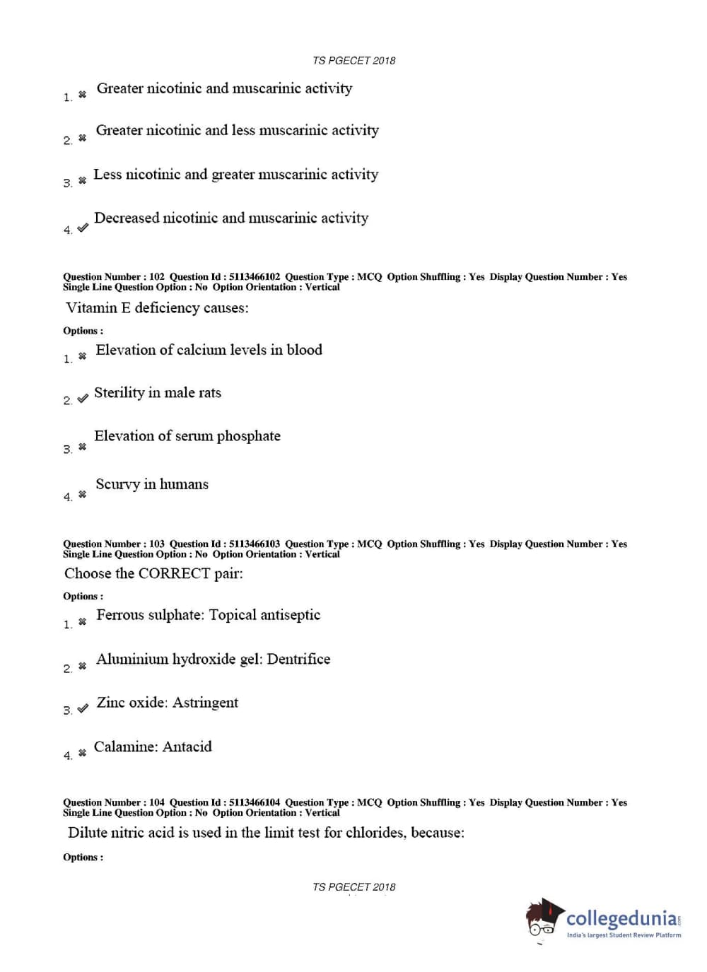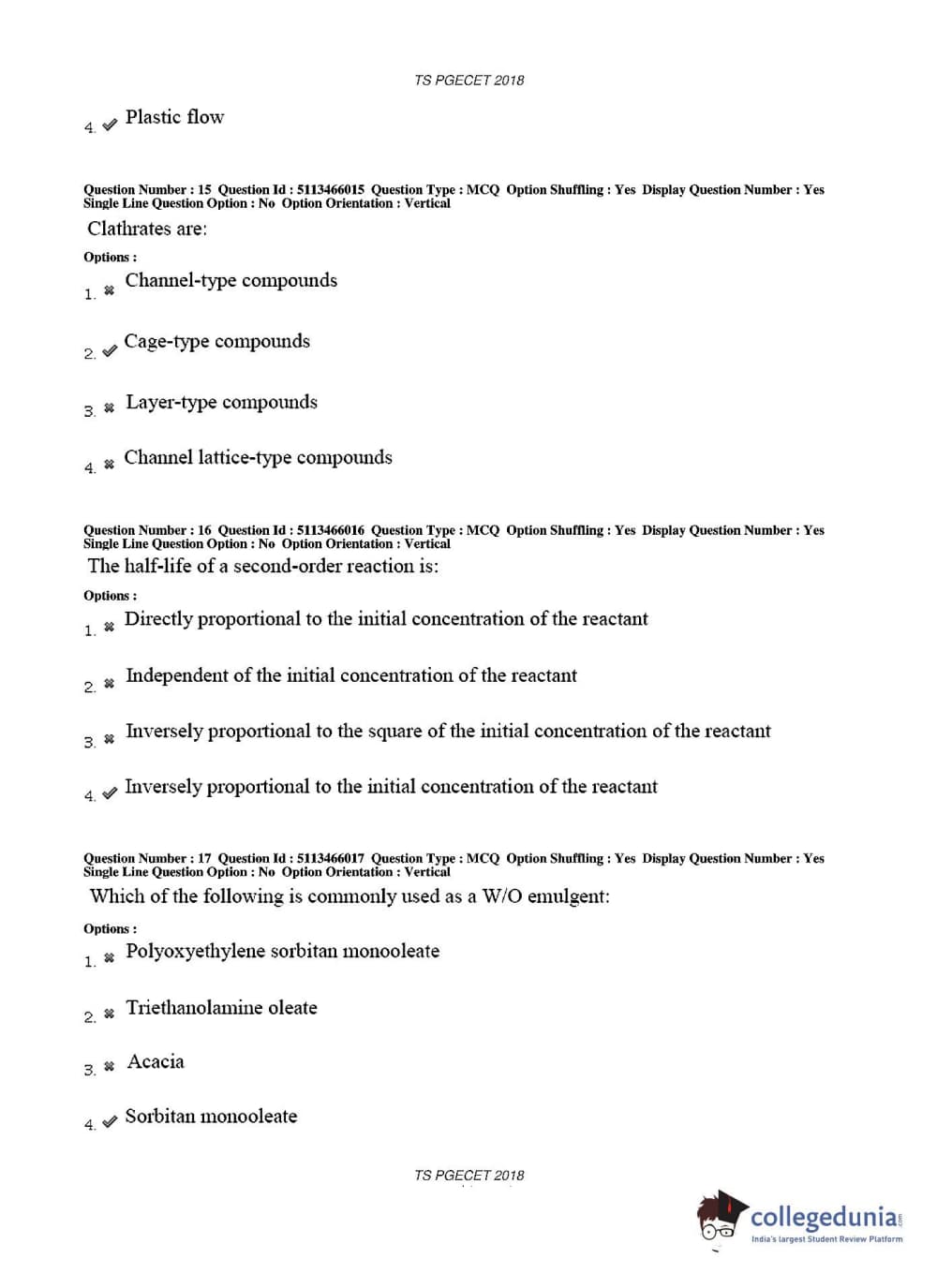 TS PGECET 2018 Pharmacy Question Paper with Answer Key PDFs for Forenoon Session