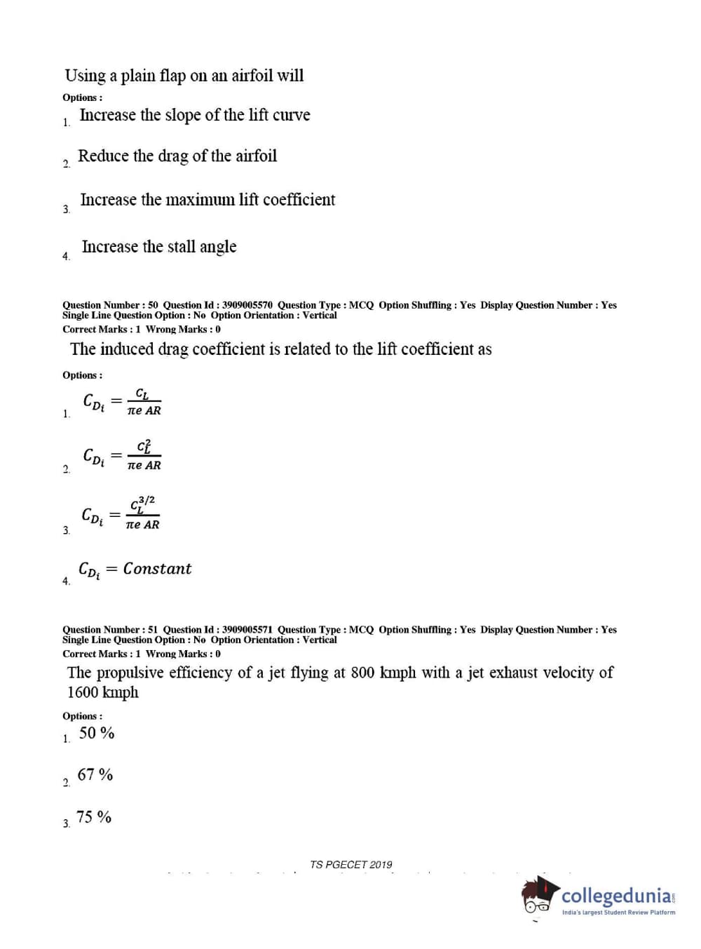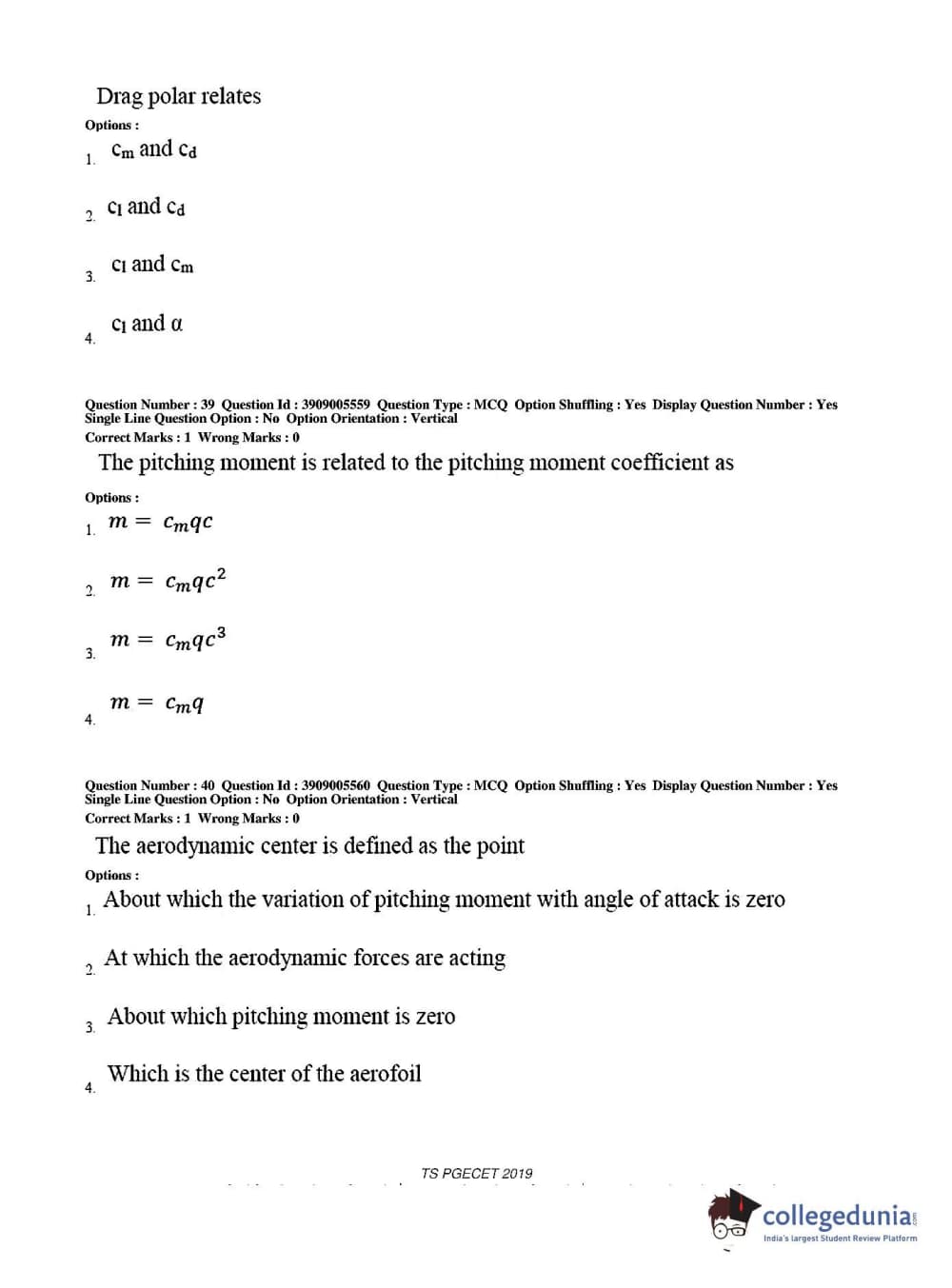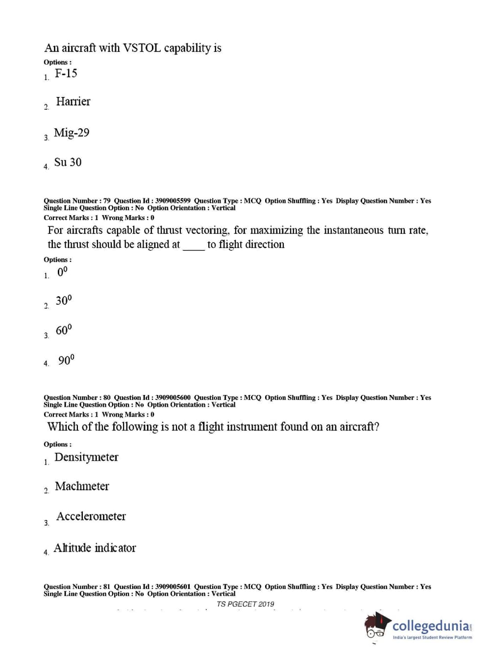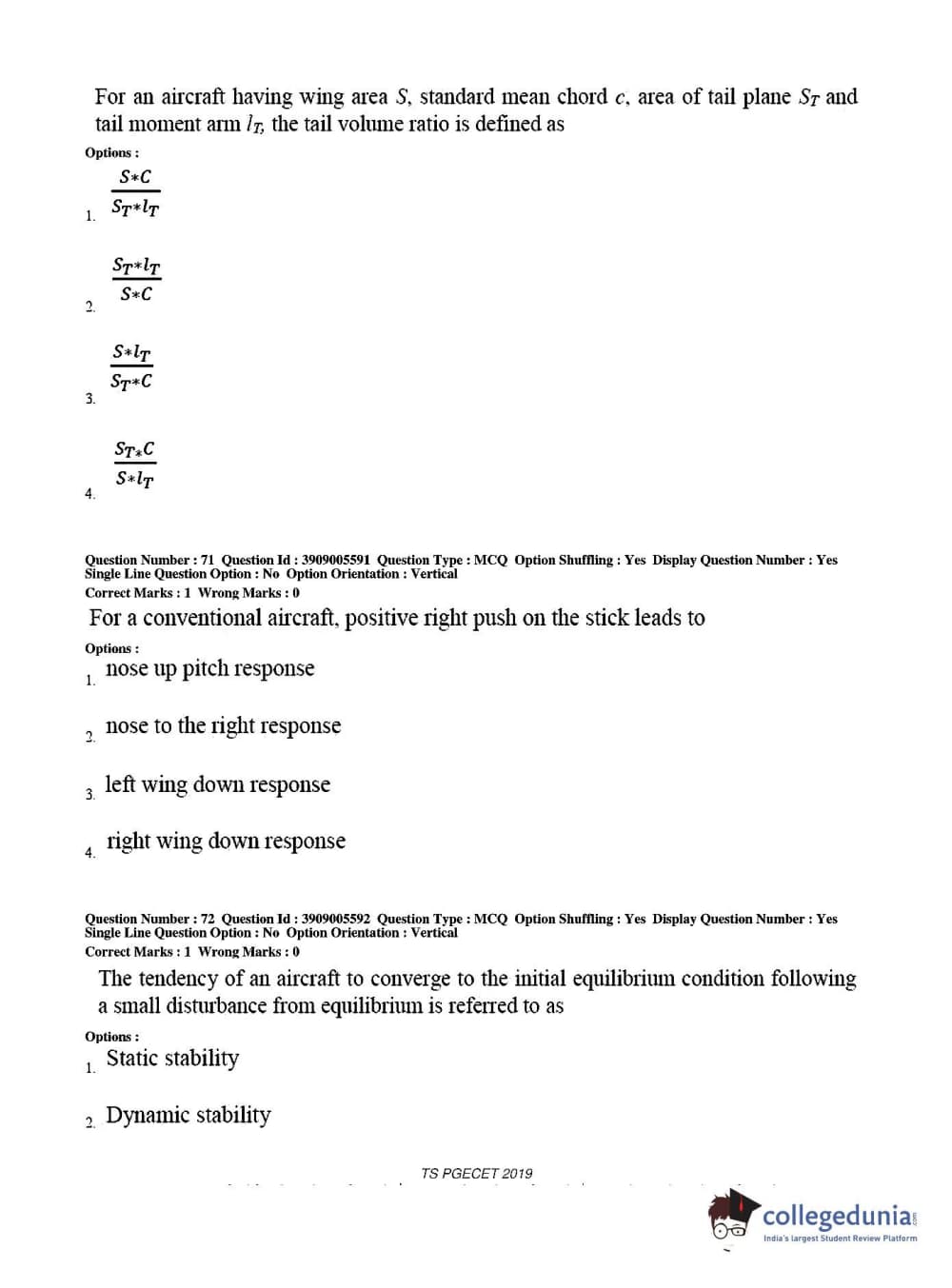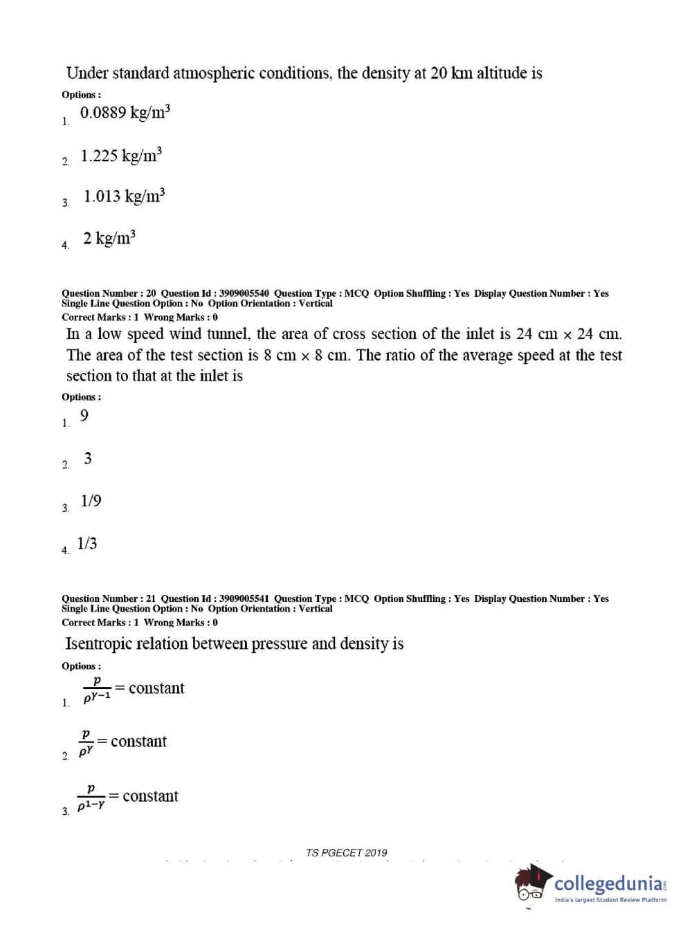 TS PGECET 2019 Aerospace Engineering Question Paper with Answer Key PDF for Afternoon Session