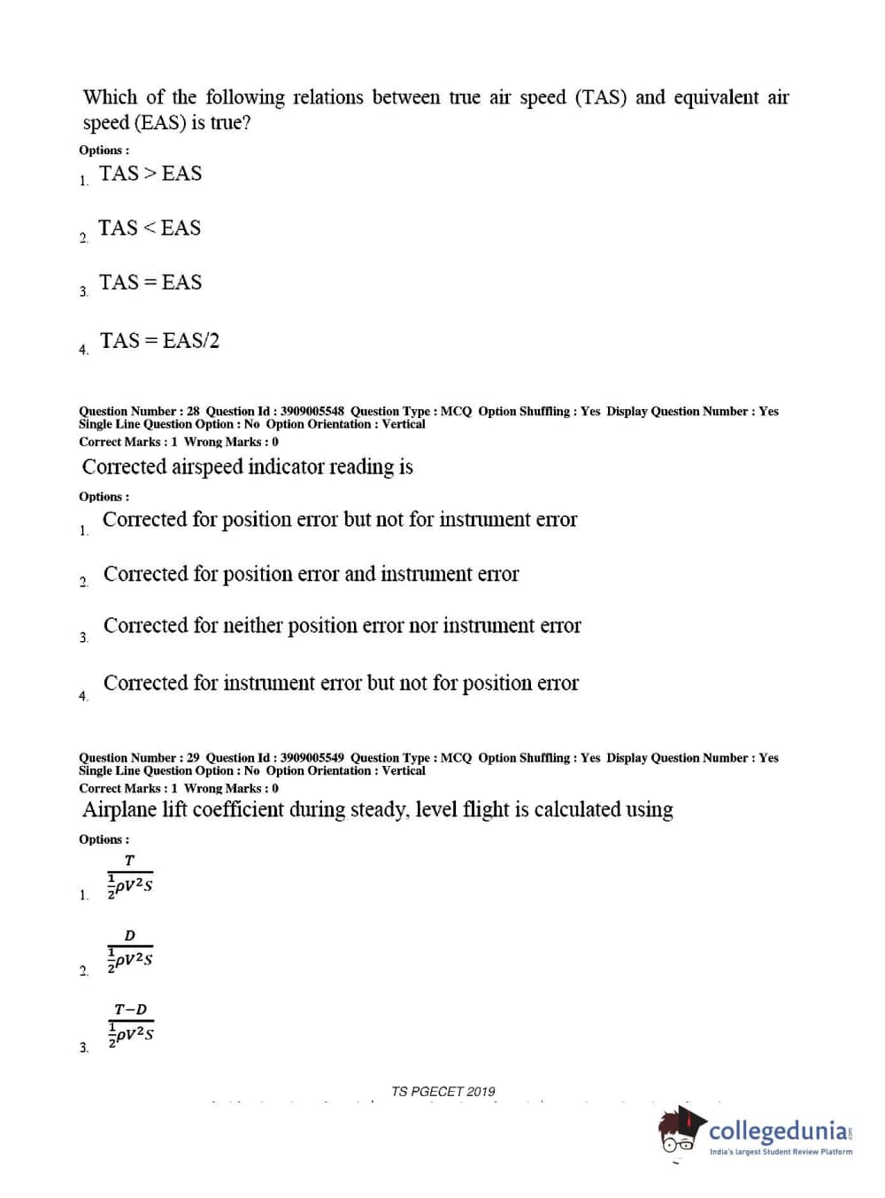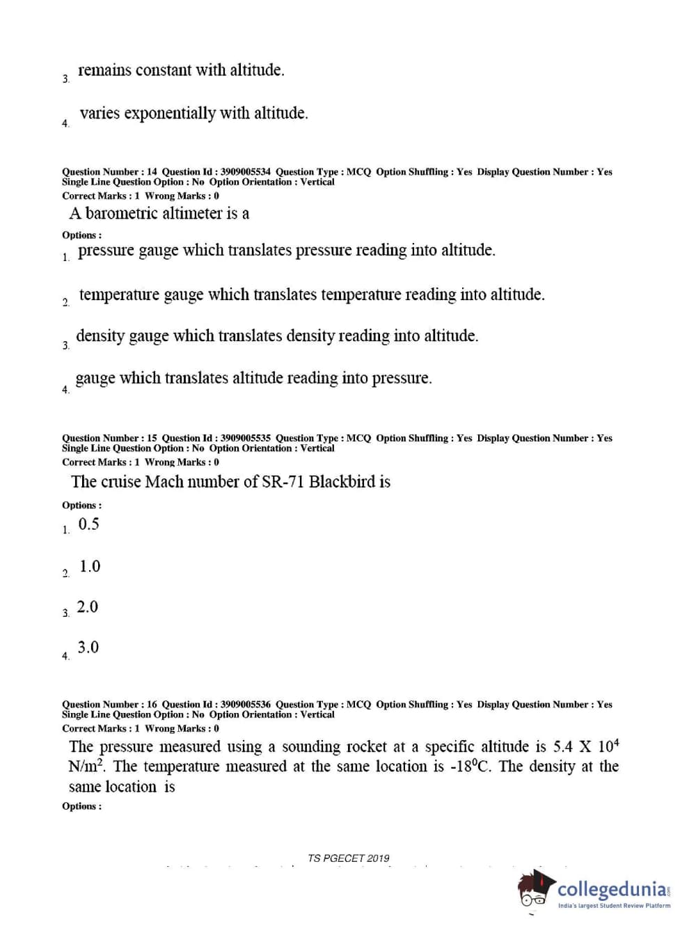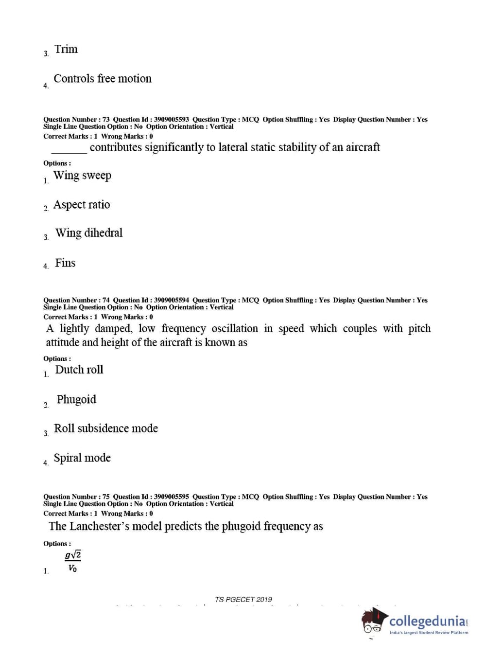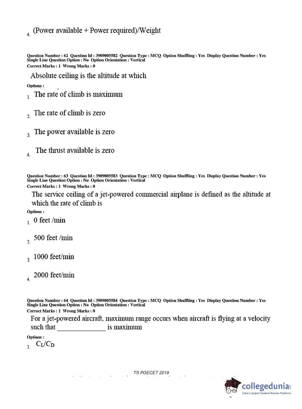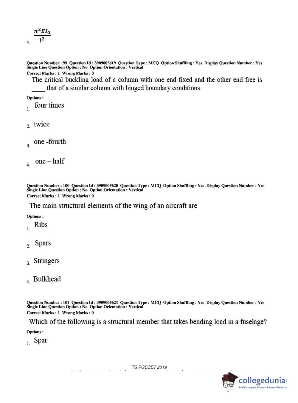 TS PGECET 2019 Aerospace Engineering Question Paper with Answer Key PDF for Afternoon Session