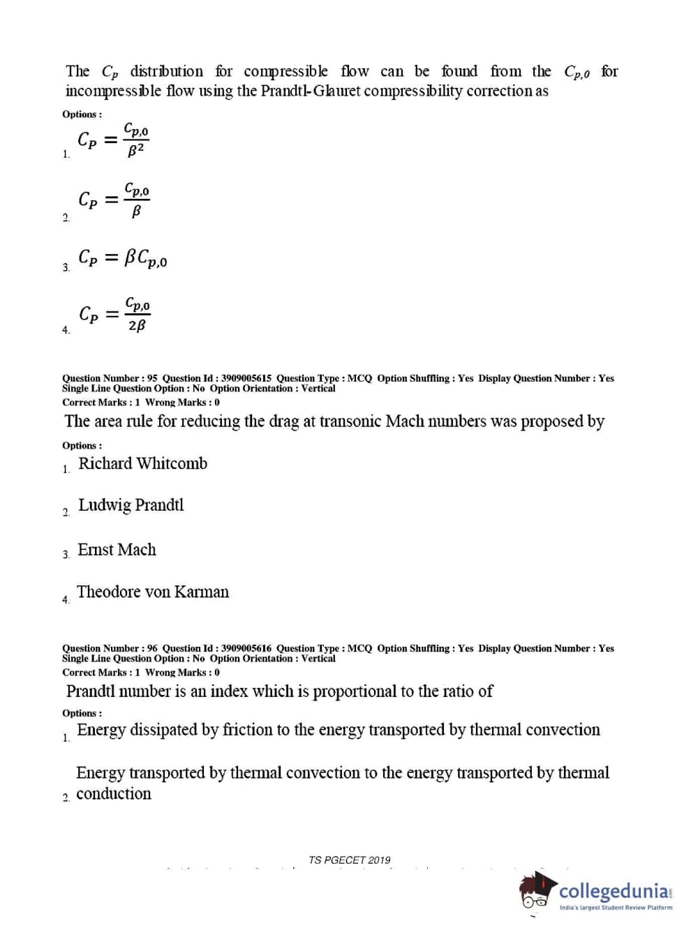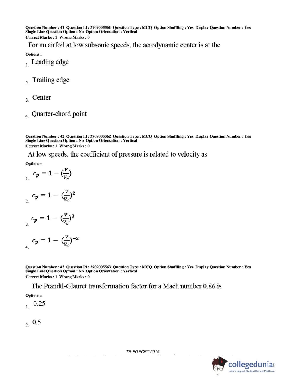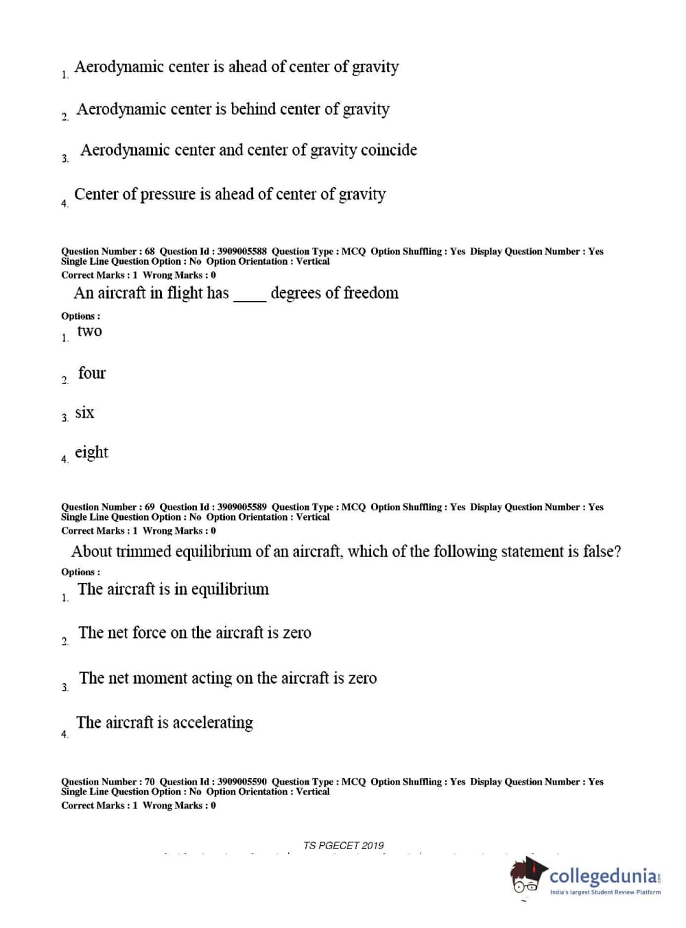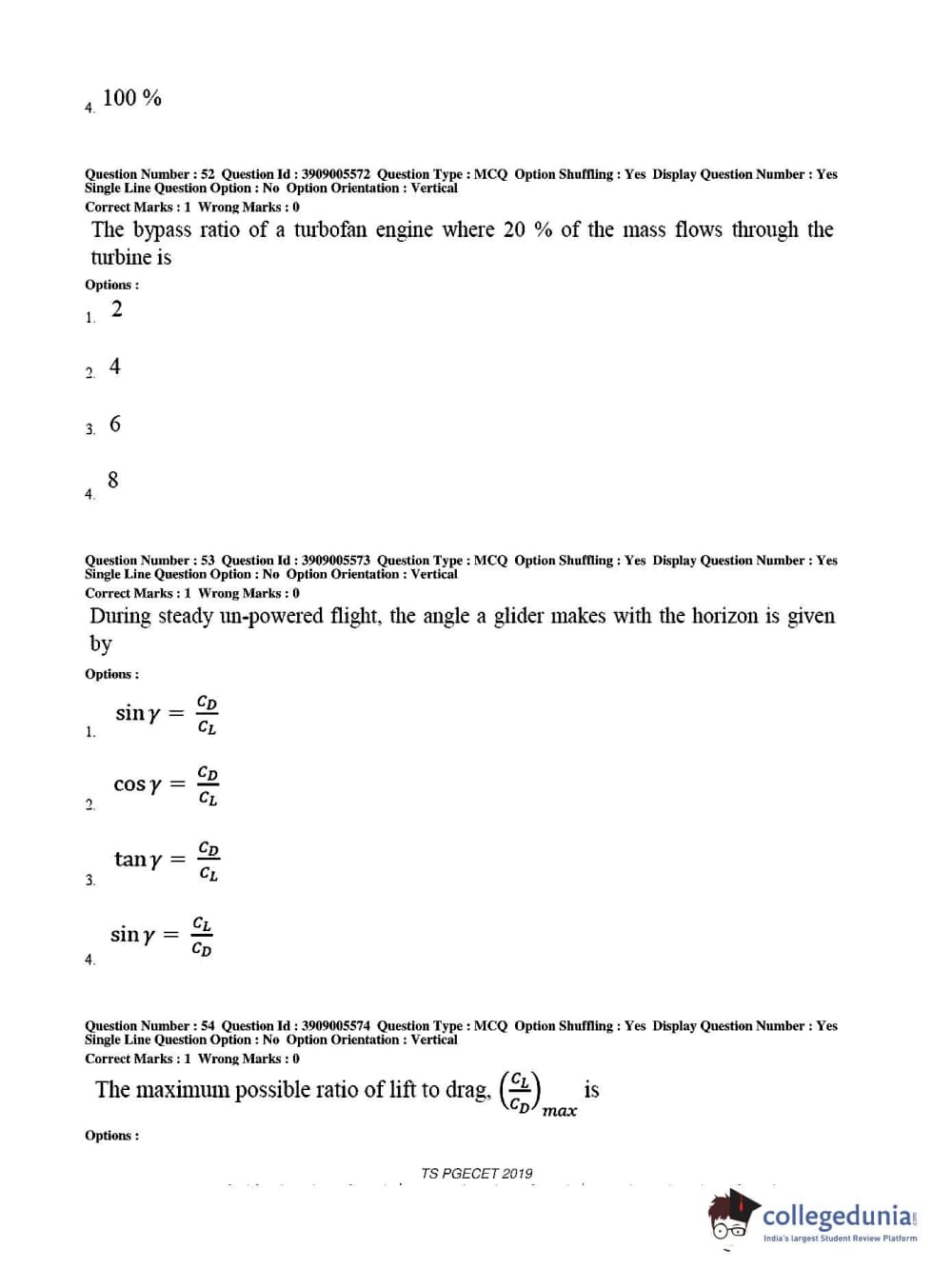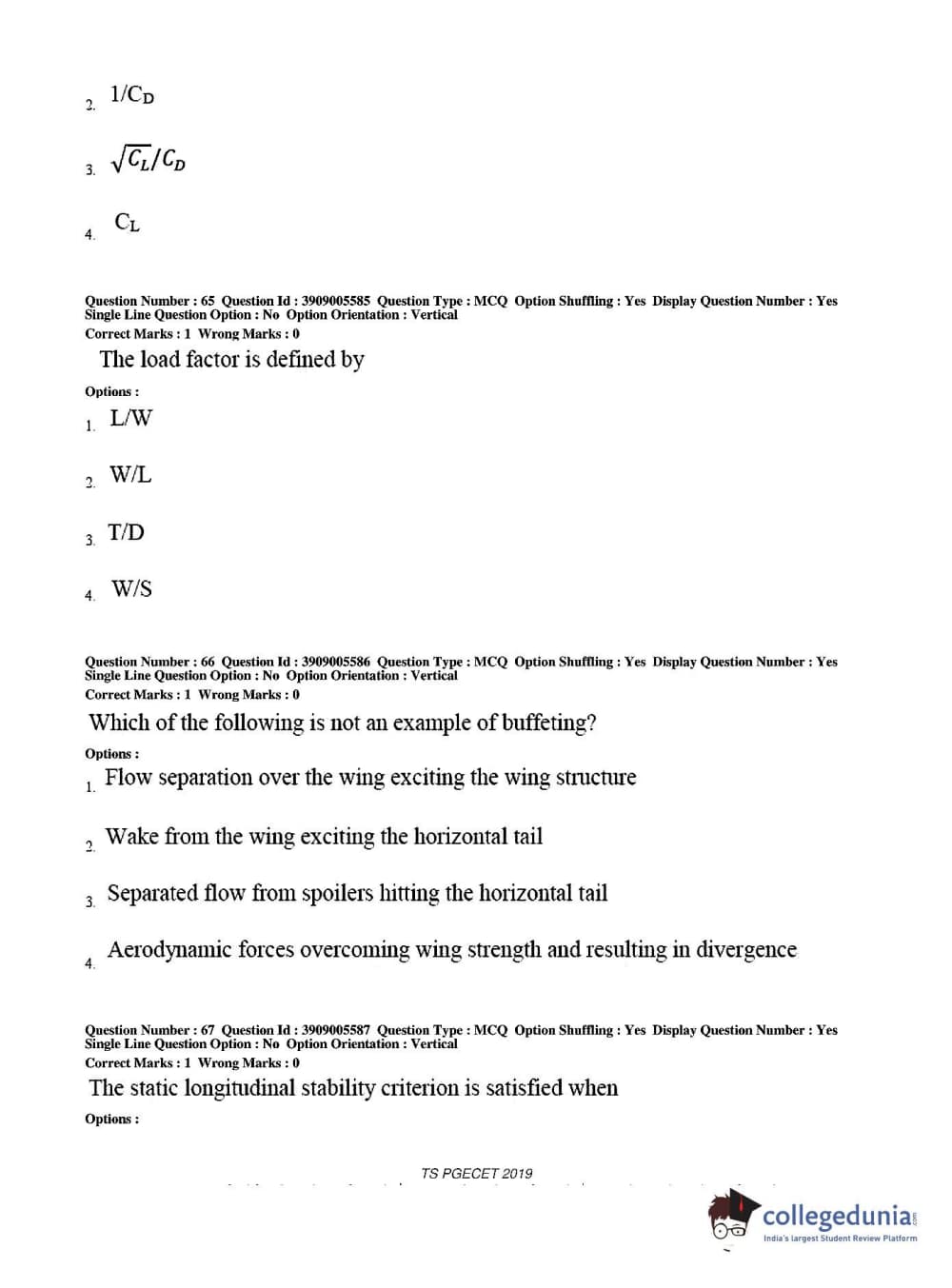 TS PGECET 2019 Aerospace Engineering Question Paper with Answer Key PDF for Afternoon Session