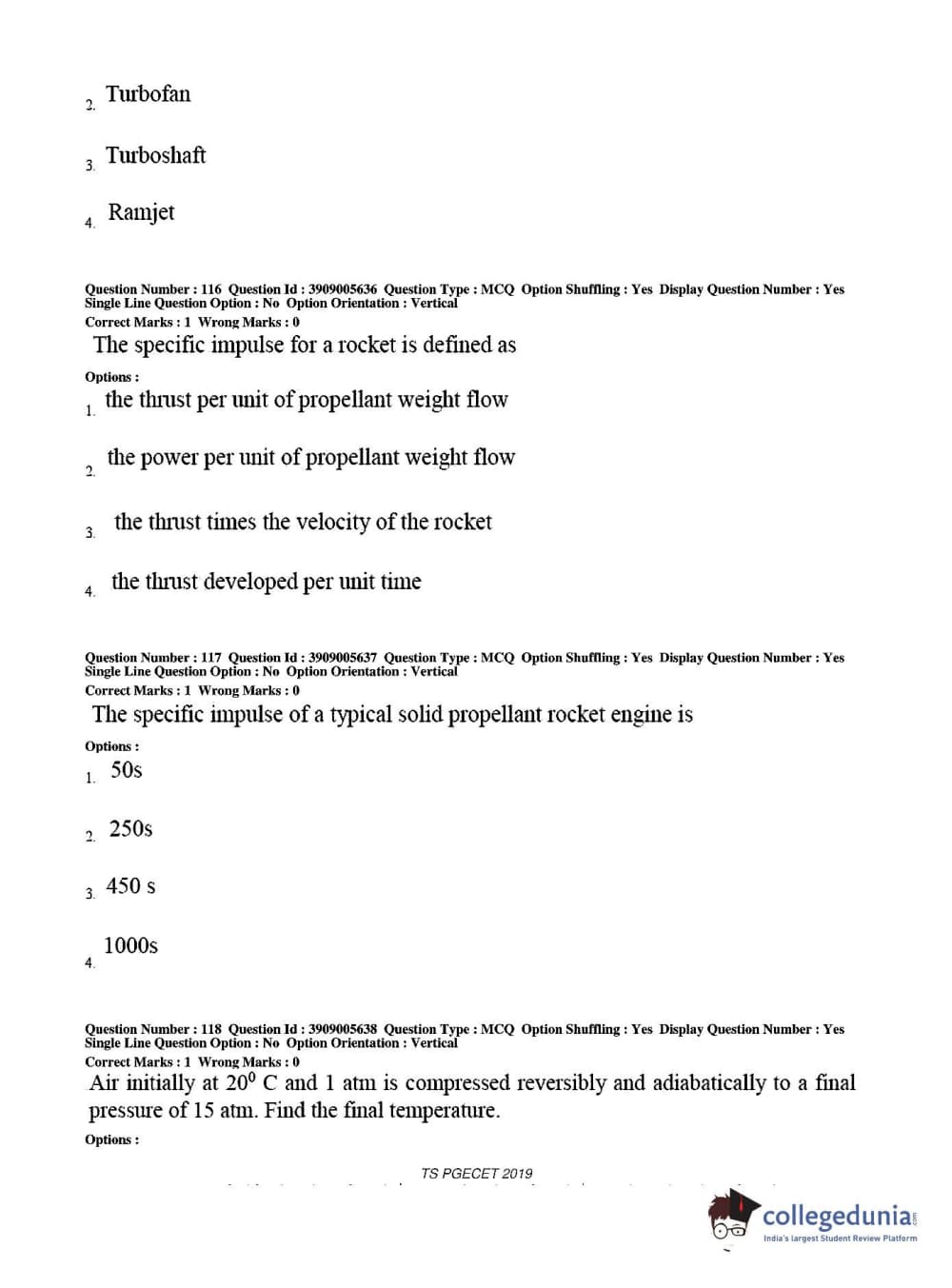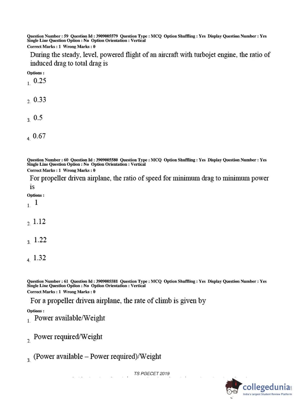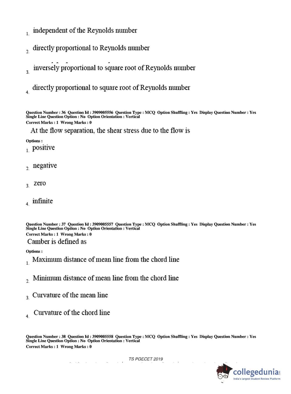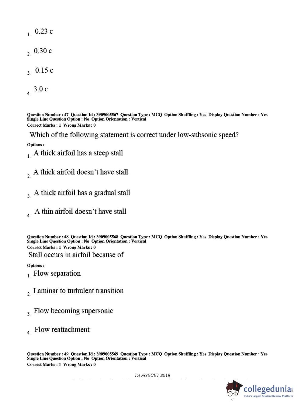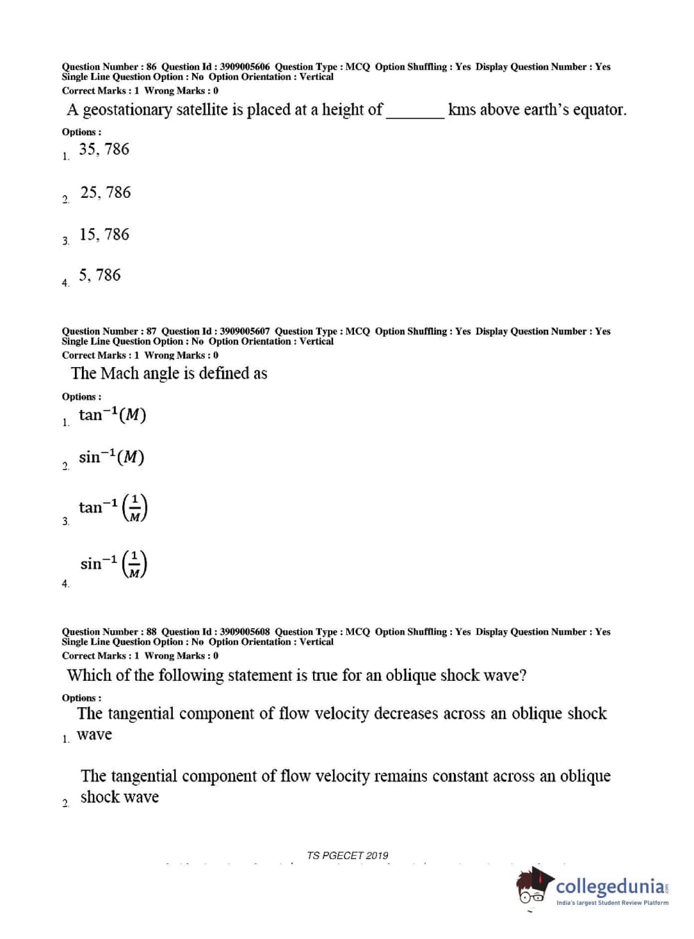 TS PGECET 2019 Aerospace Engineering Question Paper with Answer Key PDF for Afternoon Session