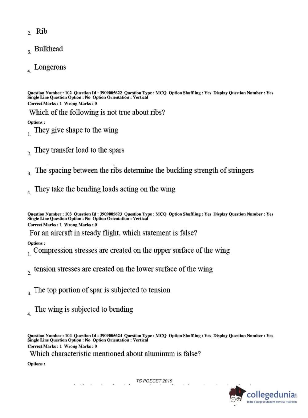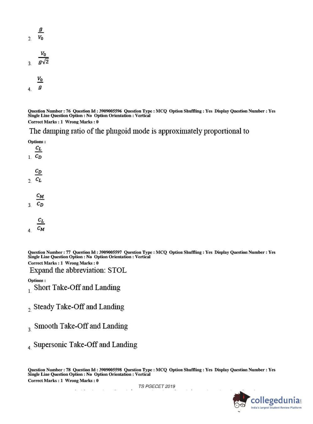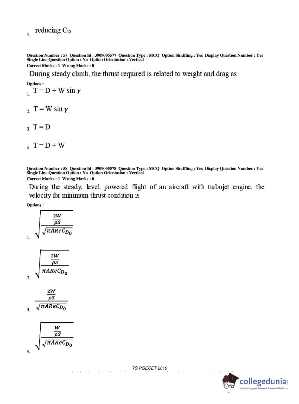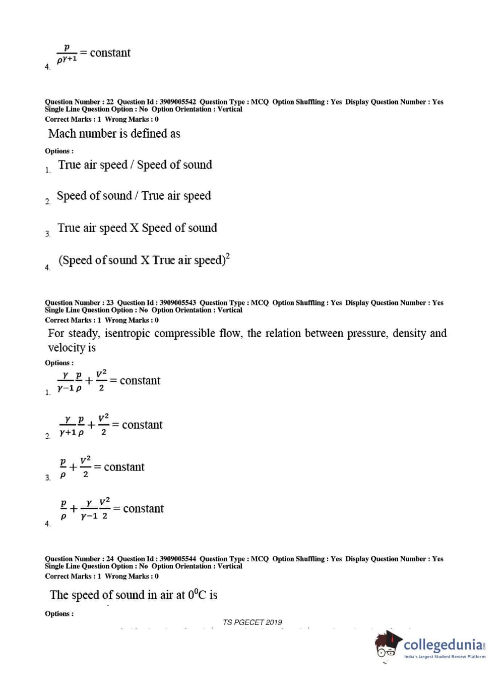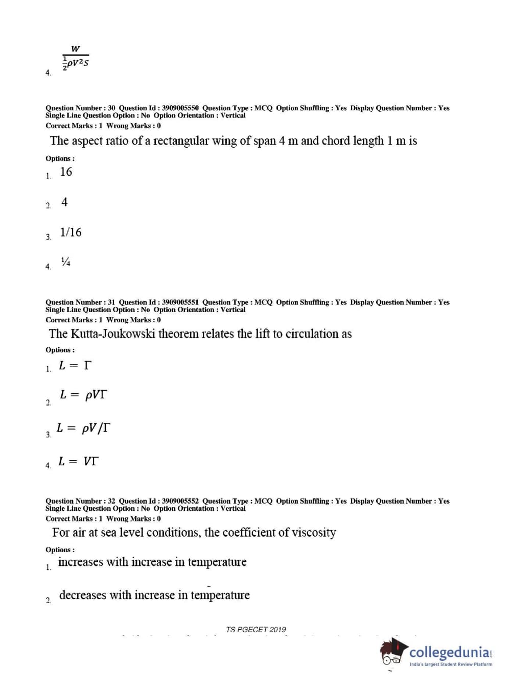 TS PGECET 2019 Aerospace Engineering Question Paper with Answer Key PDF for Afternoon Session