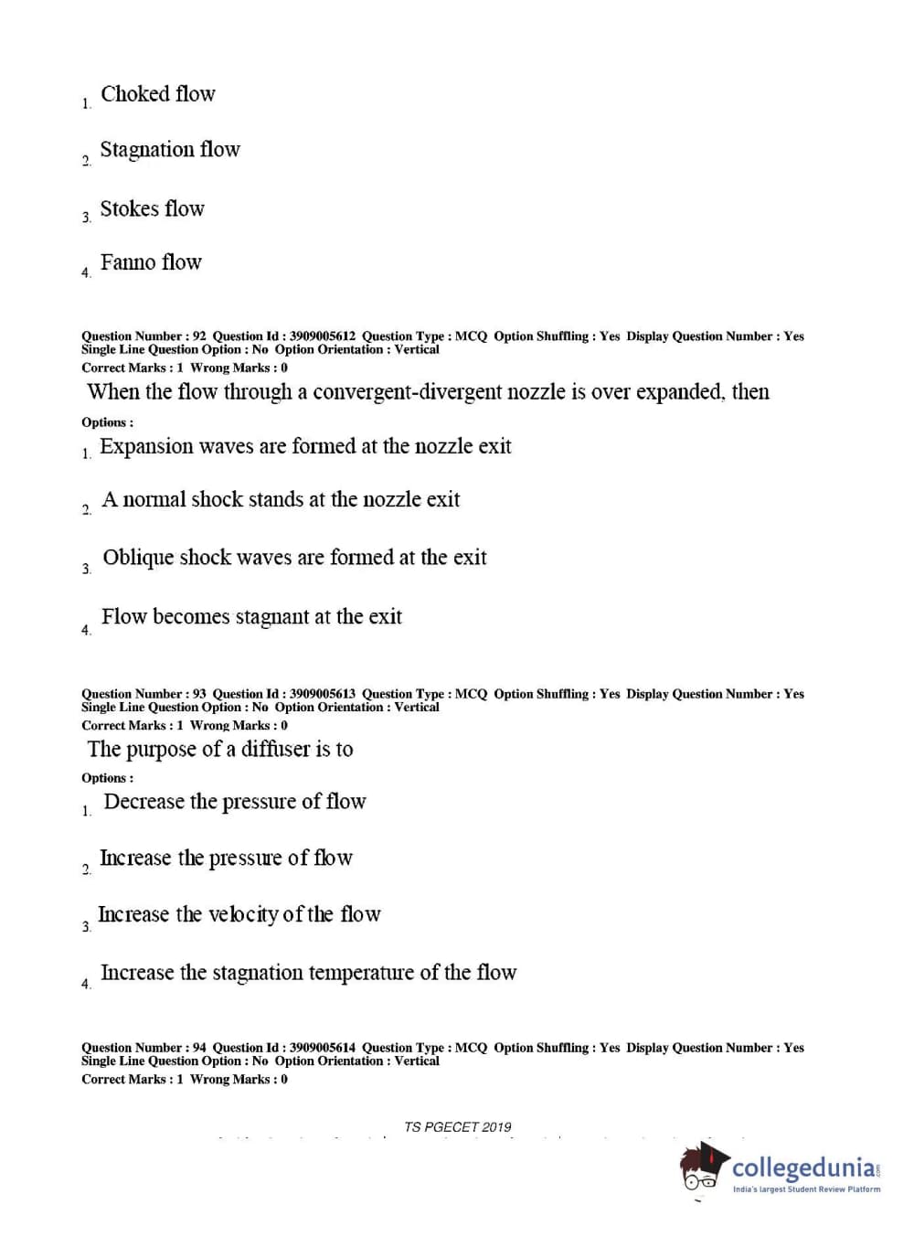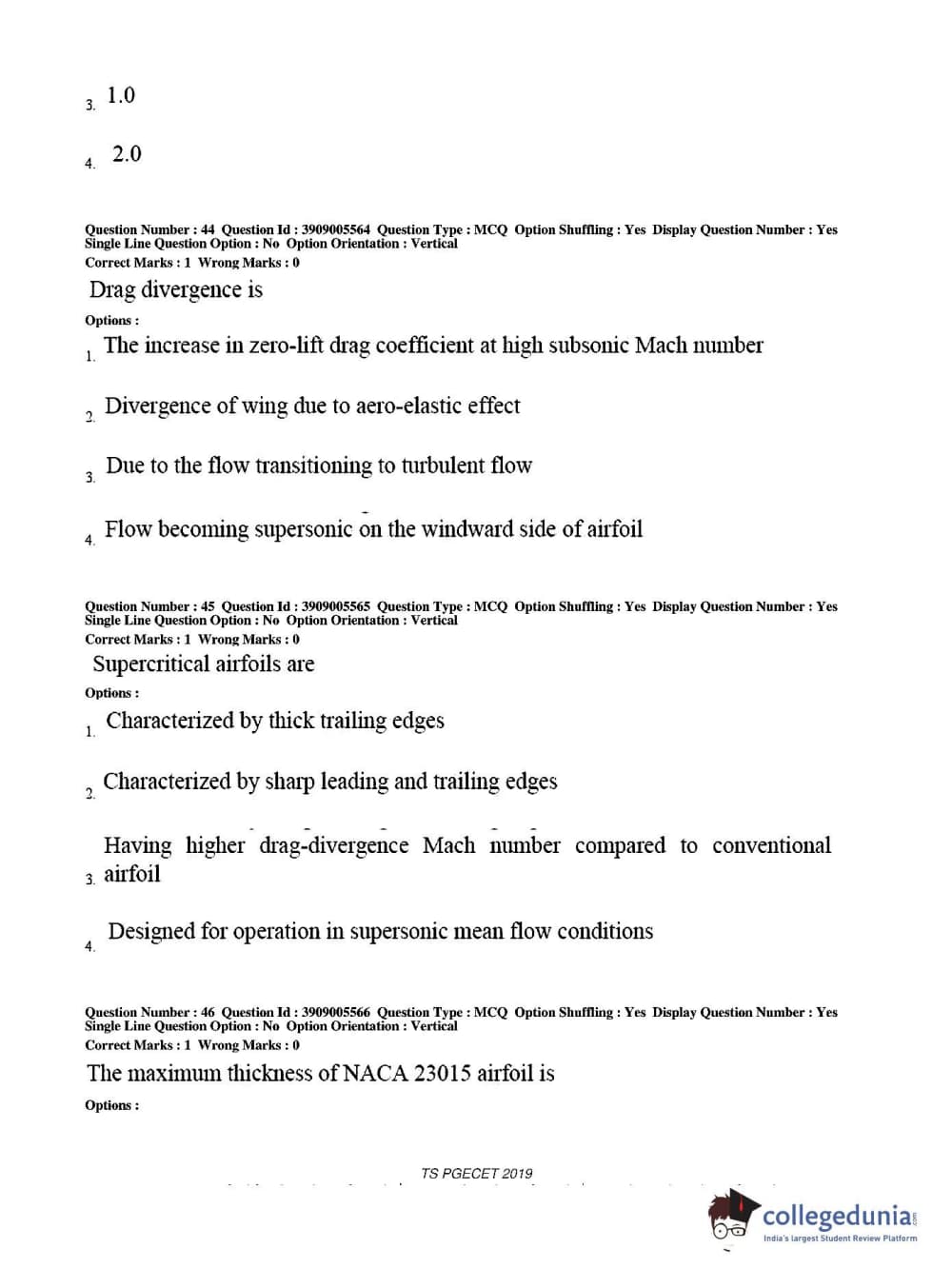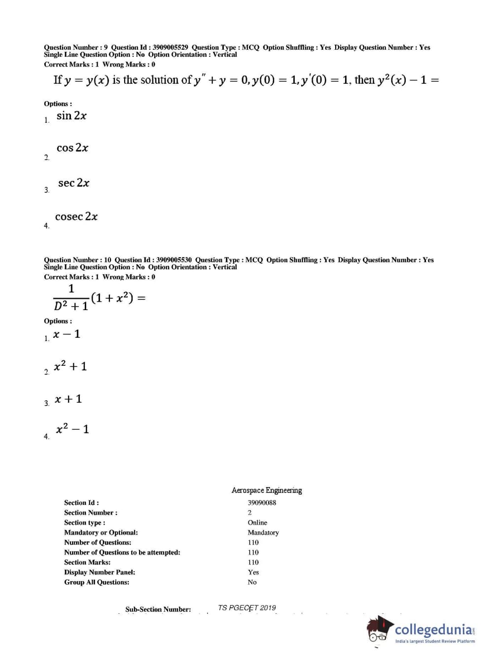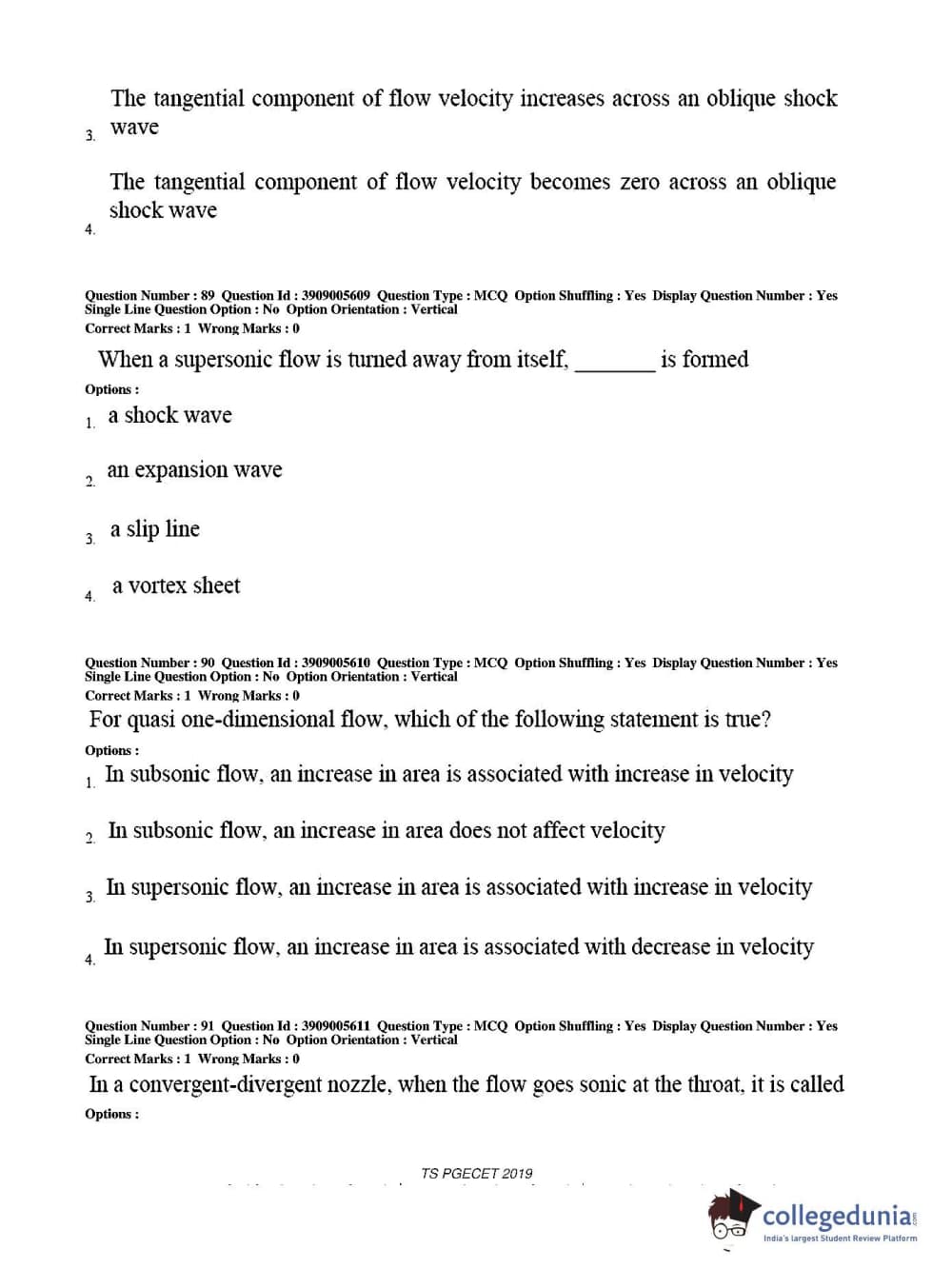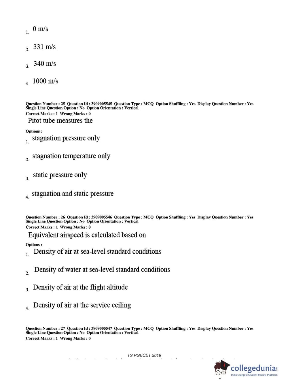 TS PGECET 2019 Aerospace Engineering Question Paper with Answer Key PDF for Afternoon Session