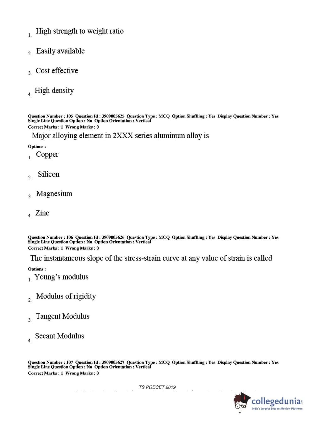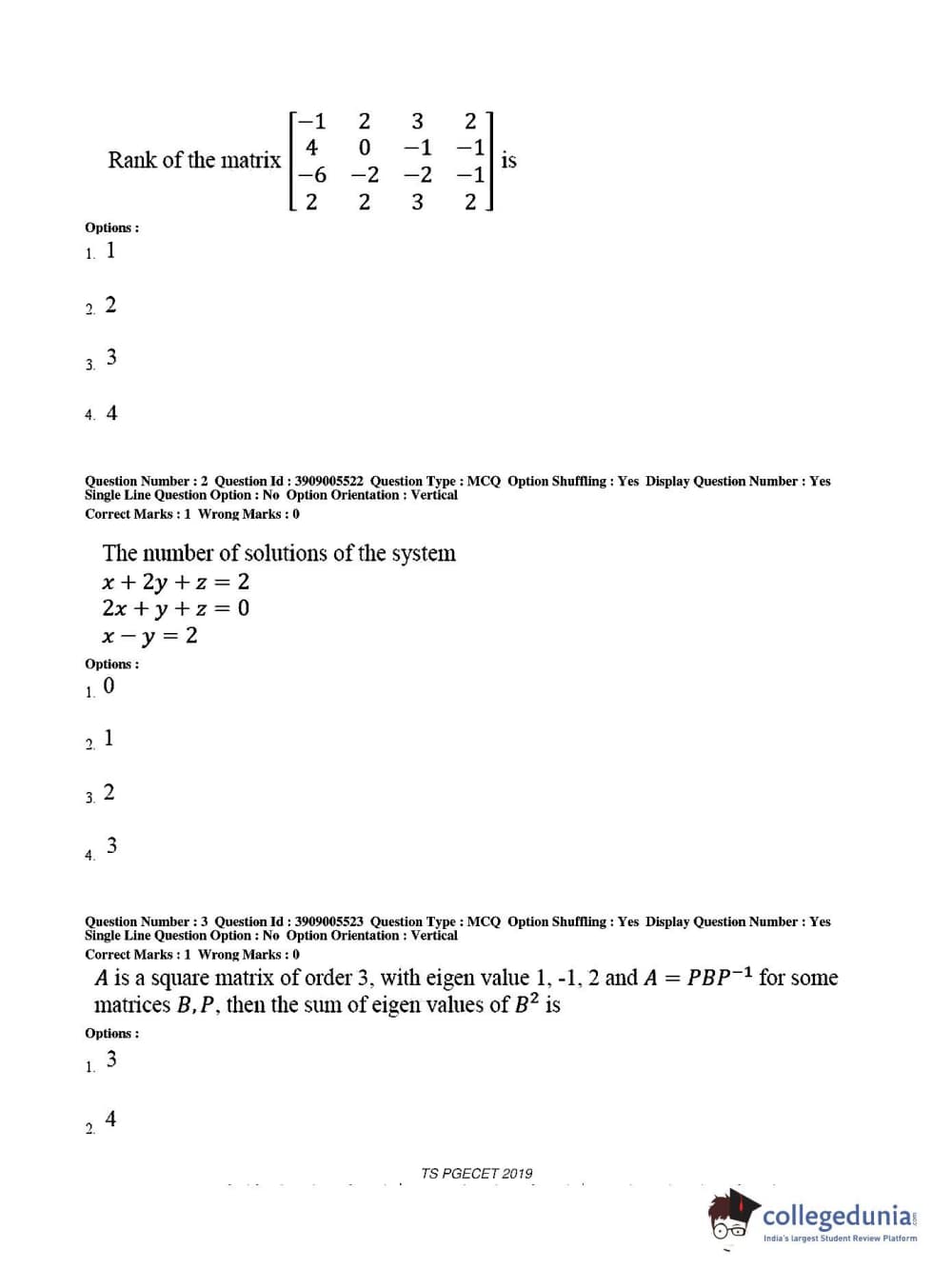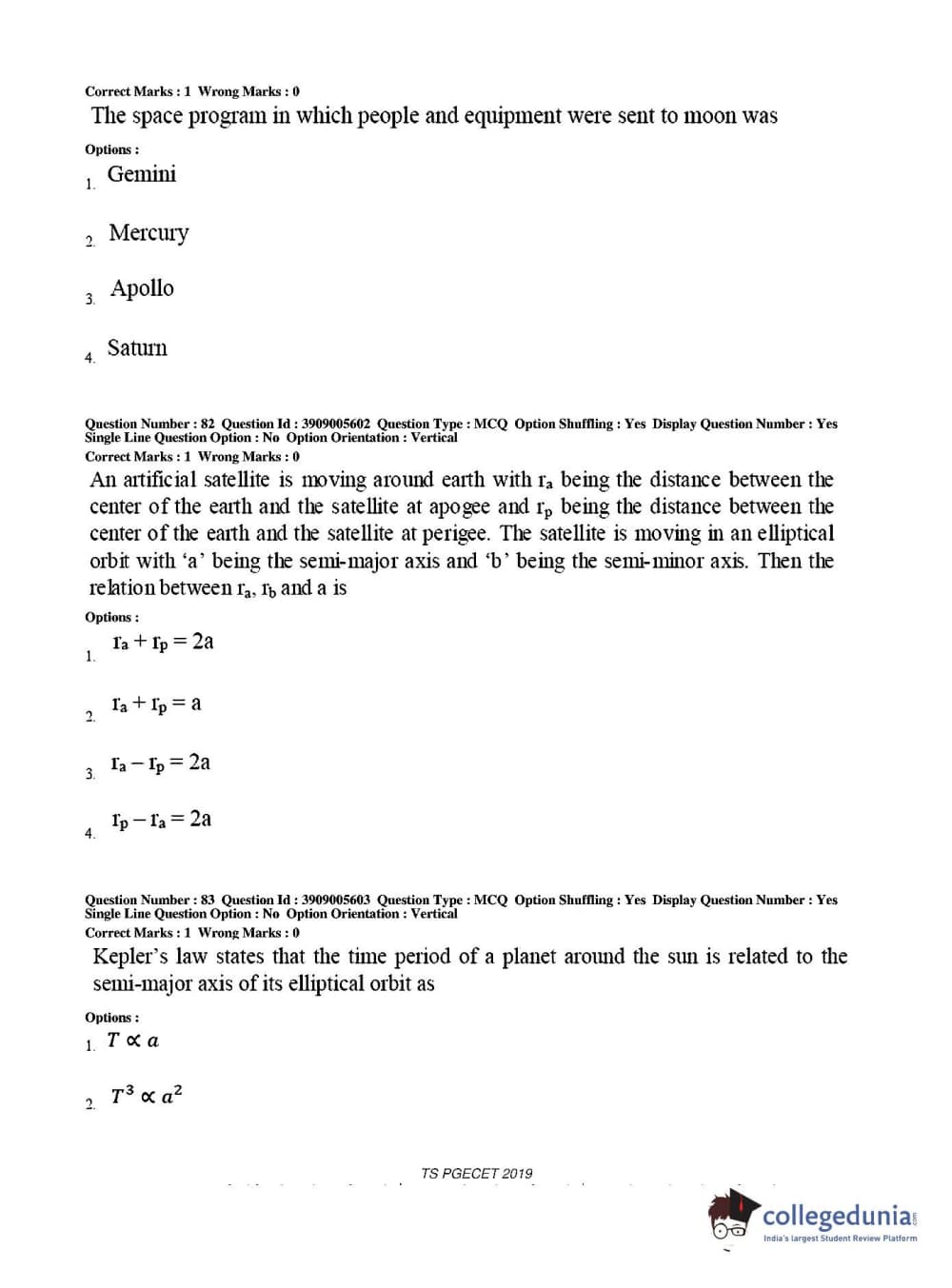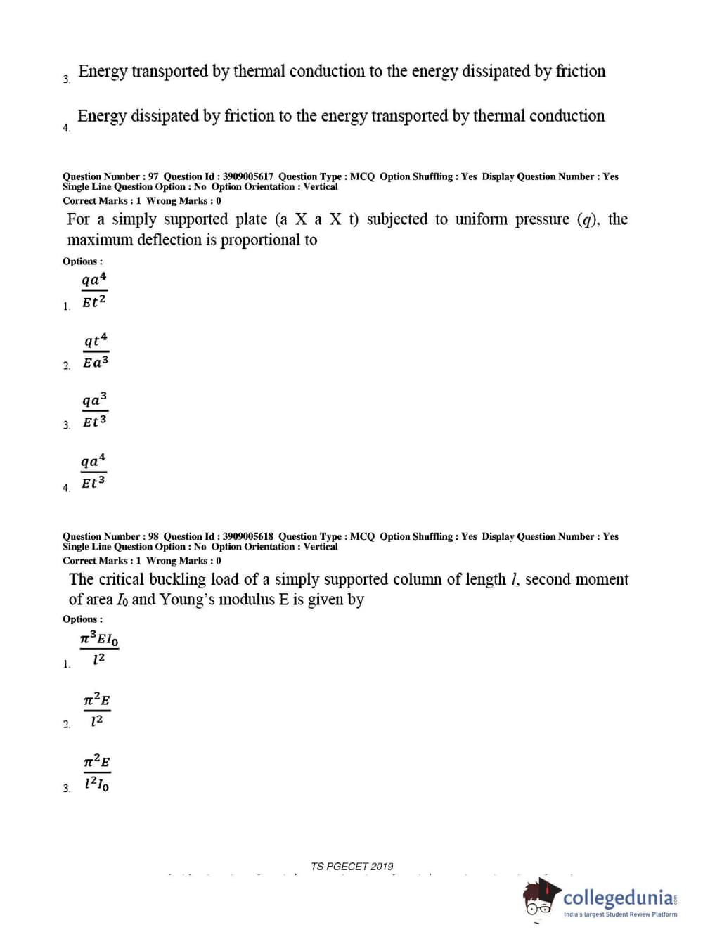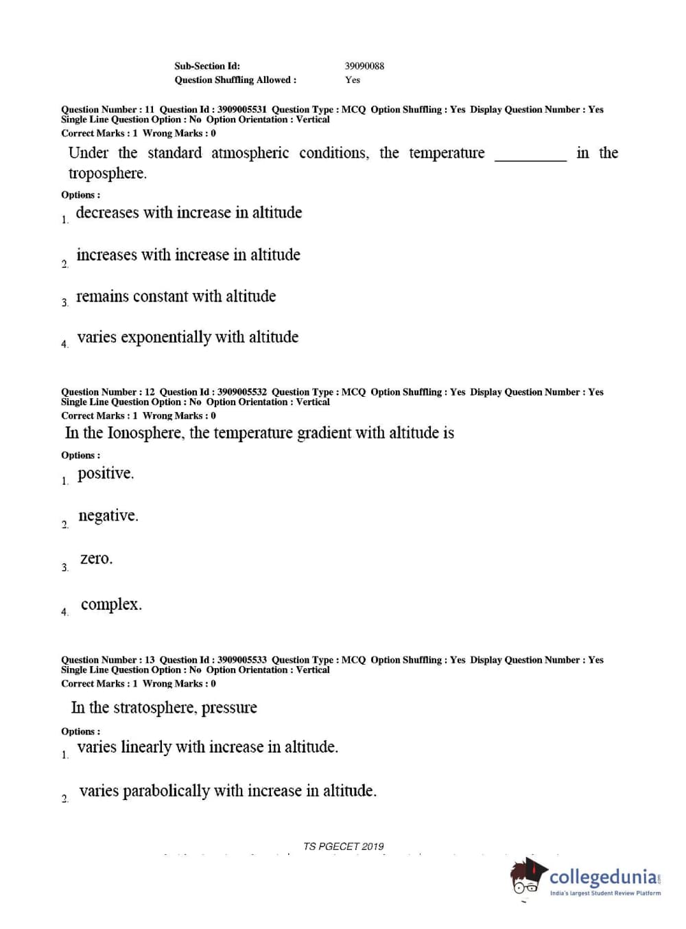 Collegedunia has provided TS PGECET Previous Year Question paper pdf with answer key in the links given below: