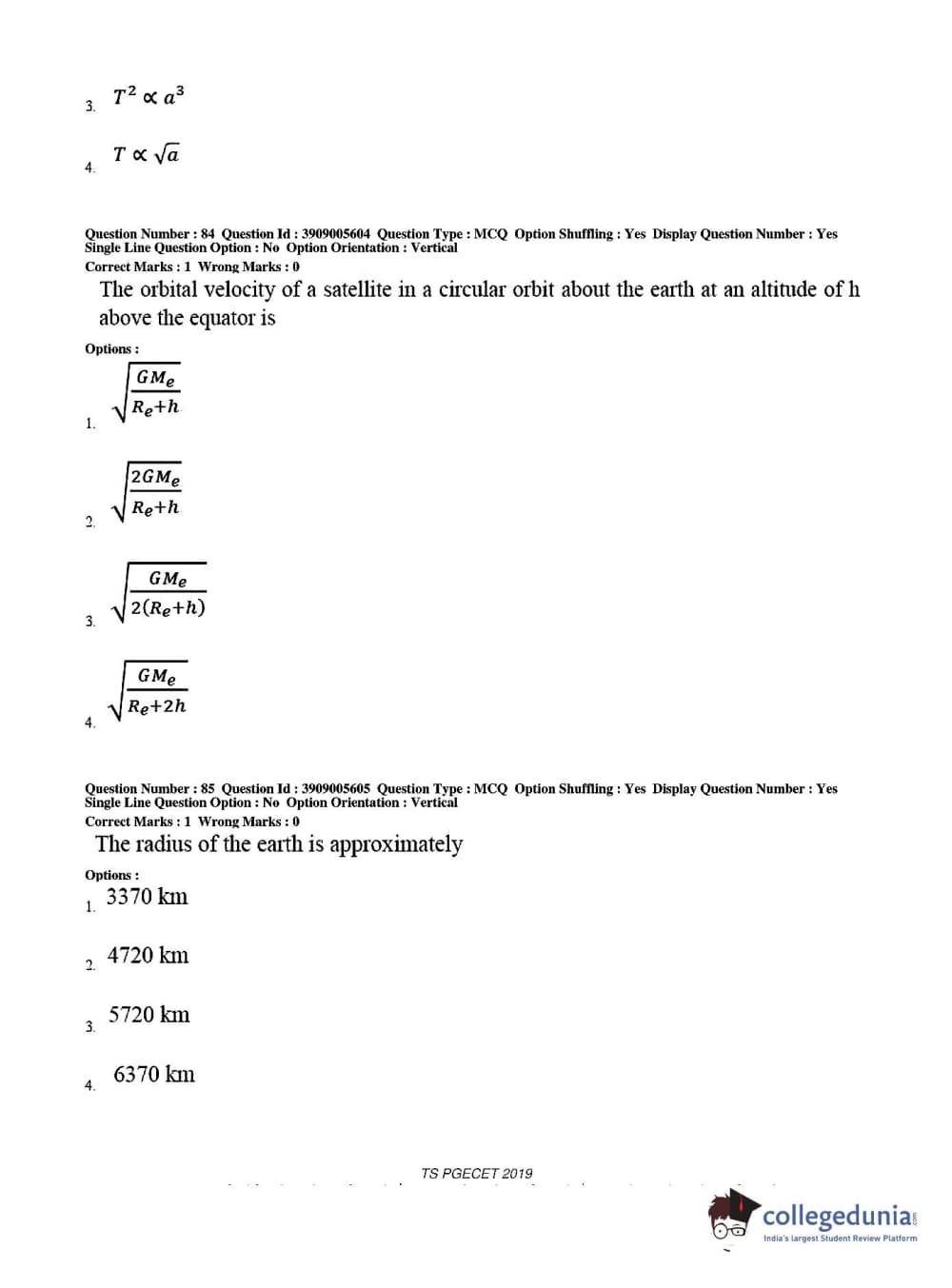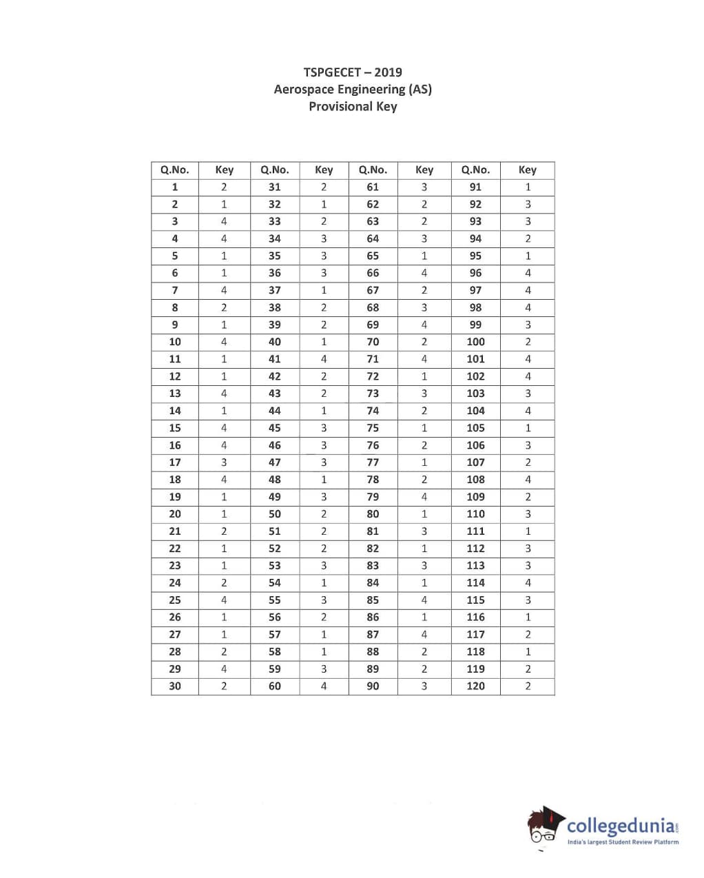 | TS PGECET 2019 Aerospace Engineering Question Paper PDF | TS PGECET 2019 Aerospace Engineering Answer Key PDF |