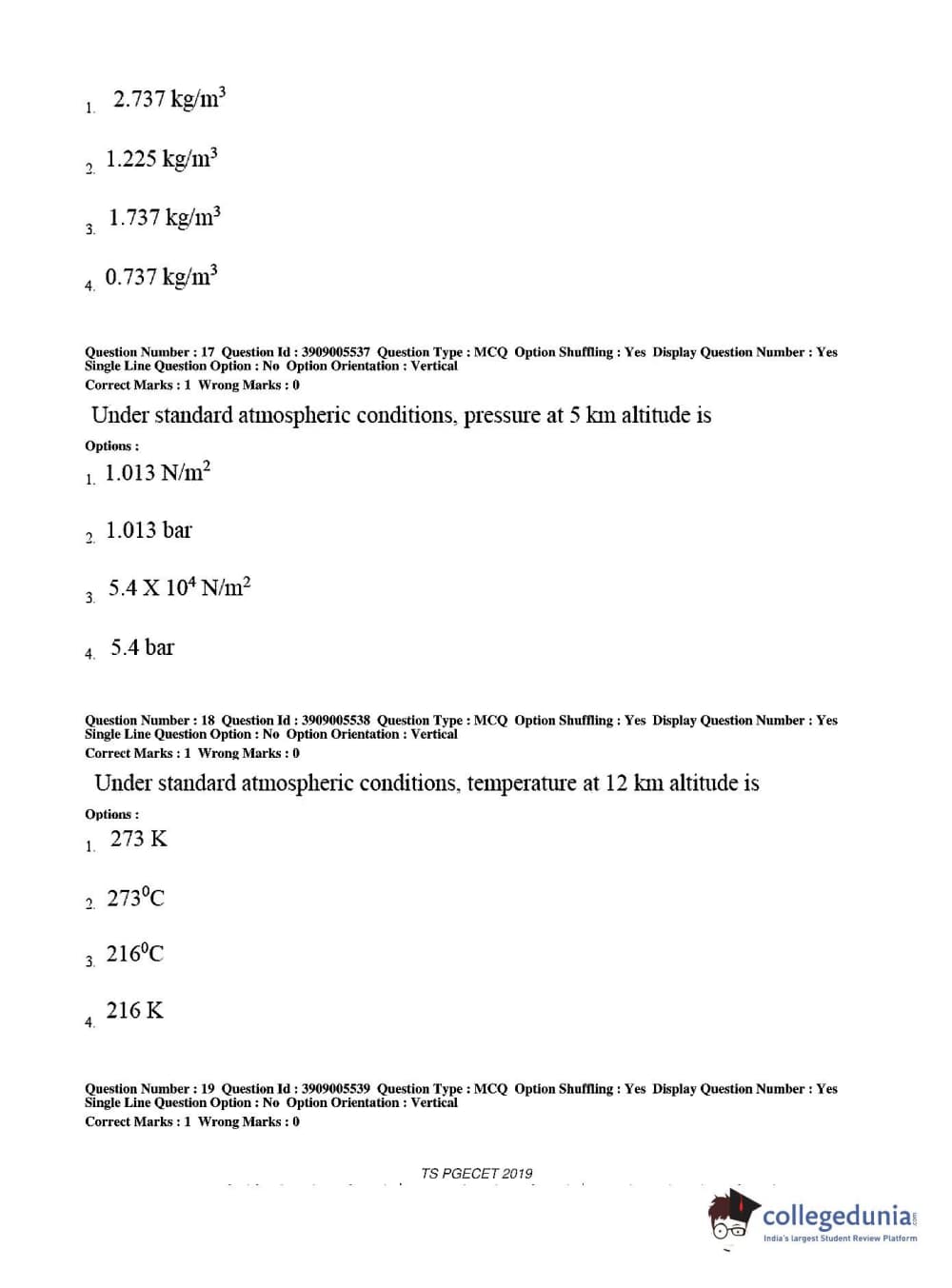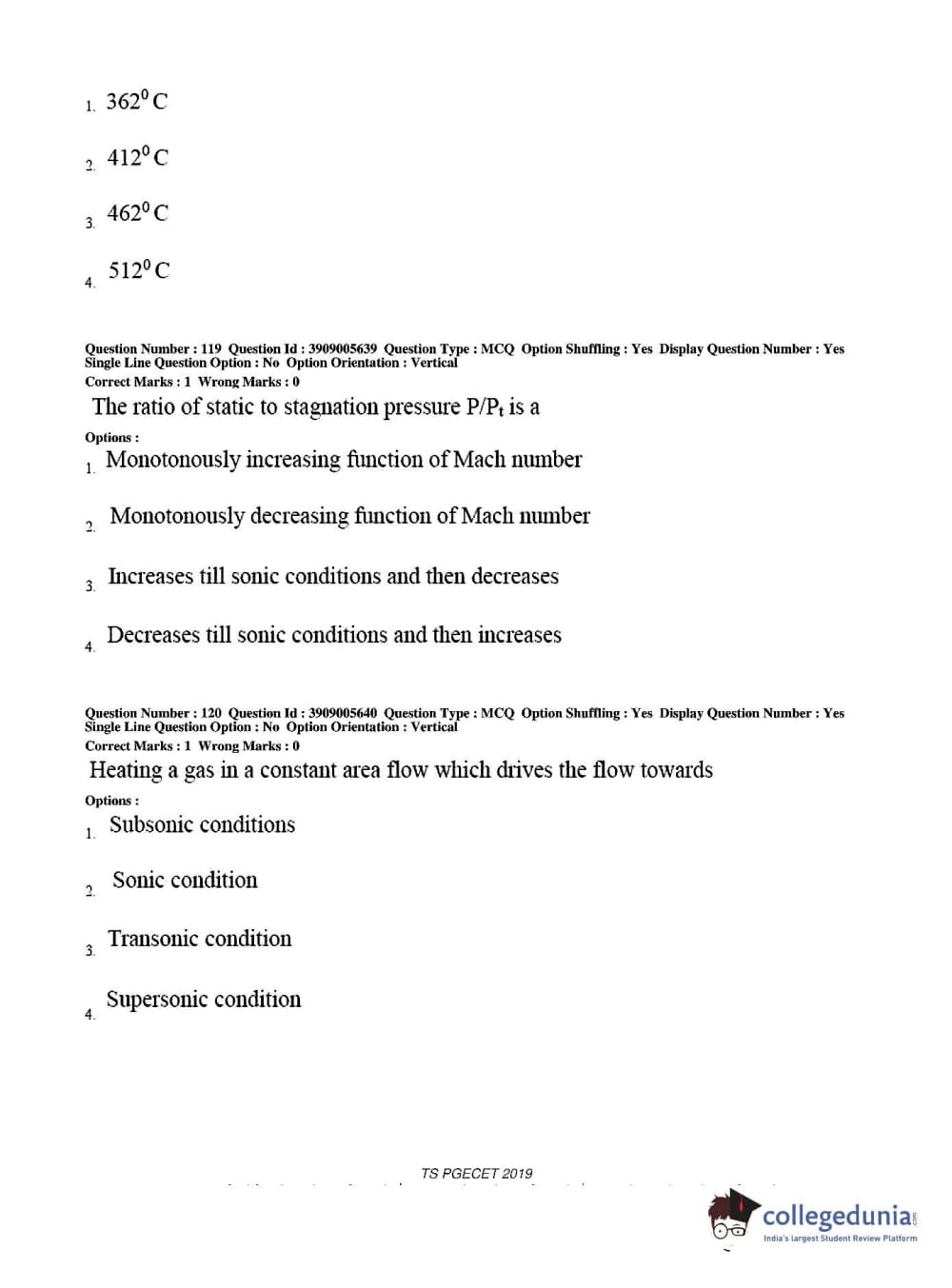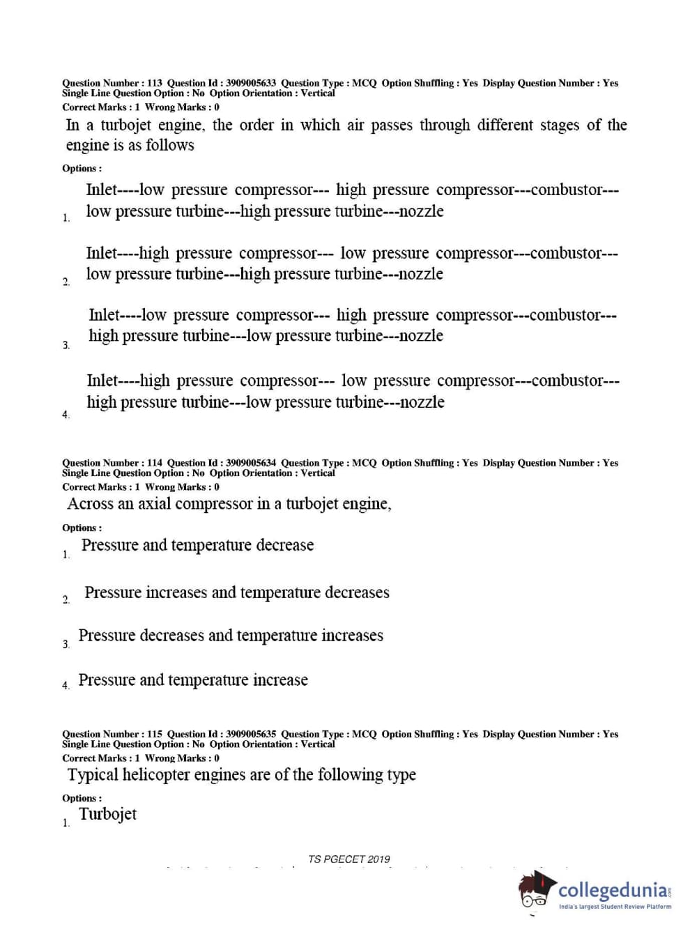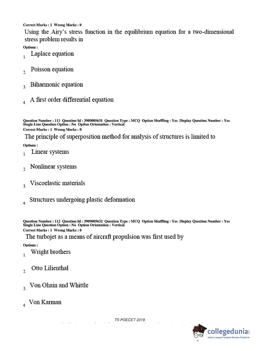 TS PGECET 2019 Aerospace Engineering Question paper with answer key pdf conducted on May 30, 2019 in Afternoon Session 2 PM to 4 PM is available for download. The exam was successfully organized by Osmania University. The question paper comprised a total of 120 questions.