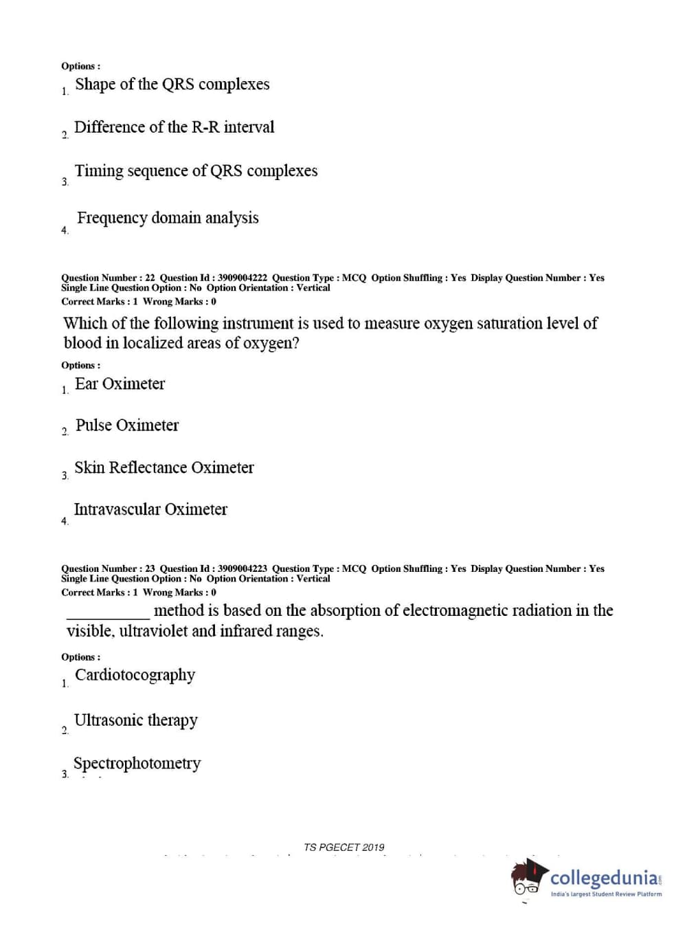 TS PGECET 2019 Biomedical Engineering Question Paper with Answer Key PDF for Afternoon Session
