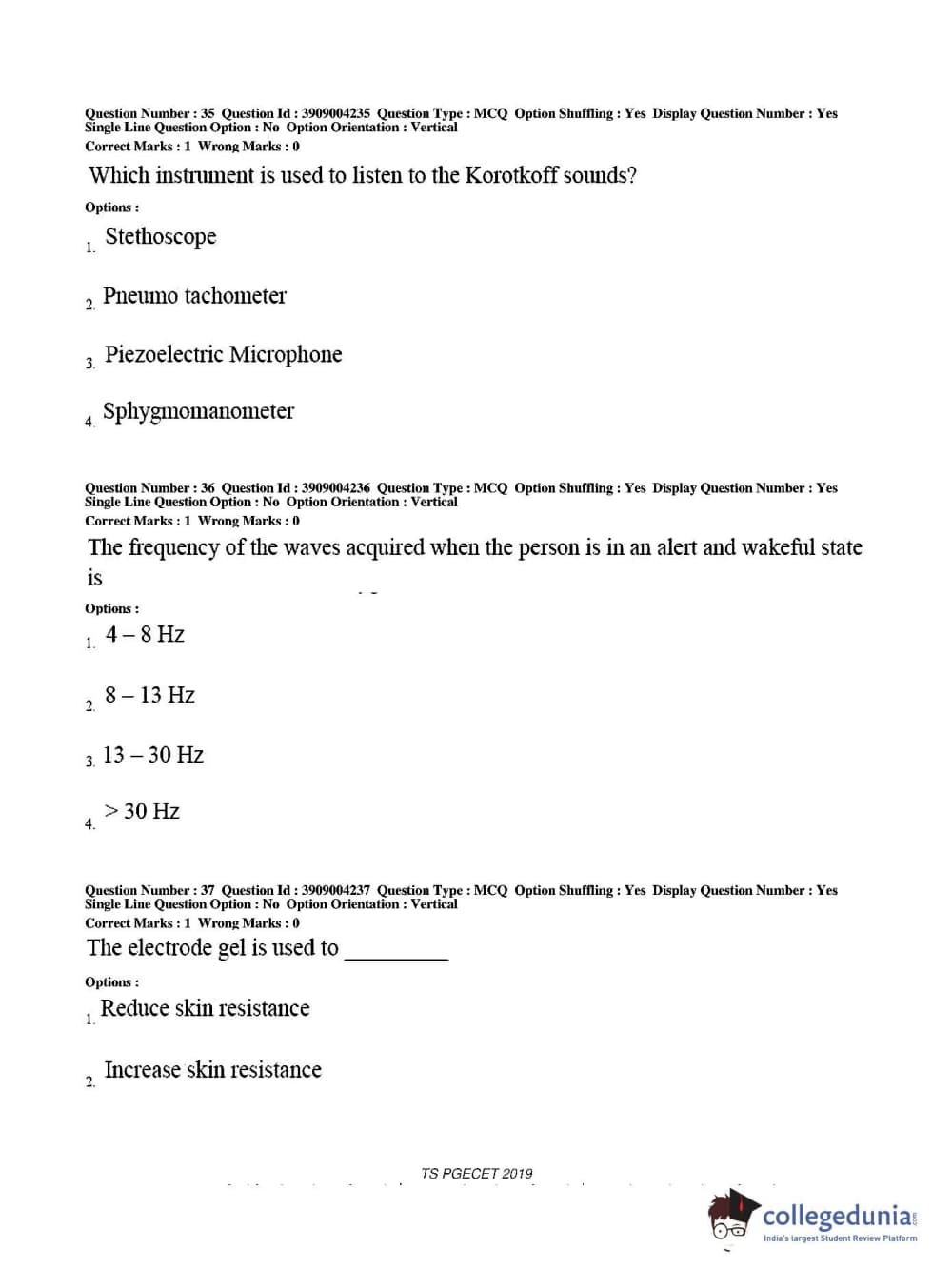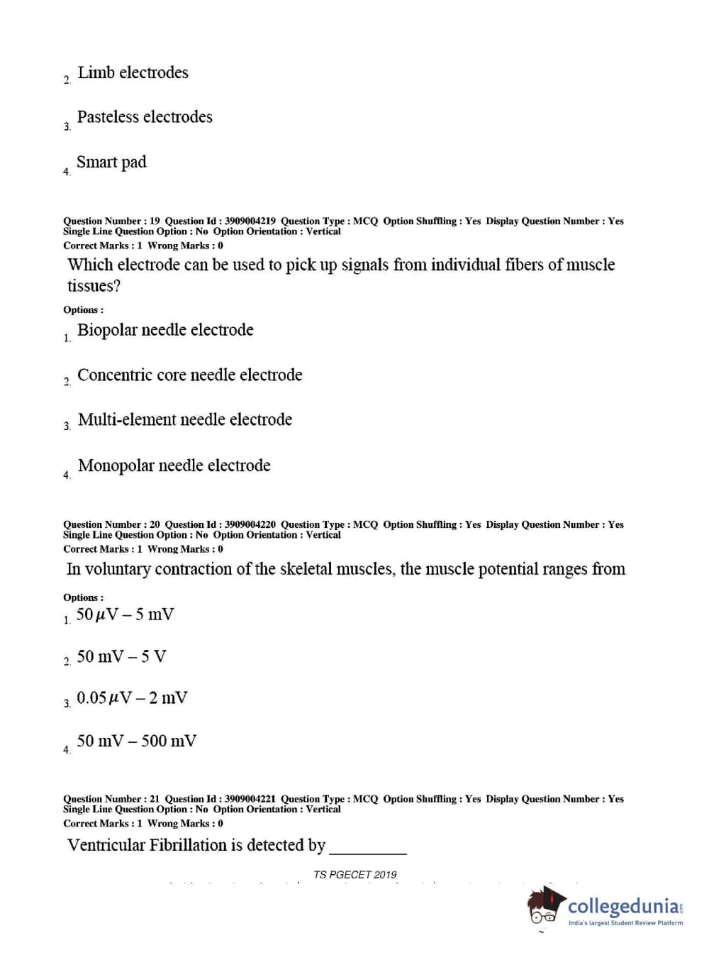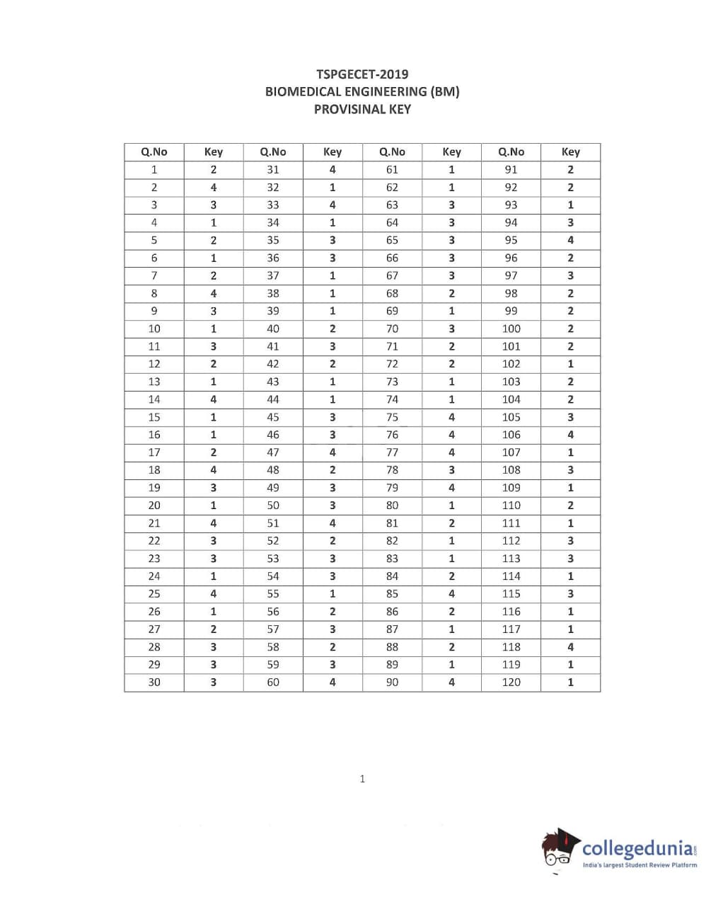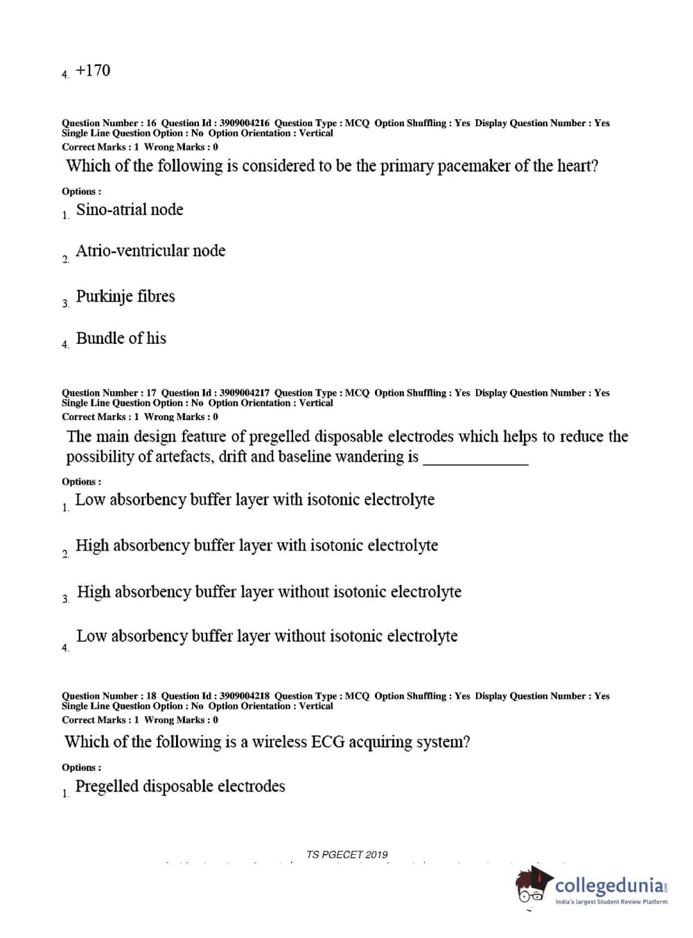 | TS PGECET 2019 Biomedical Engineering Question Paper PDF | TS PGECET 2019 Biomedical Engineering Answer Key PDF |