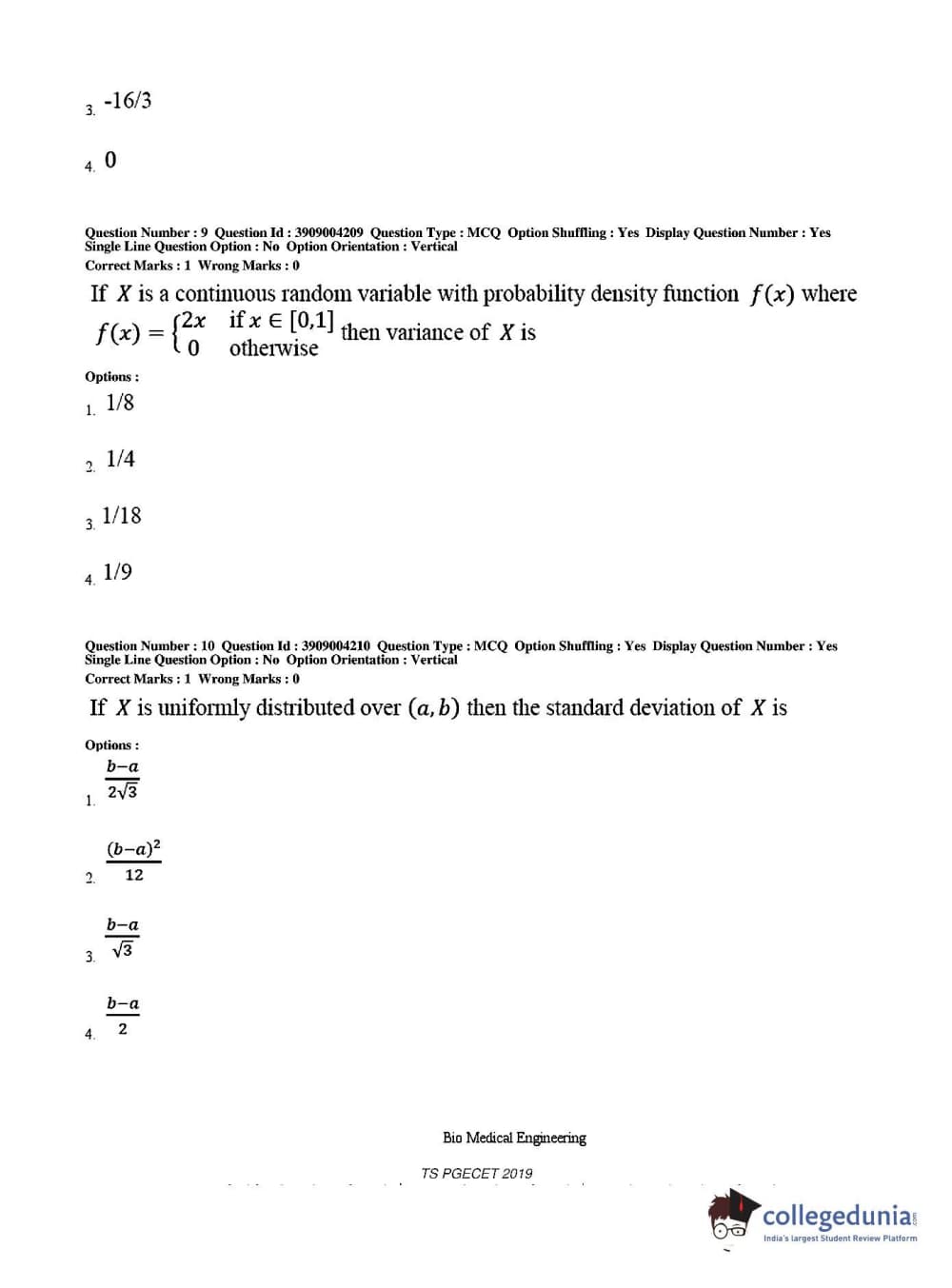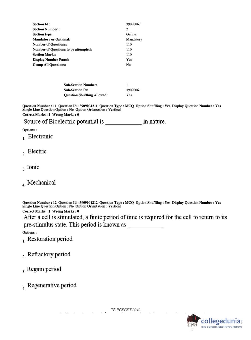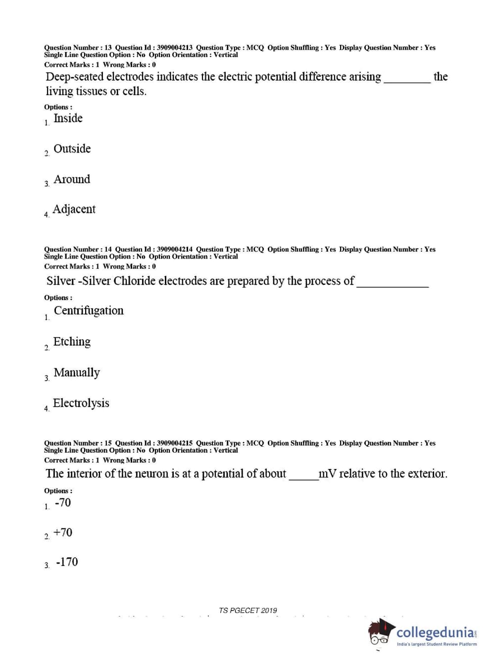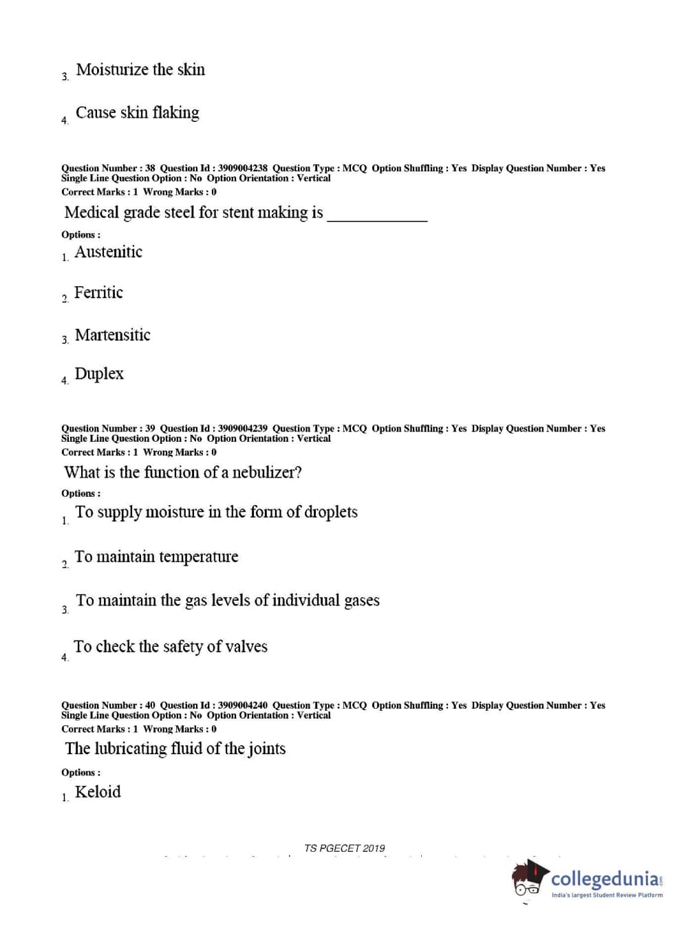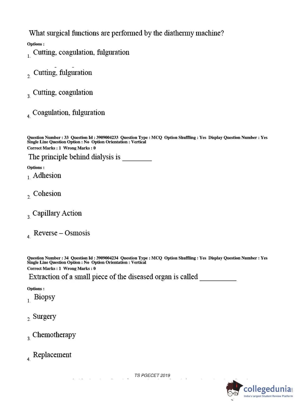 | TS PGECET 2019 Biomedical Engineering Question Paper PDF | TS PGECET 2019 Biomedical Engineering Answer Key PDF |