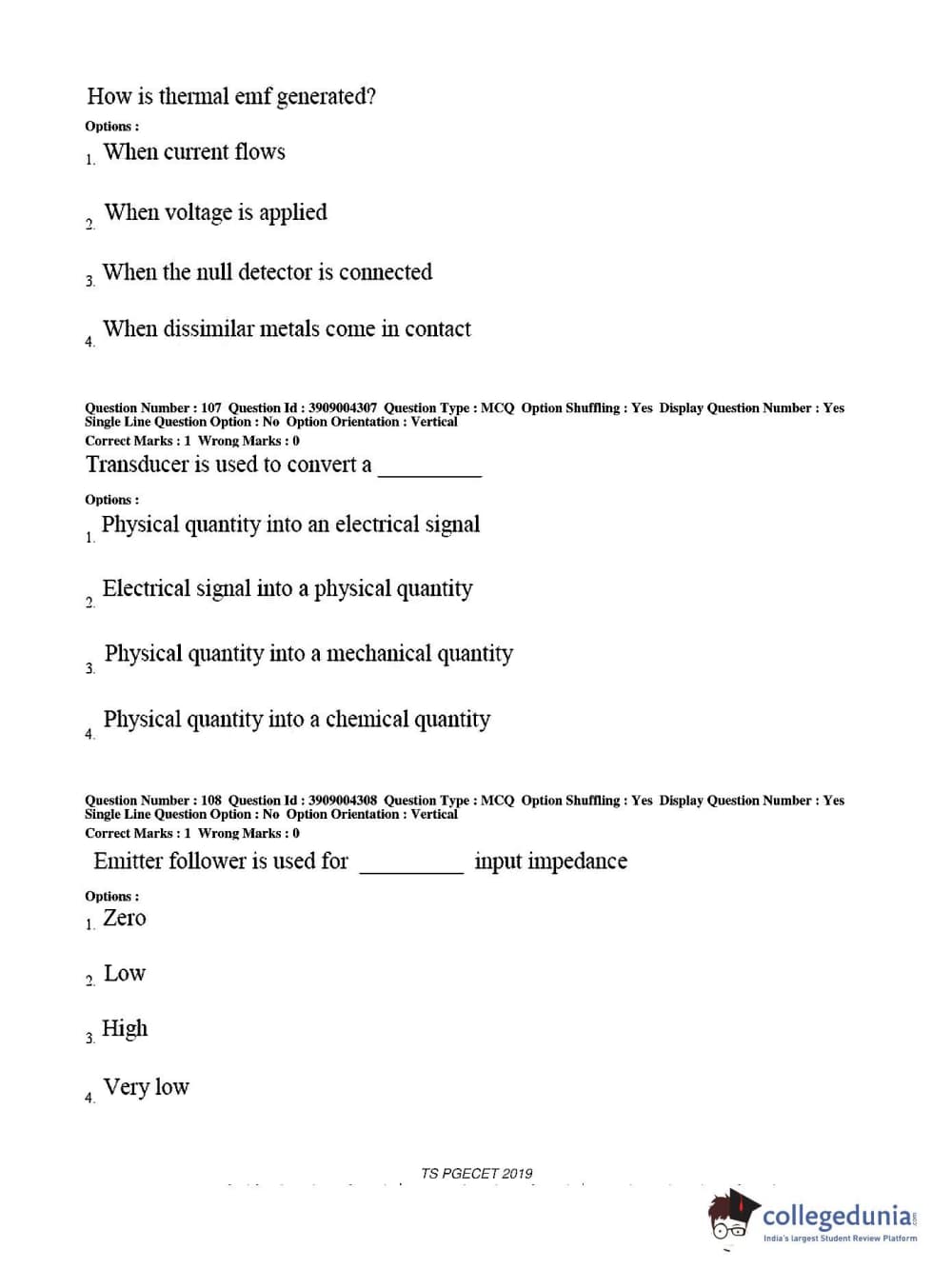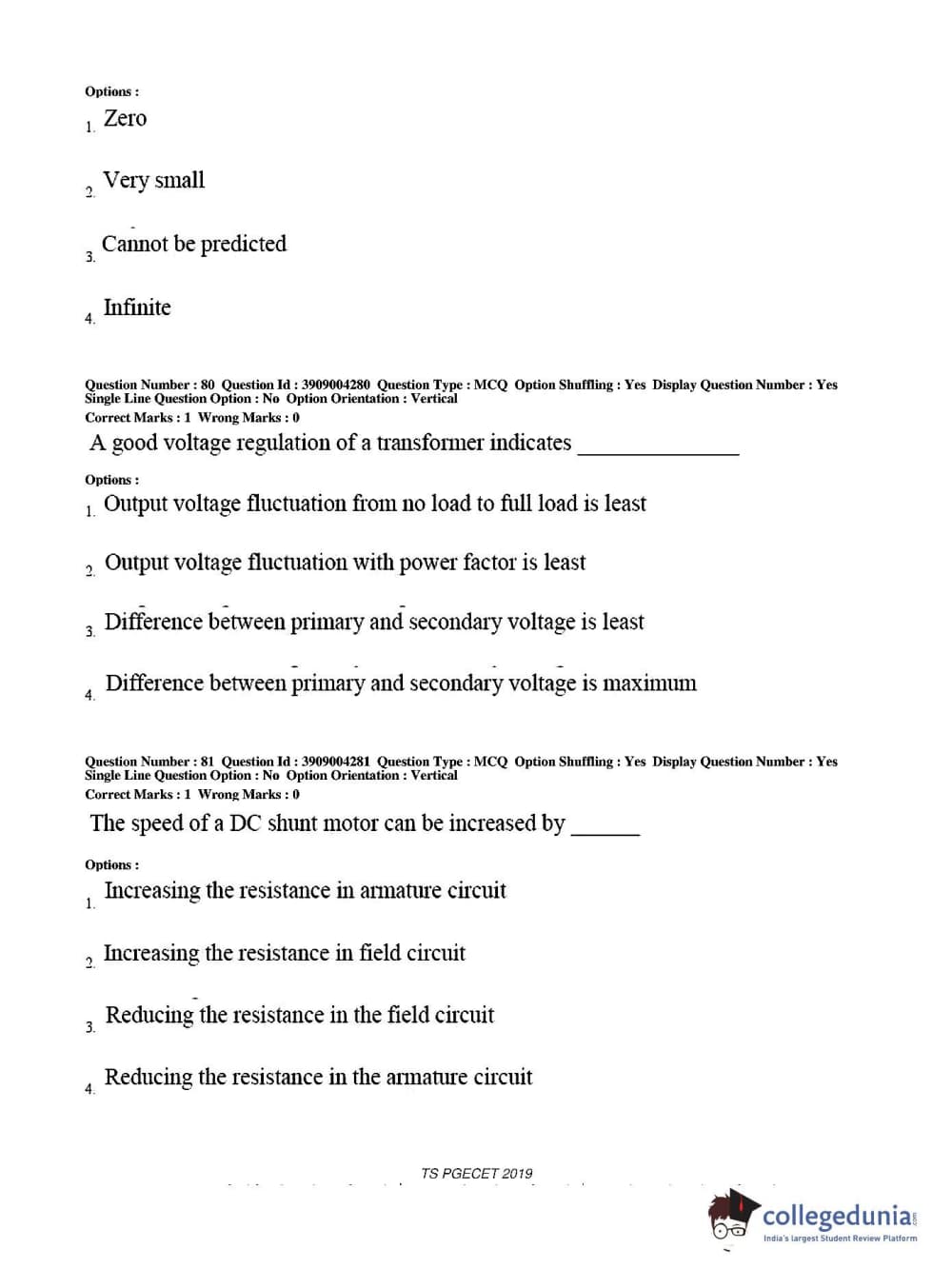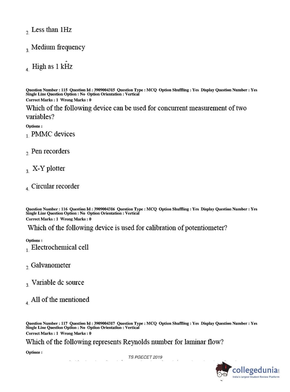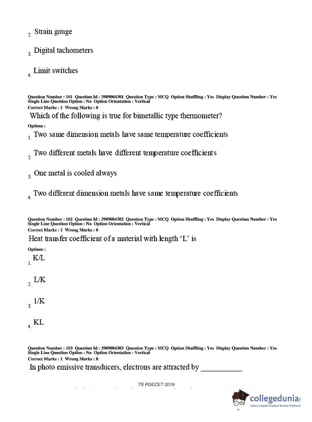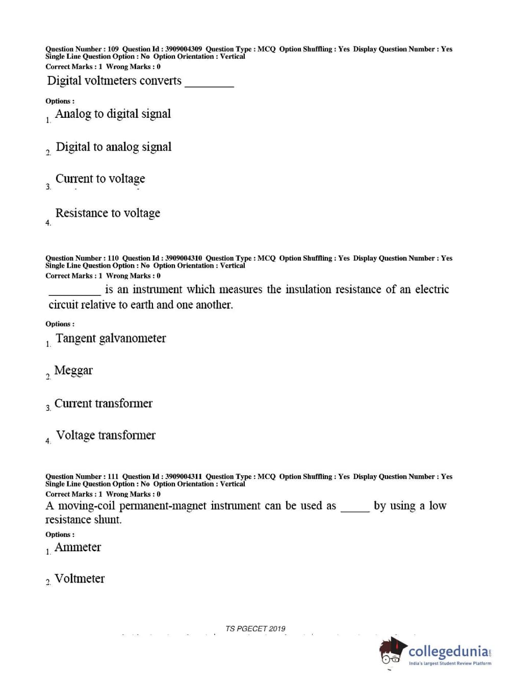 Collegedunia has provided TS PGECET Previous Year Question paper pdf with answer key in the links given below: