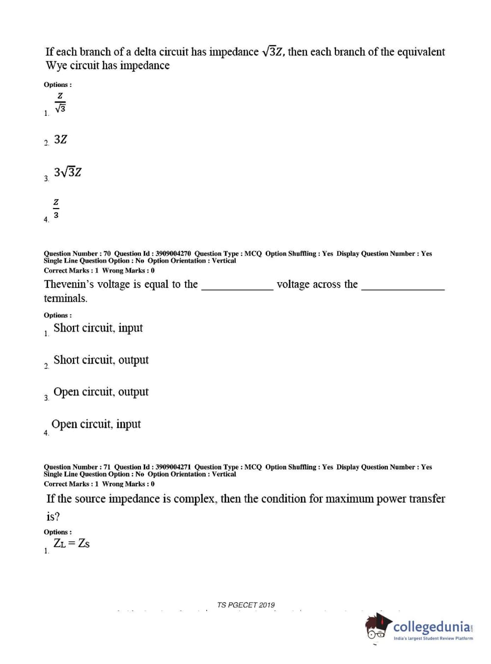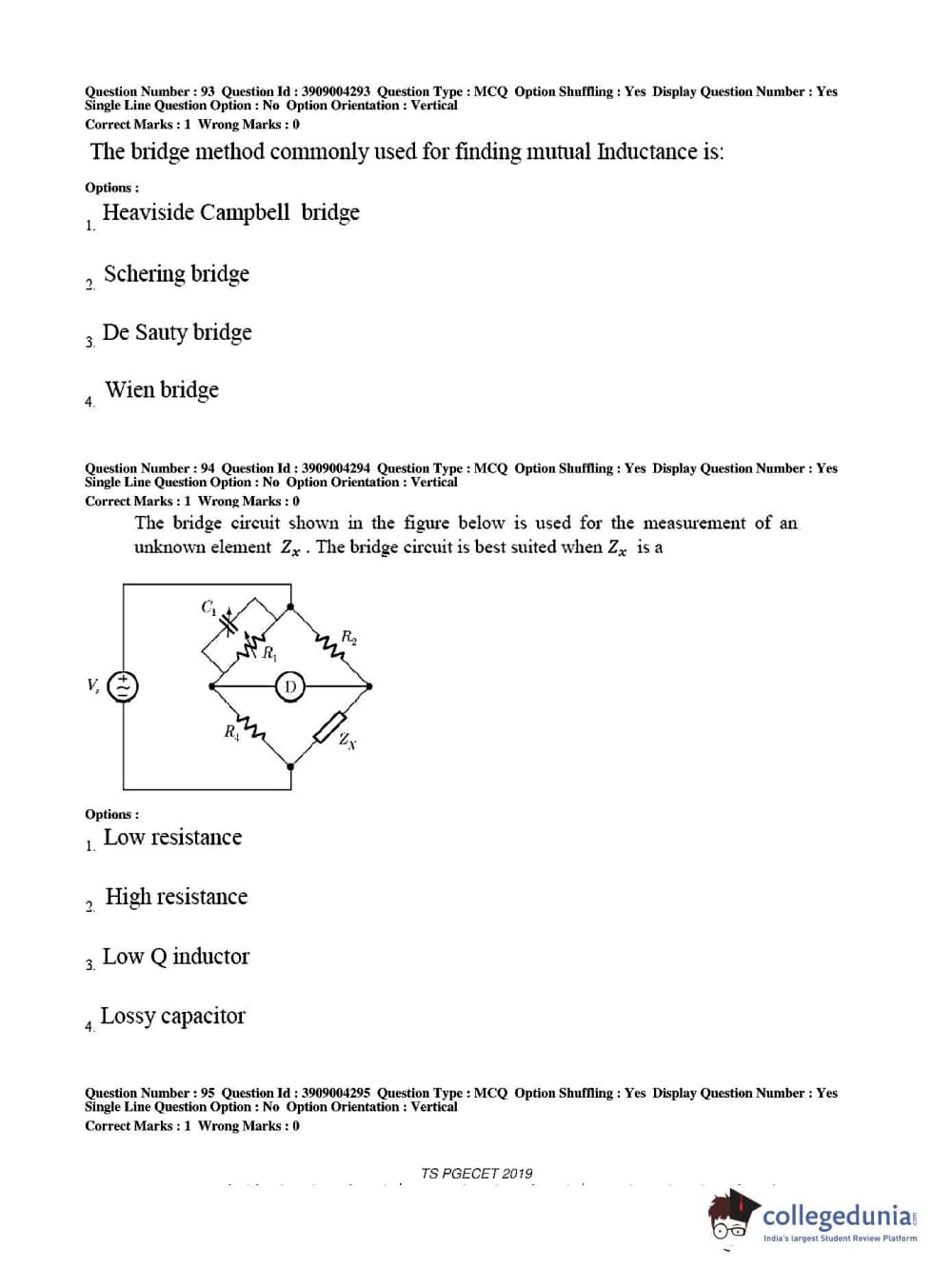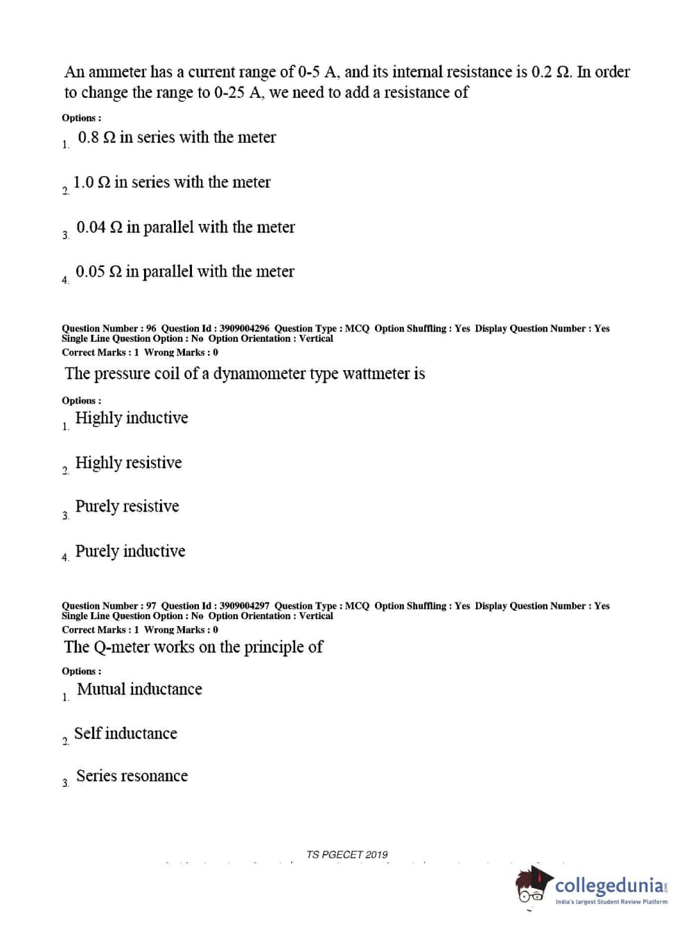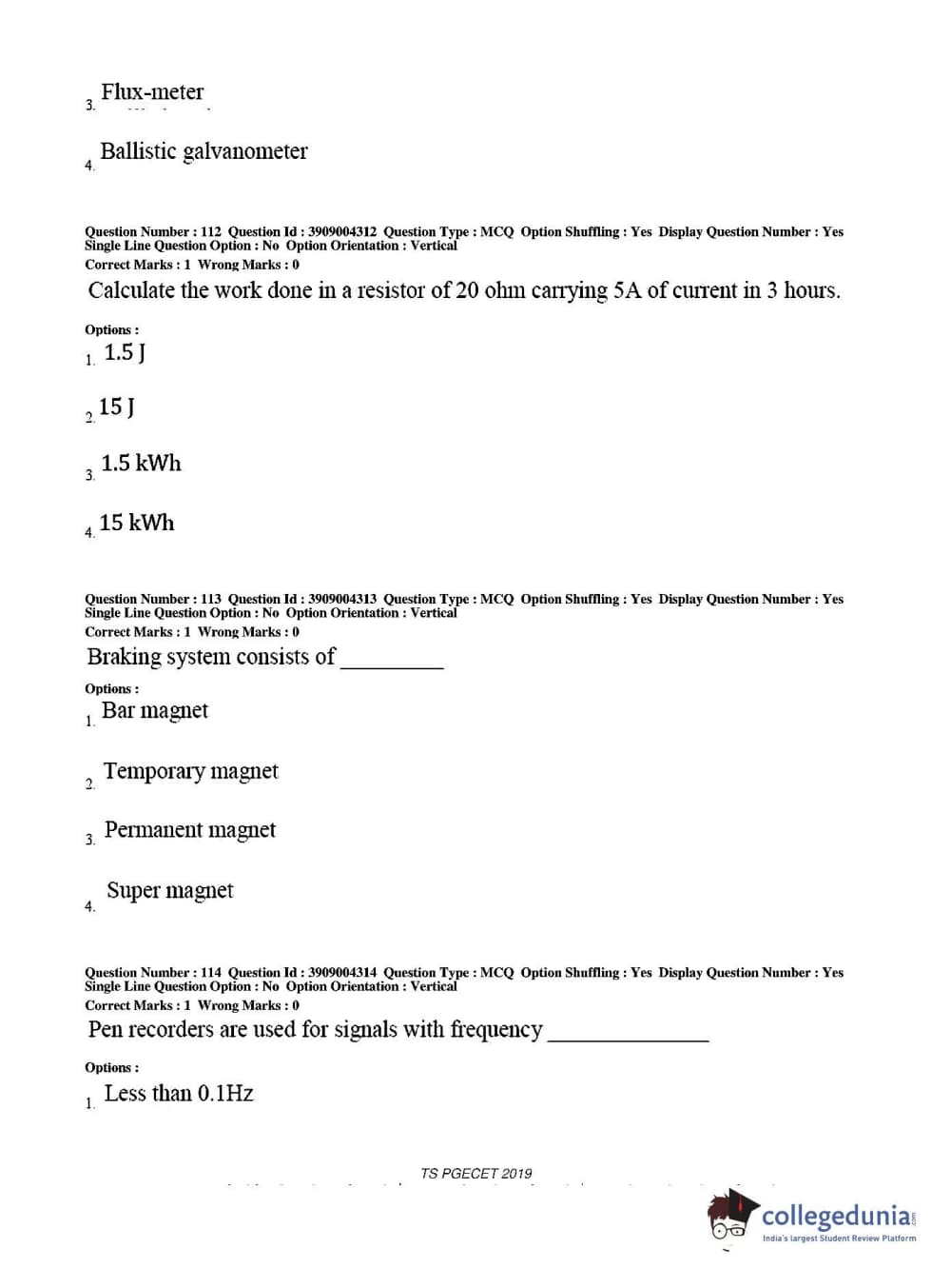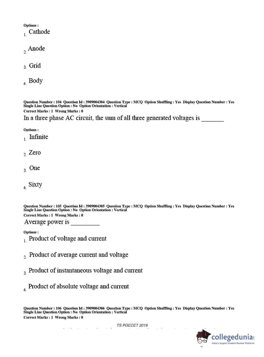 Collegedunia has provided TS PGECET Previous Year Question paper pdf with answer key in the links given below: