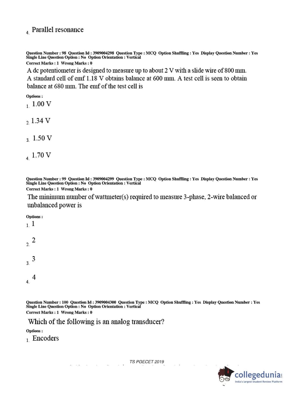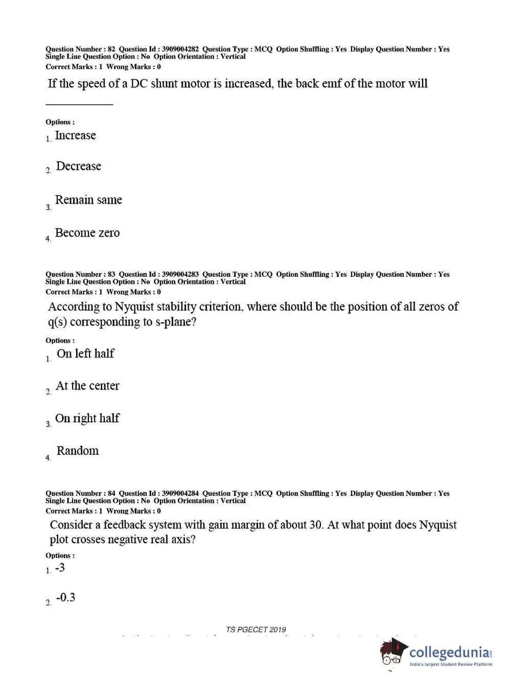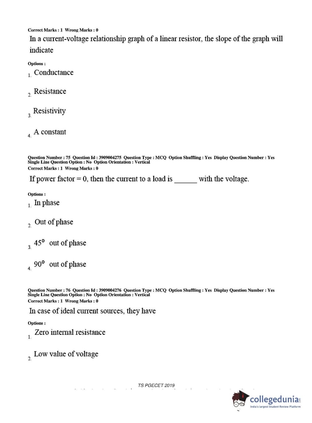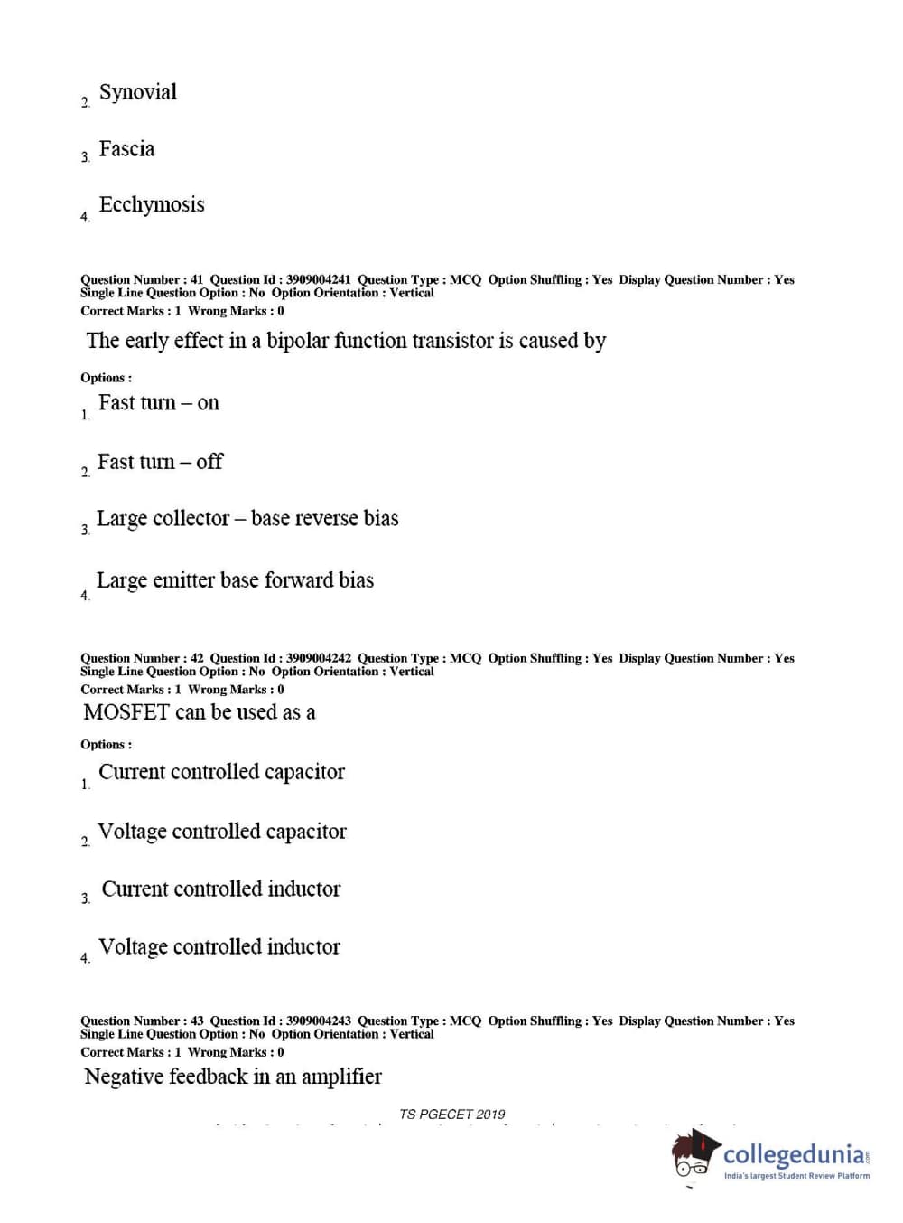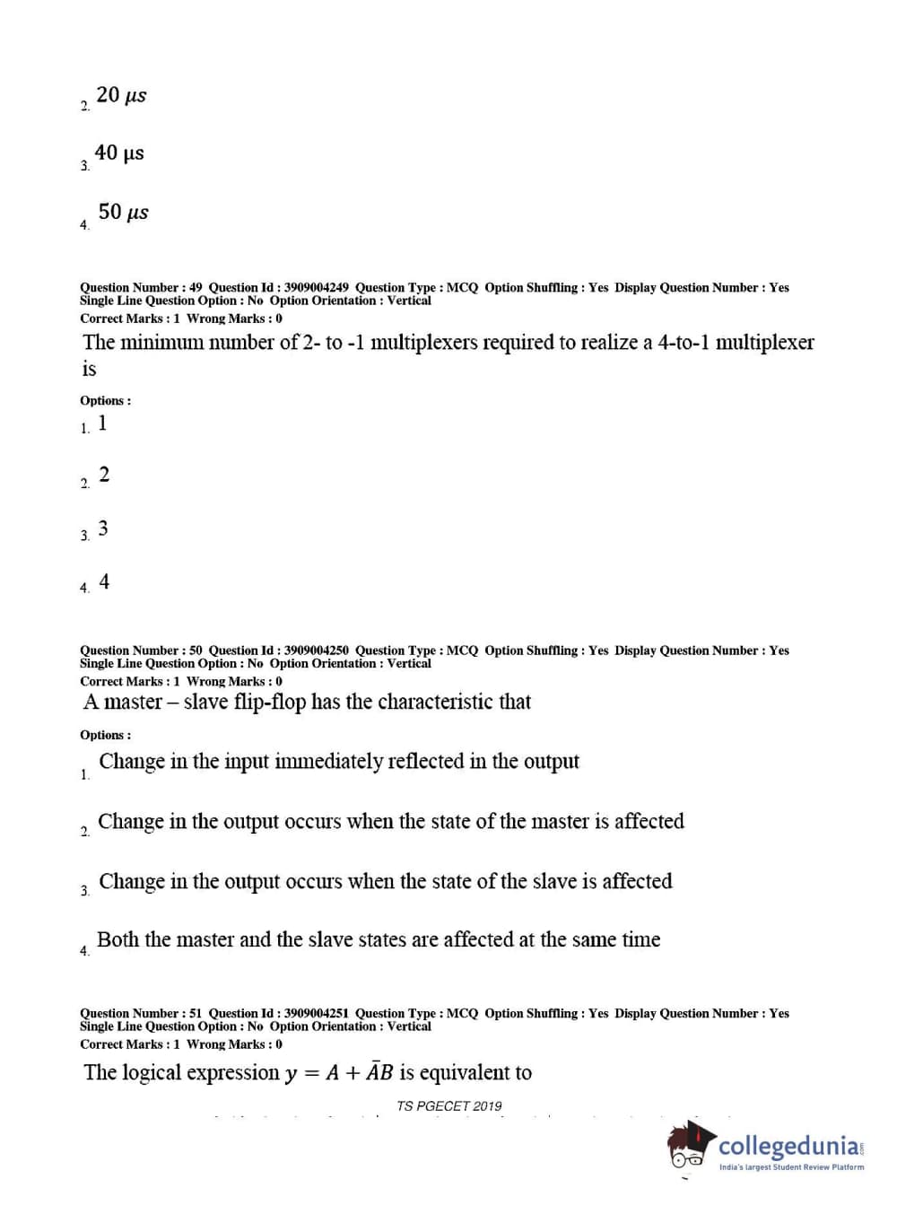 Collegedunia has provided TS PGECET Previous Year Question paper pdf with answer key in the links given below: