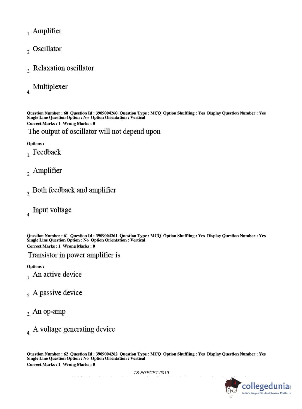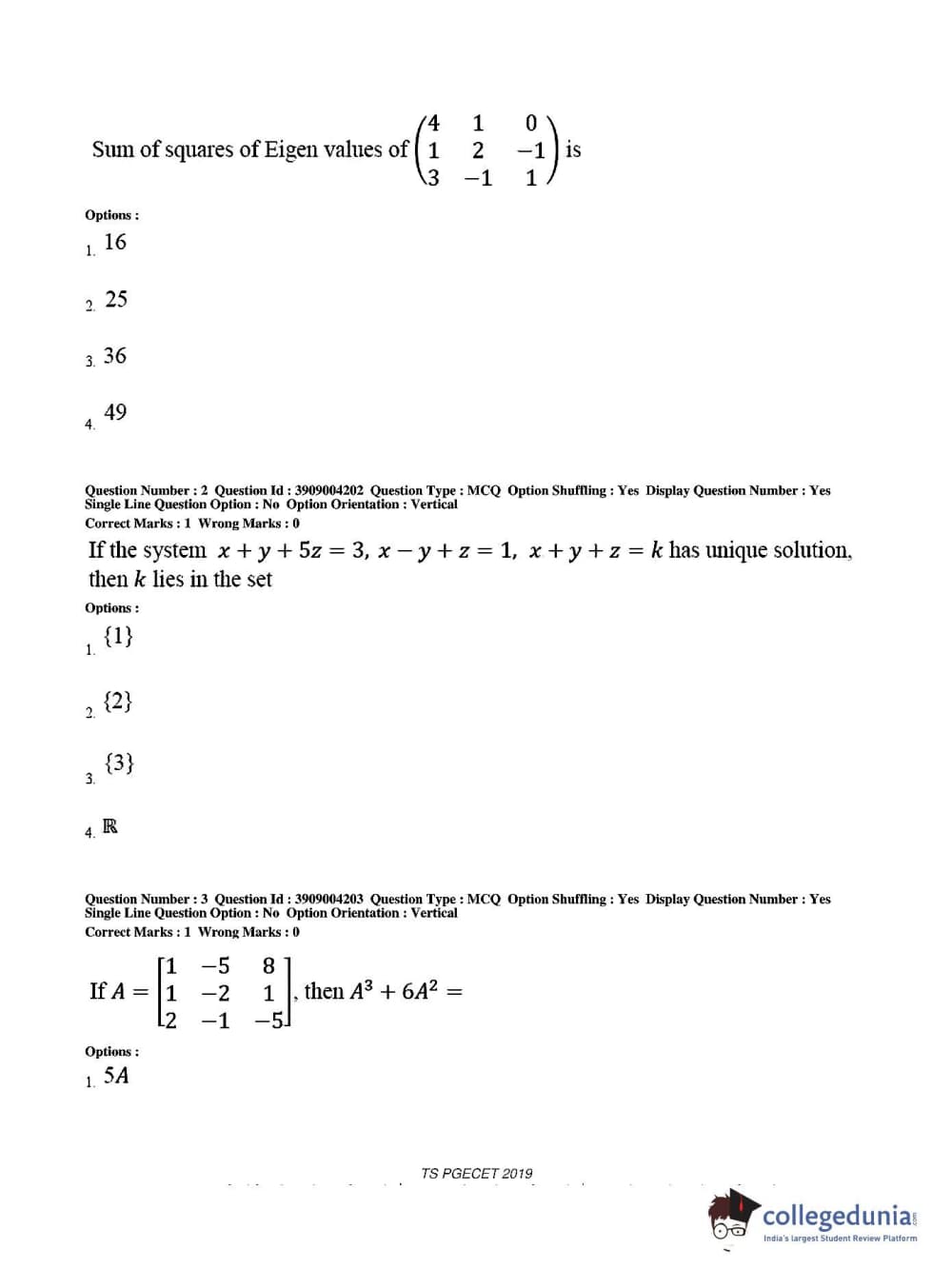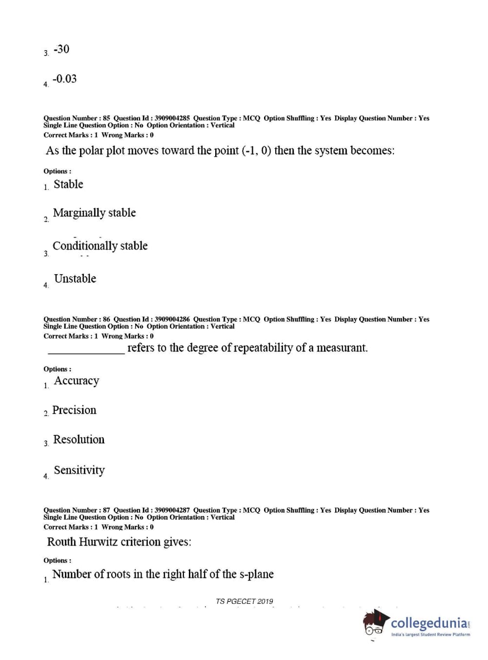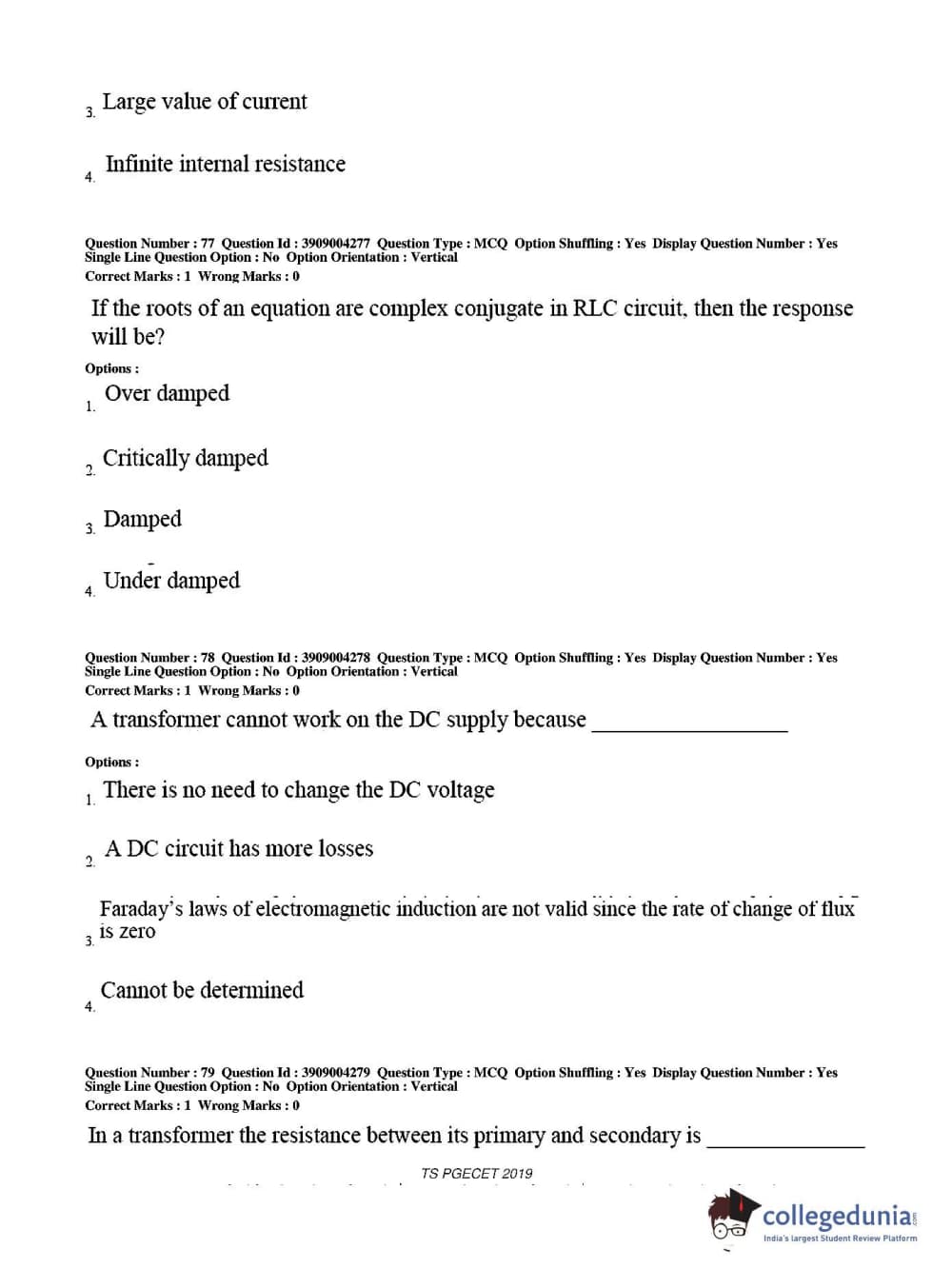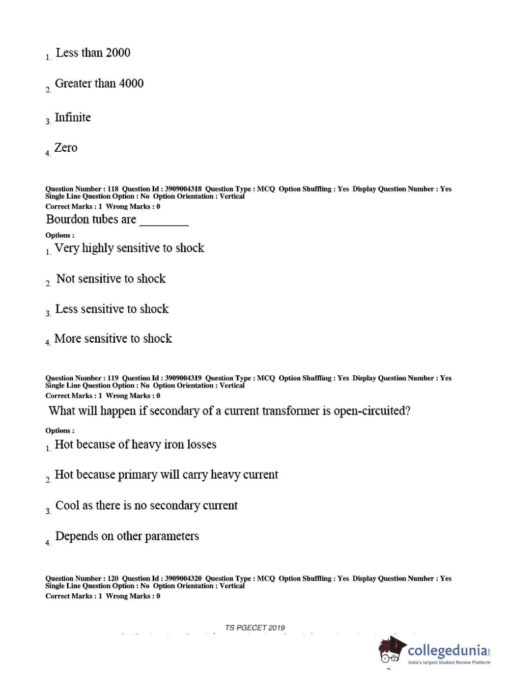 Collegedunia has provided TS PGECET Previous Year Question paper pdf with answer key in the links given below: