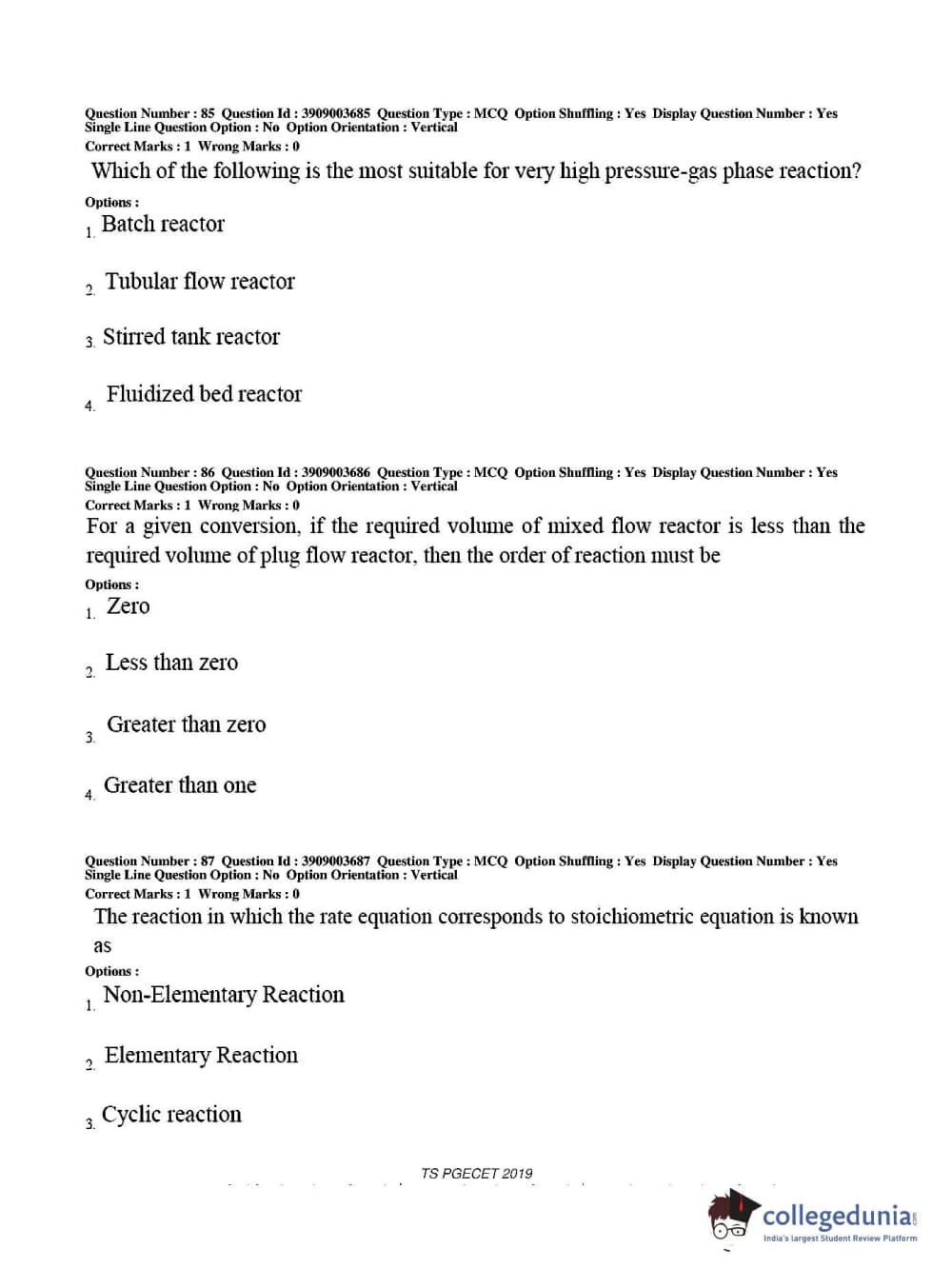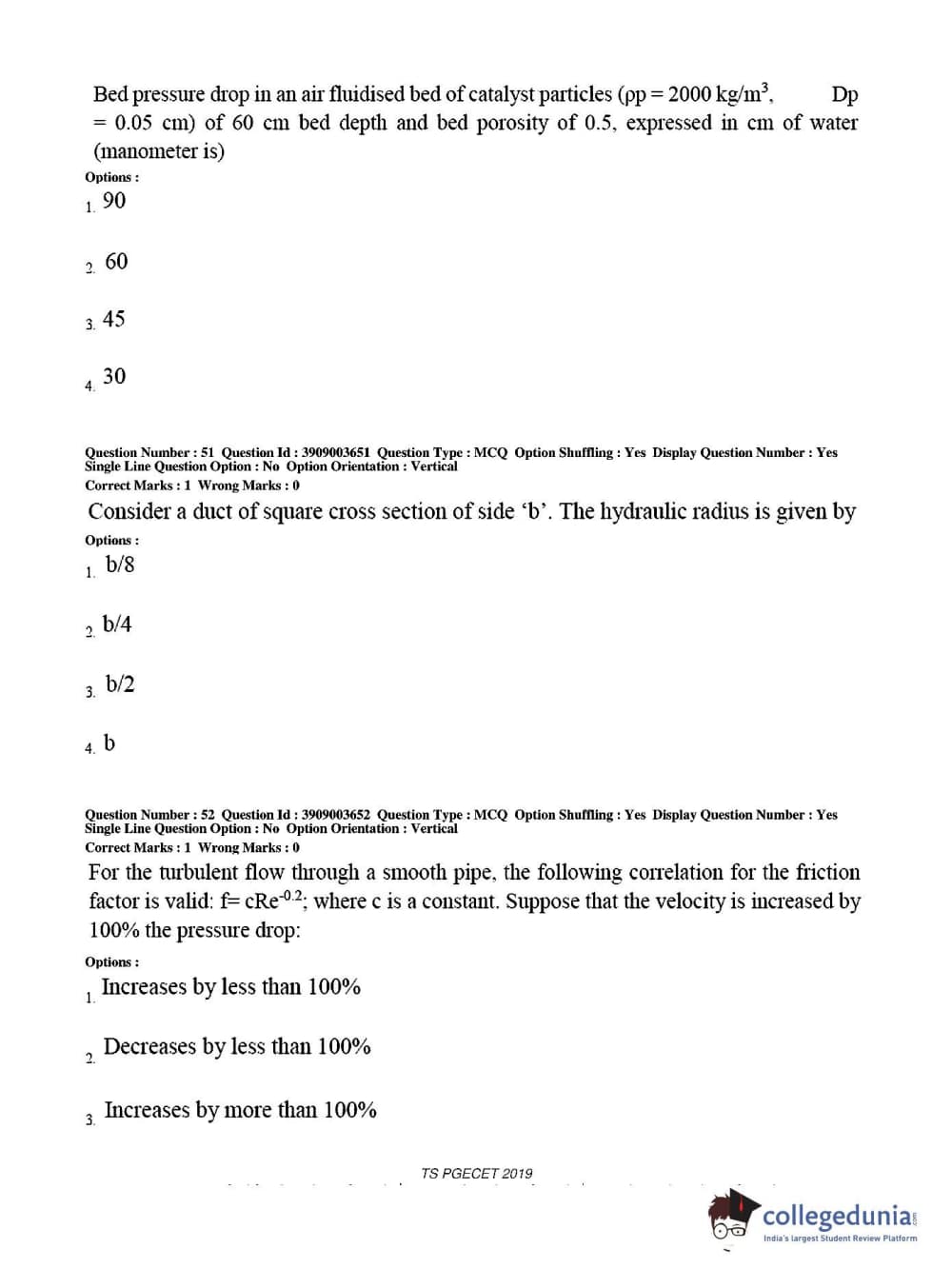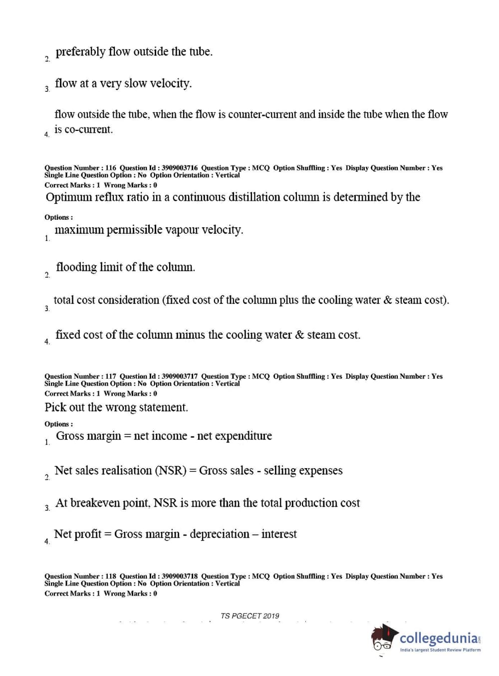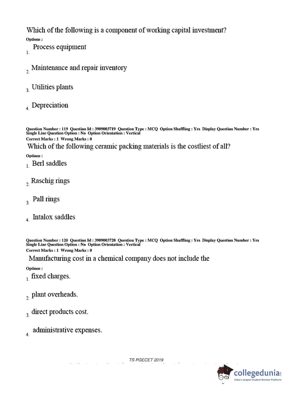 TS PGECET 2019 Chemical Engineering Question paper with answer key pdf conducted on May 28, 2019 from is available for download. The exam was successfully organized by Osmania University. The question paper comprised a total of 120 questions.
