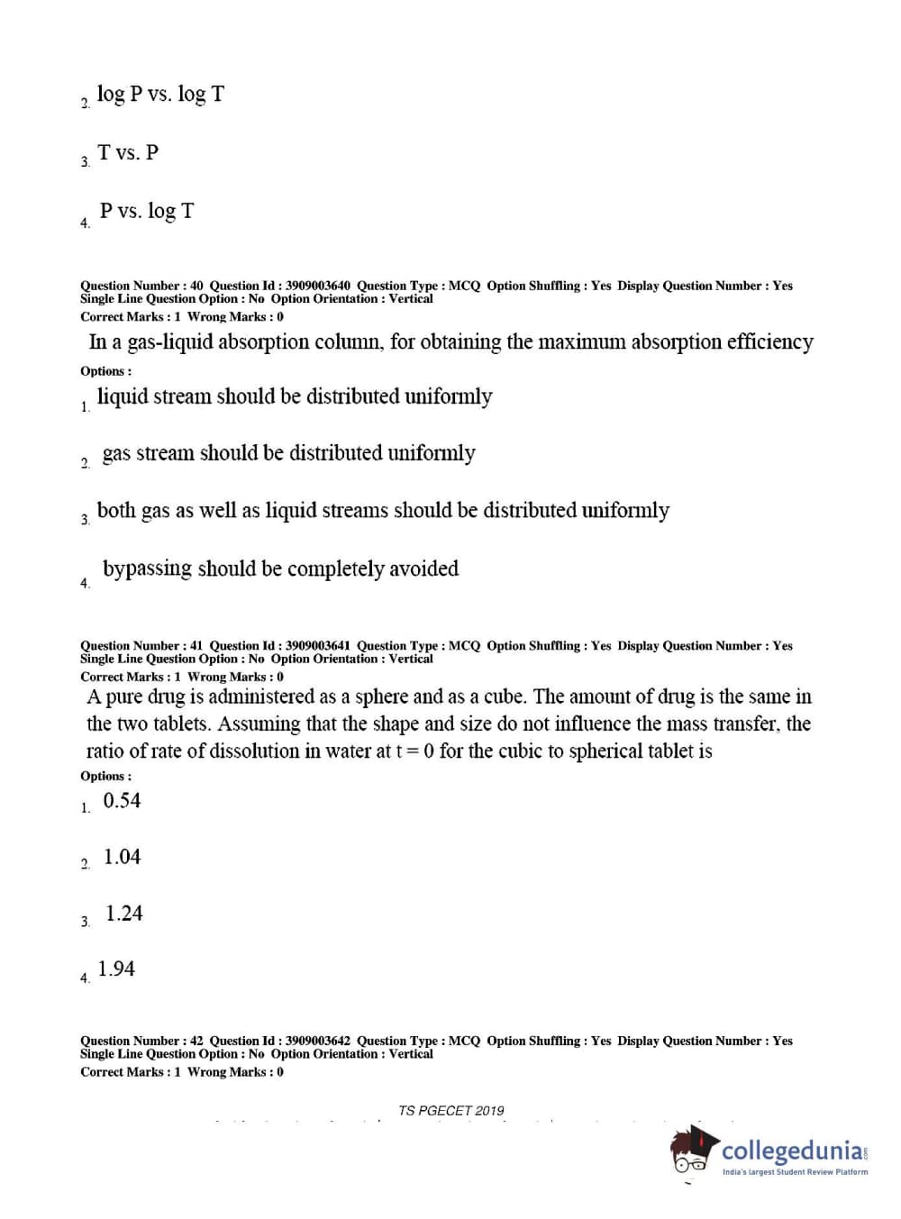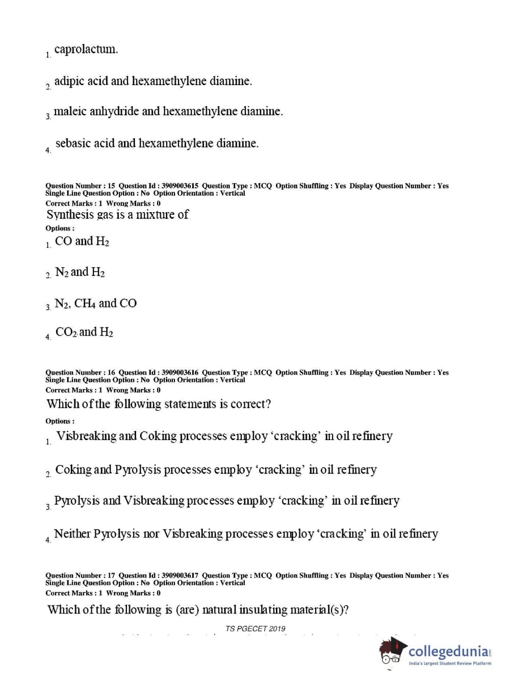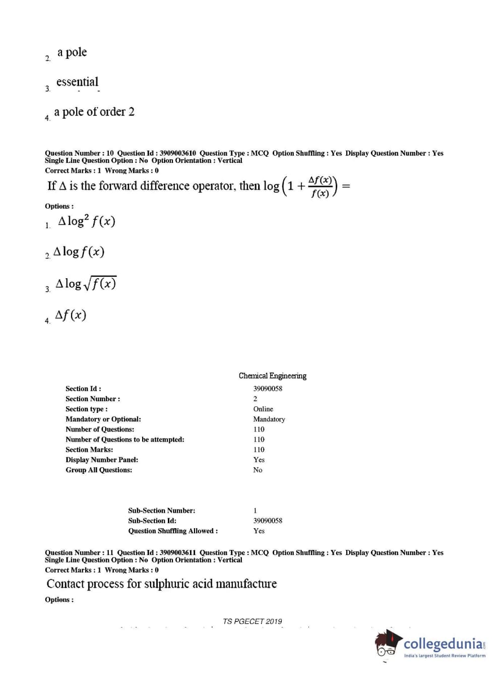 TS PGECET 2019 Chemical Engineering Question paper with answer key pdf conducted on May 28, 2019 from is available for download. The exam was successfully organized by Osmania University. The question paper comprised a total of 120 questions.