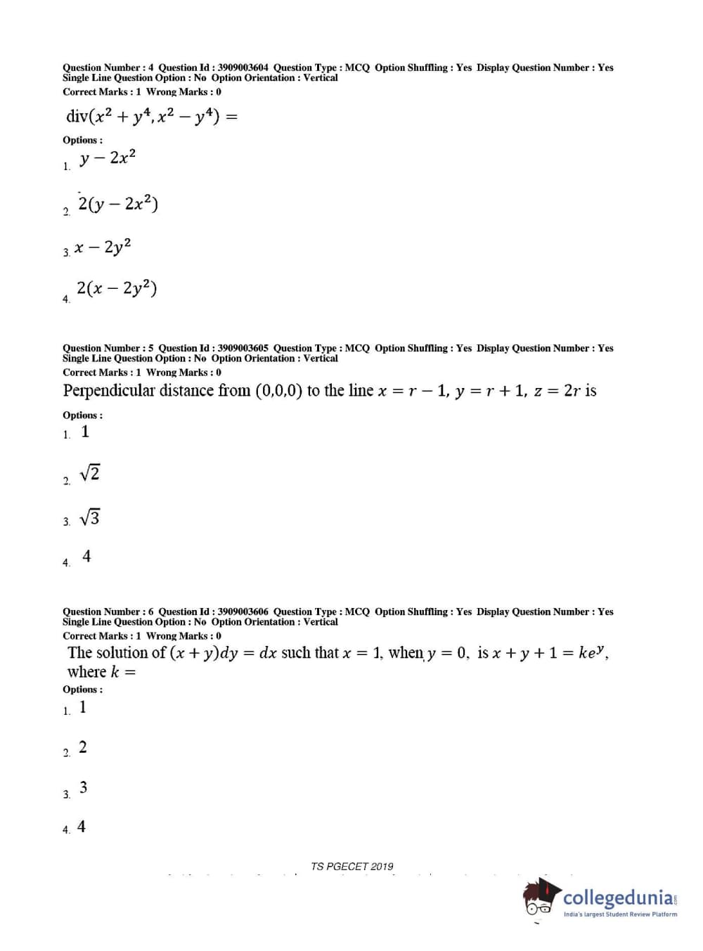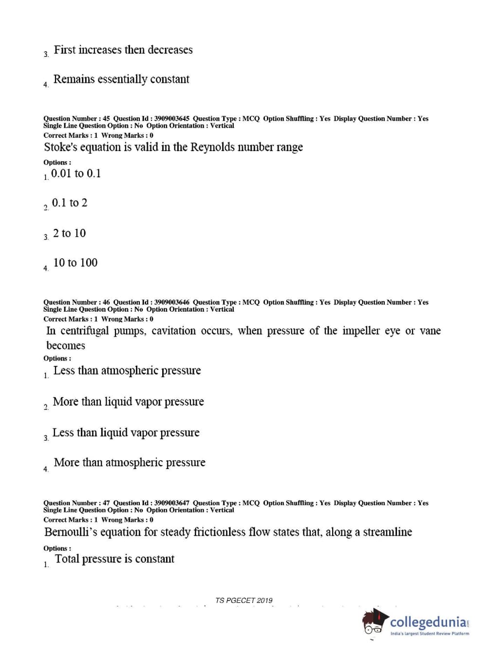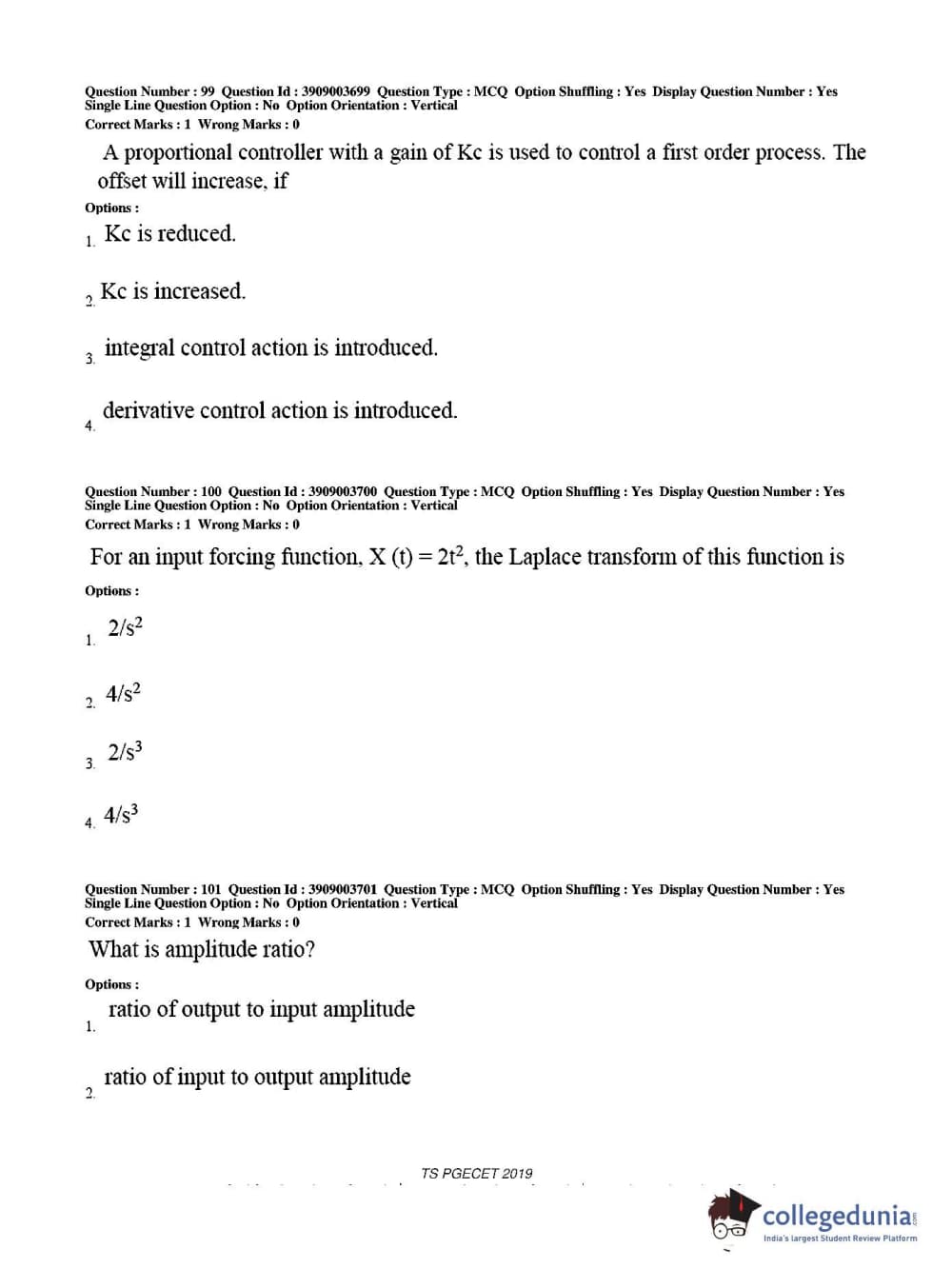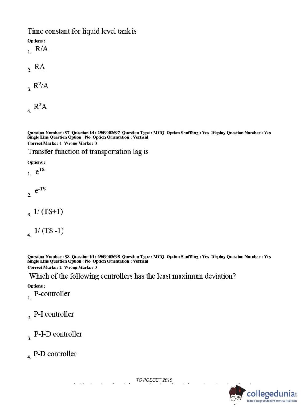 Collegedunia has provided TS PGECET Previous Year Question paper pdf with answer key in the links given below: