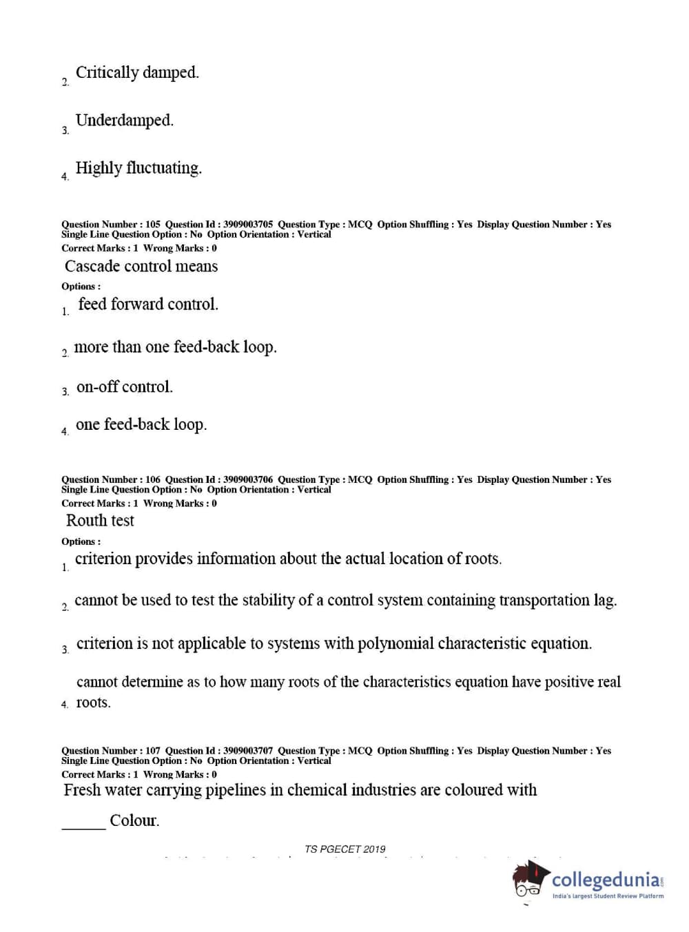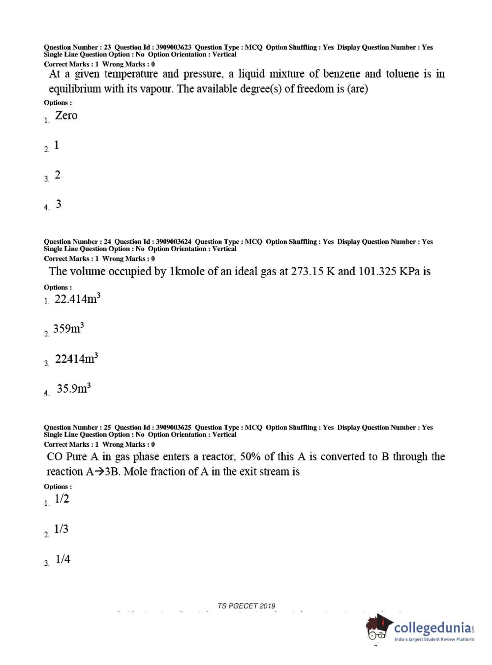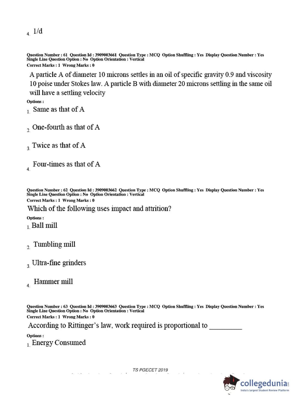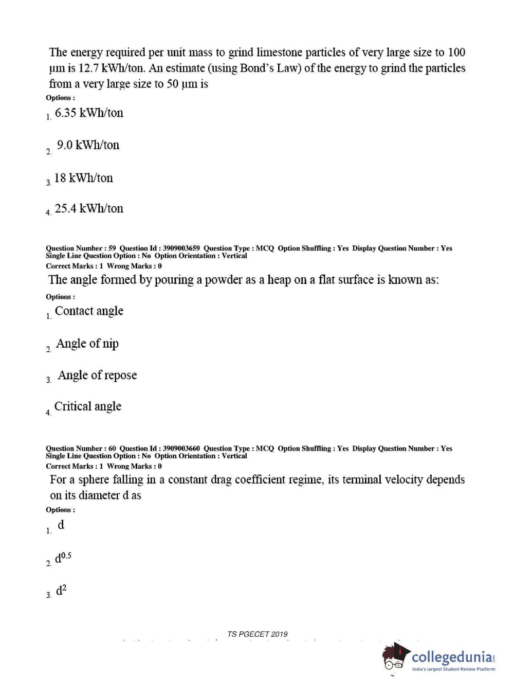Collegedunia has provided TS PGECET Previous Year Question paper pdf with answer key in the links given below:
