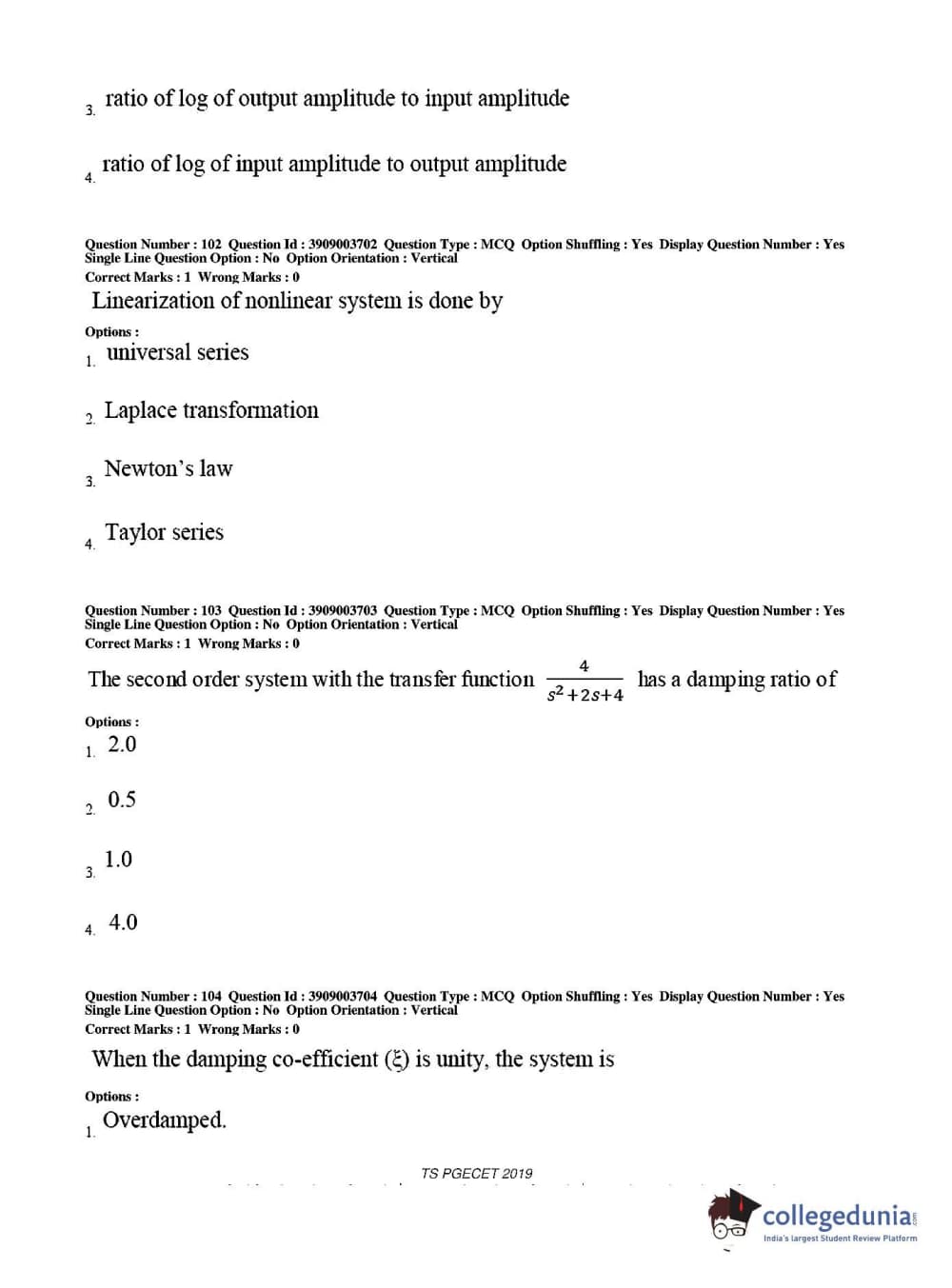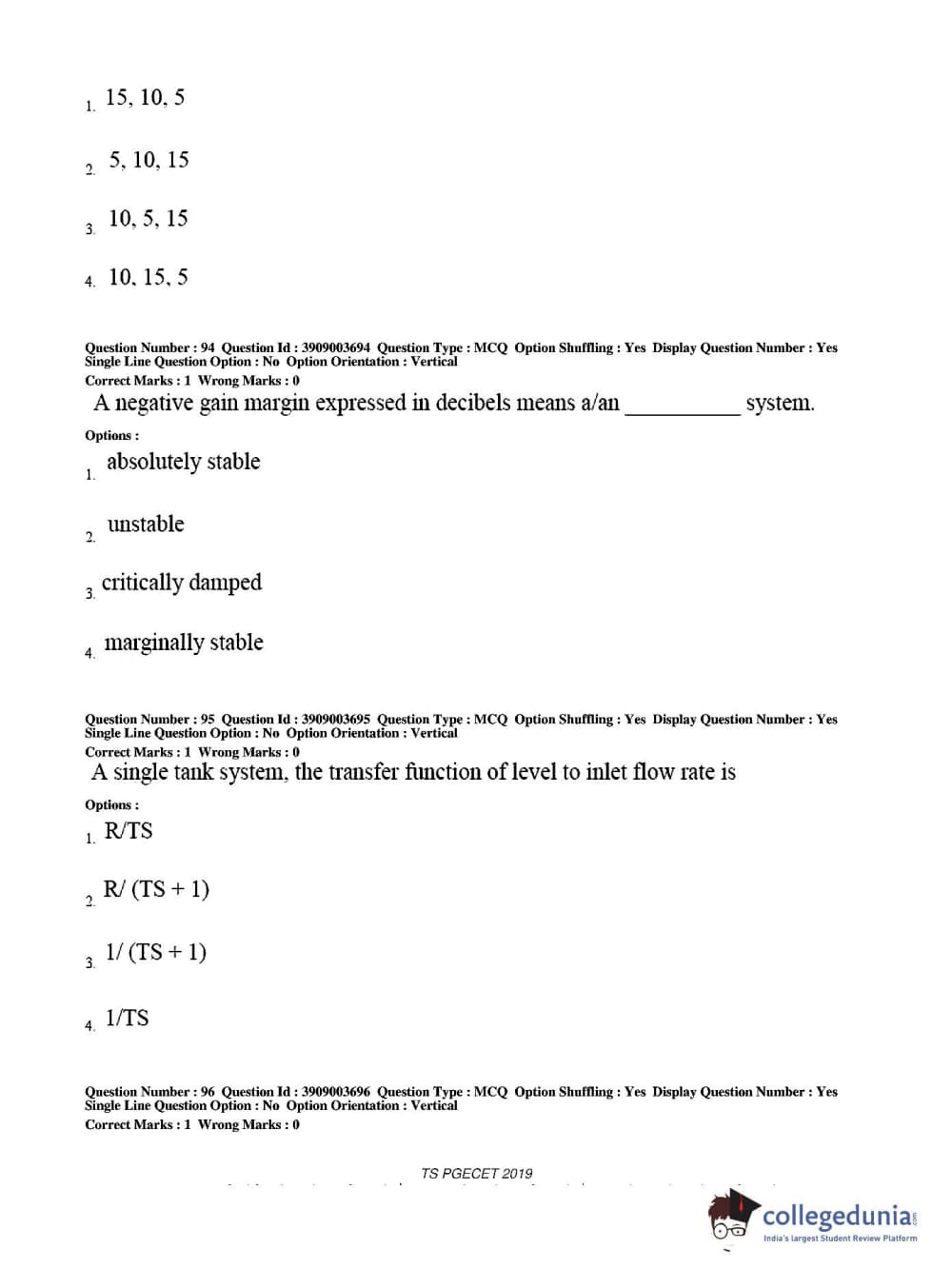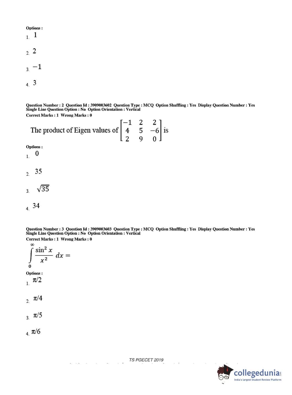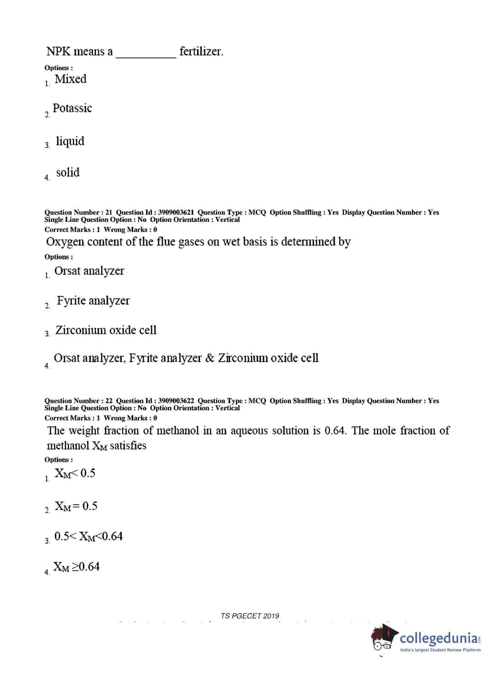 Collegedunia has provided TS PGECET Previous Year Question paper pdf with answer key in the links given below: