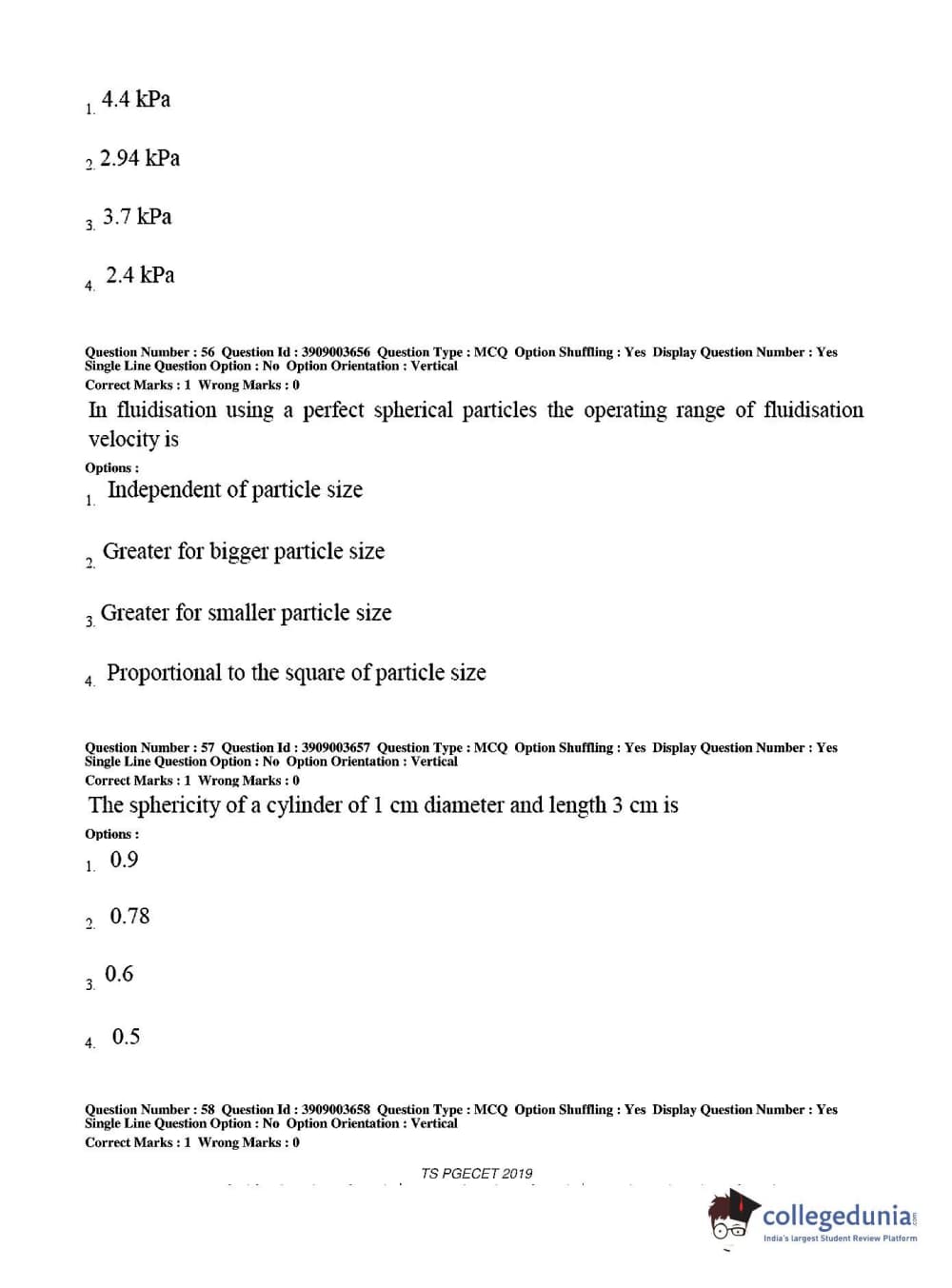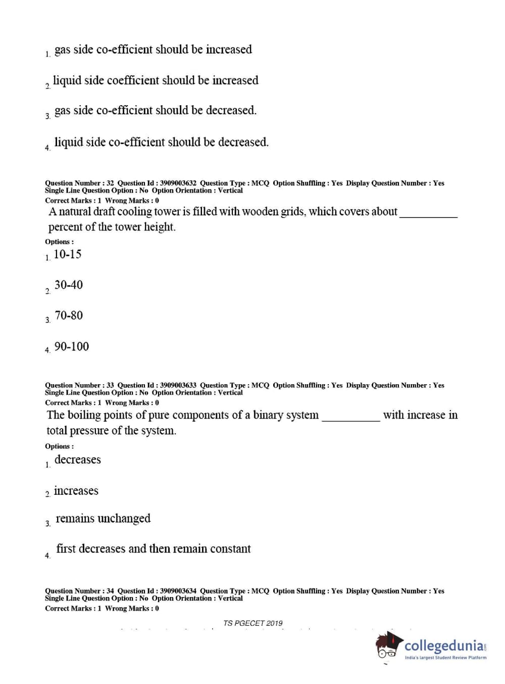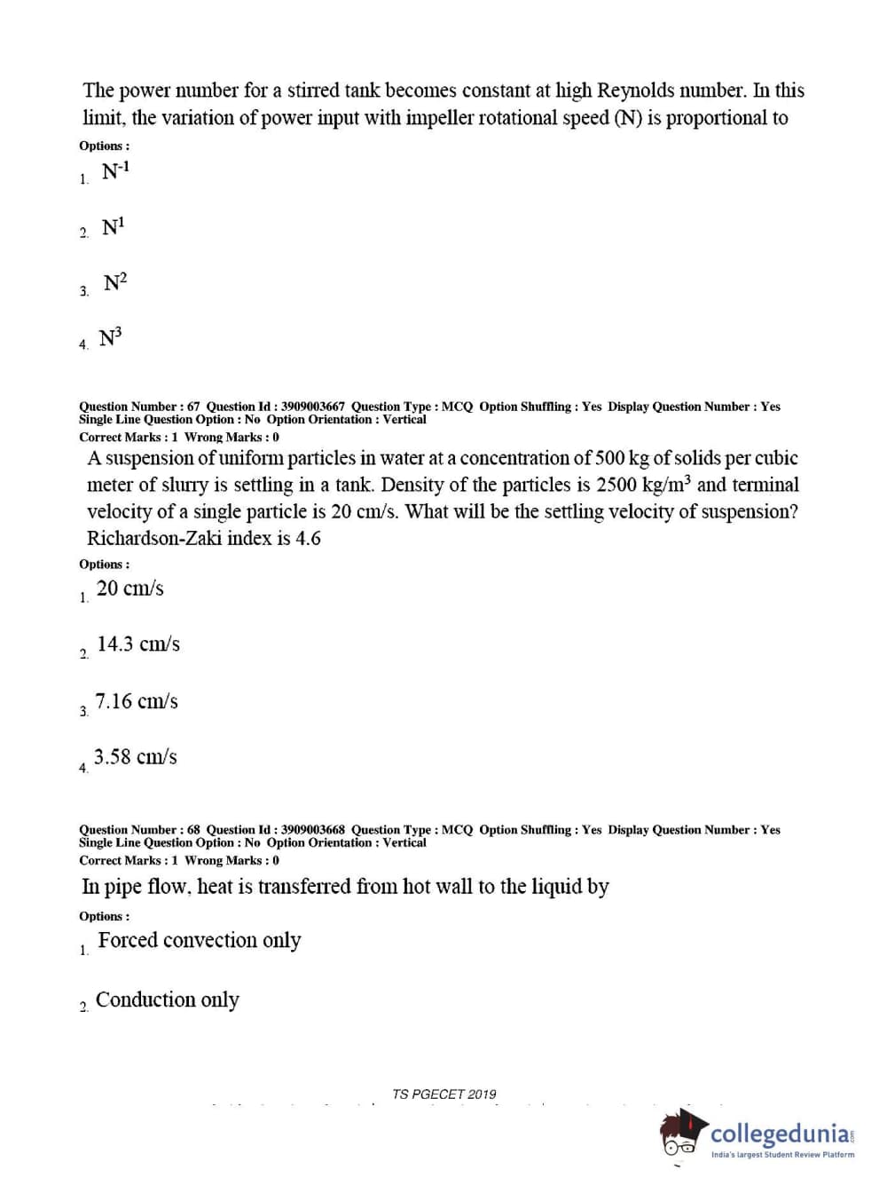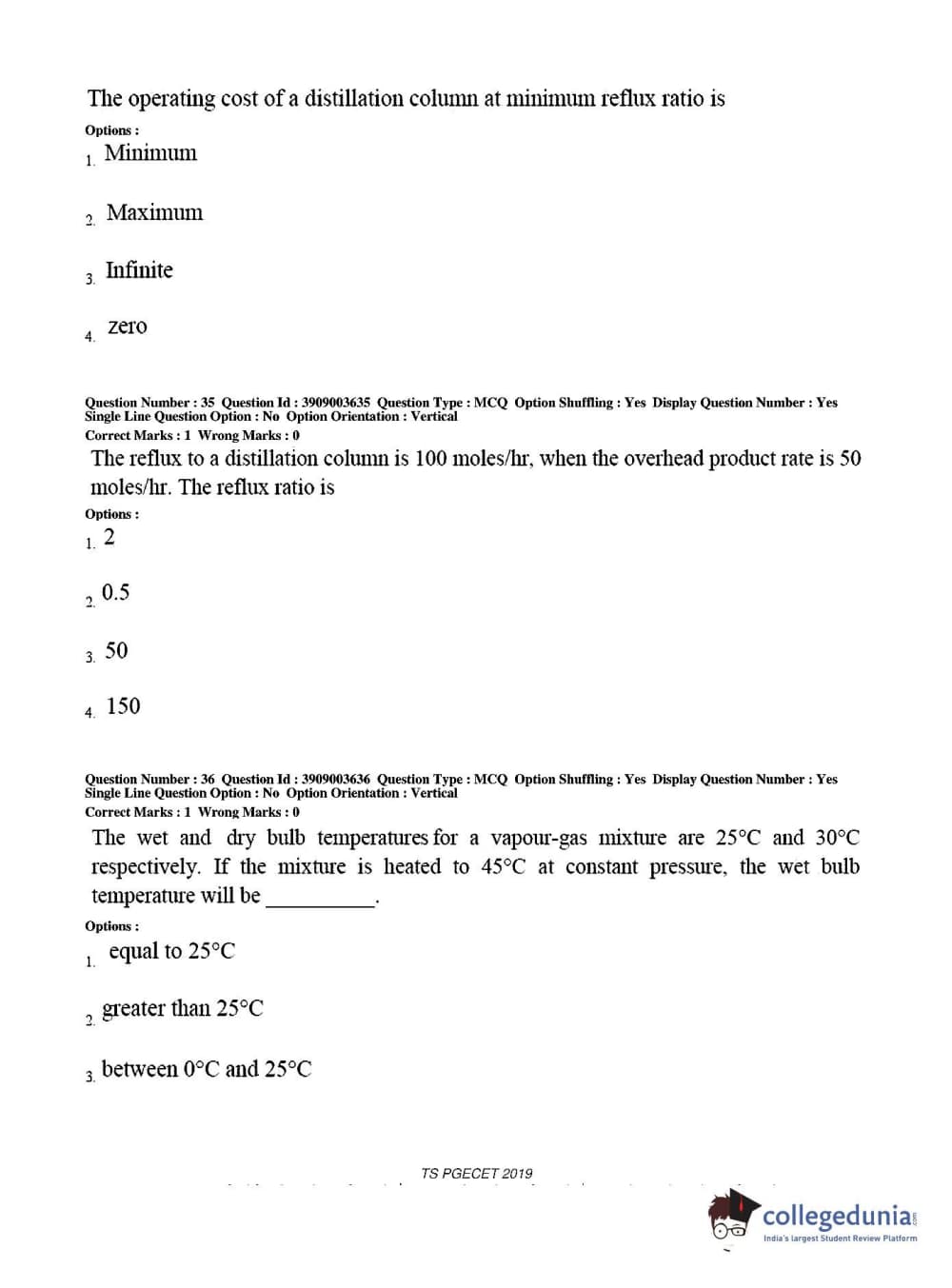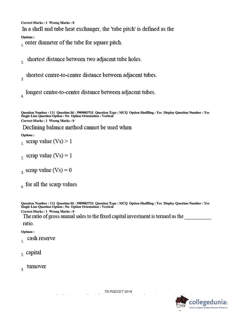 TS PGECET 2019 Chemical Engineering Question Paper with Answer Key PDF for